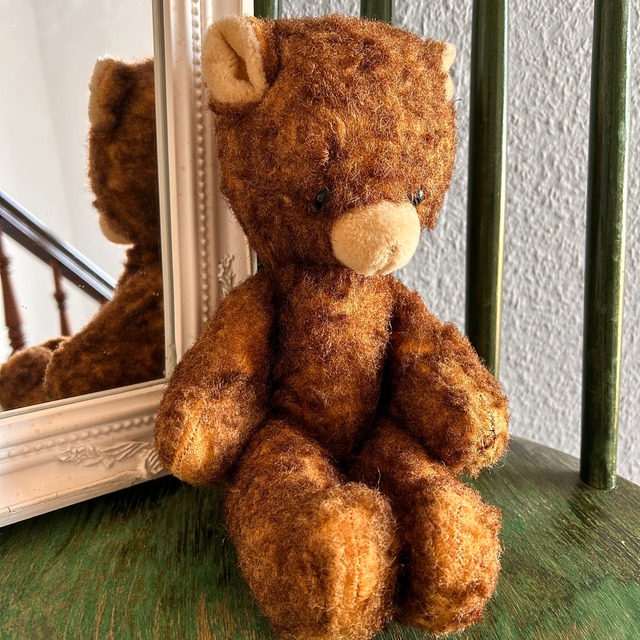 薄茶色で短めヘアのDDRベア。 グラスアイとプラスチックの鼻。 少しバランスが悪いですが、お座りさせることが出来ます。 状態など: 木毛が詰められています。 ヘアロスが多いです。写真でご判断ください。 右耳にダメージあり。 左手に汚れあり(お手入れで多少きれいになりそうです)。 足の付け根が緩くなっています。 左脚のほうが長めです。 光の加減で、写真はいろいろな色に見え、実際の印象と異なる場合があります。 *くまのぬいぐるみ1体のお値段です。椅子などのデコレーションは商品には含まれません。 大きい子もいます(写真4の右)。 サイズ: 身長 約 23cm 座高 約18cm 発送について:ドイツよりDHL便で発送します。ほかの商品との同梱も可能ですが、ぬいぐるみ1体の大きさがありますので、限られたものになります。容量と重量を確認する必要があります。決済に進む前に必ずお問い合わせください。