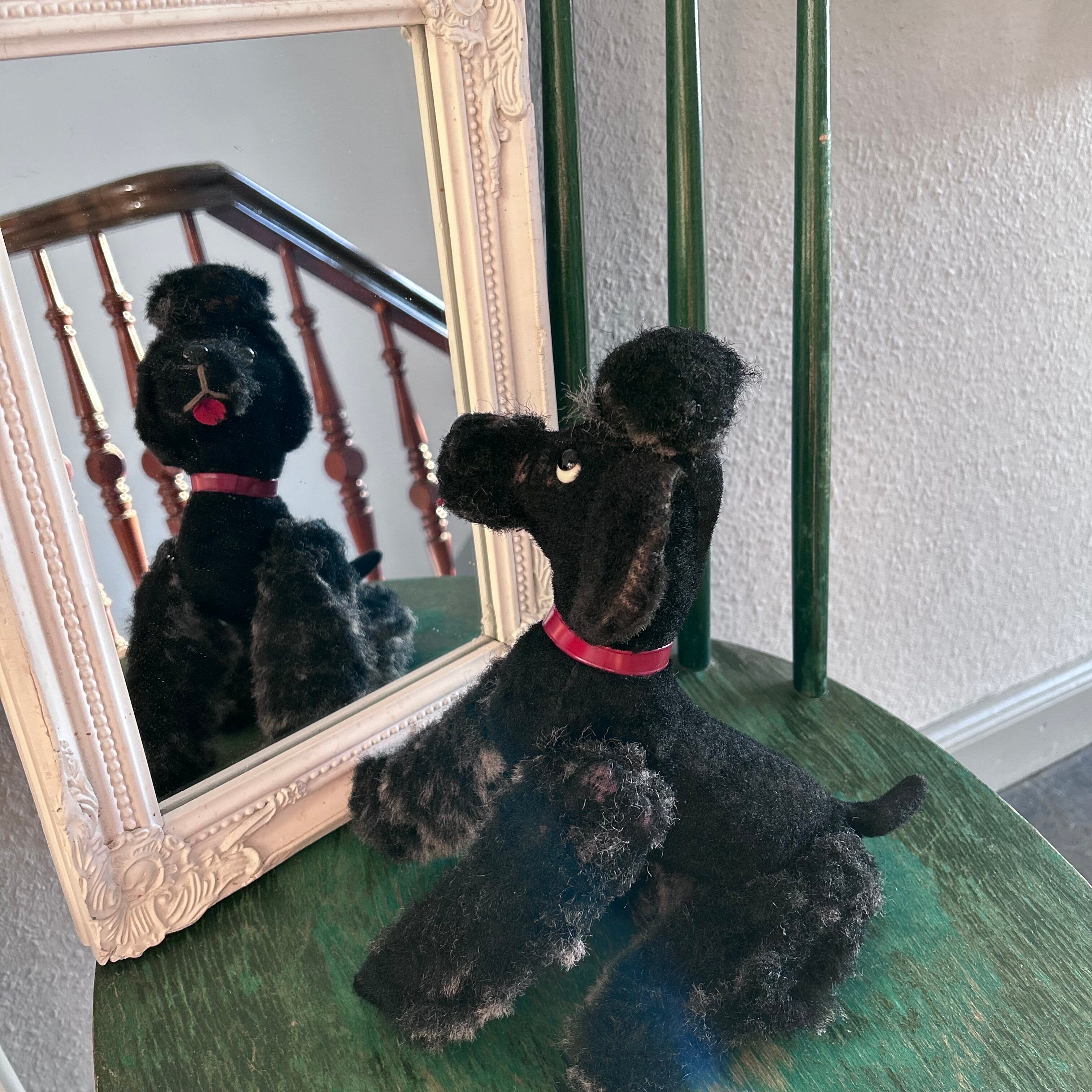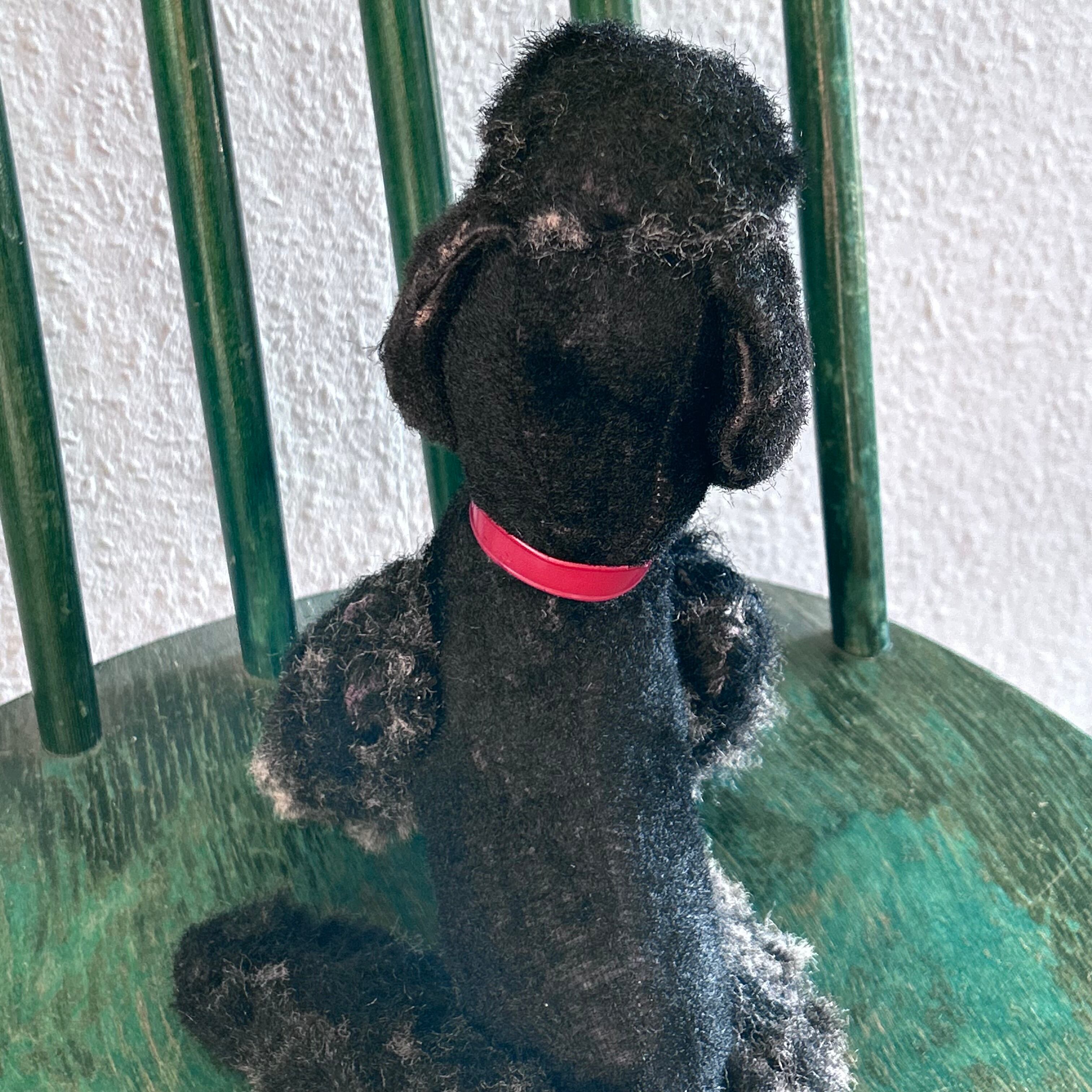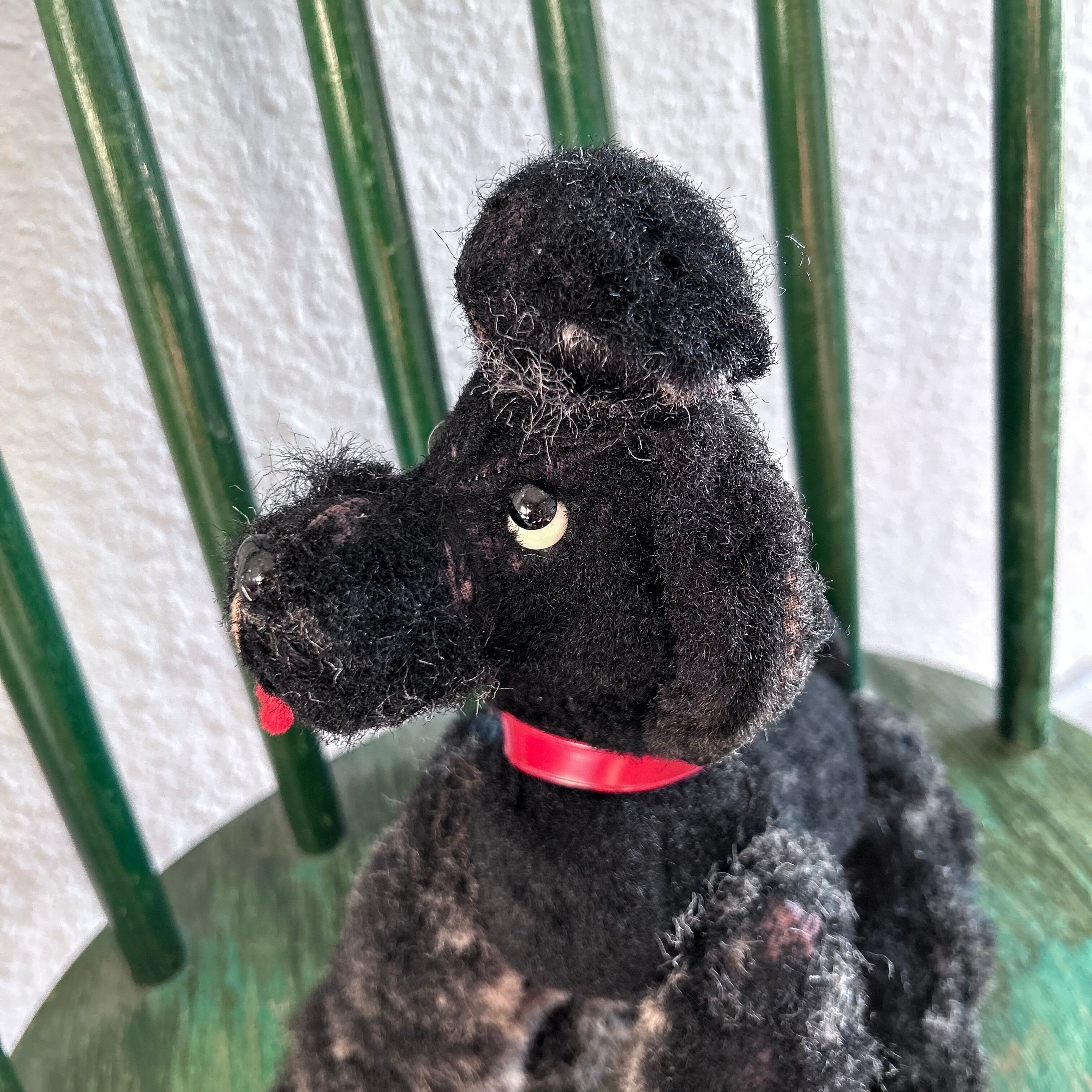 ポンチ目で、上を見上げるような表情がコミカルで愛くるしい黒いプードル。