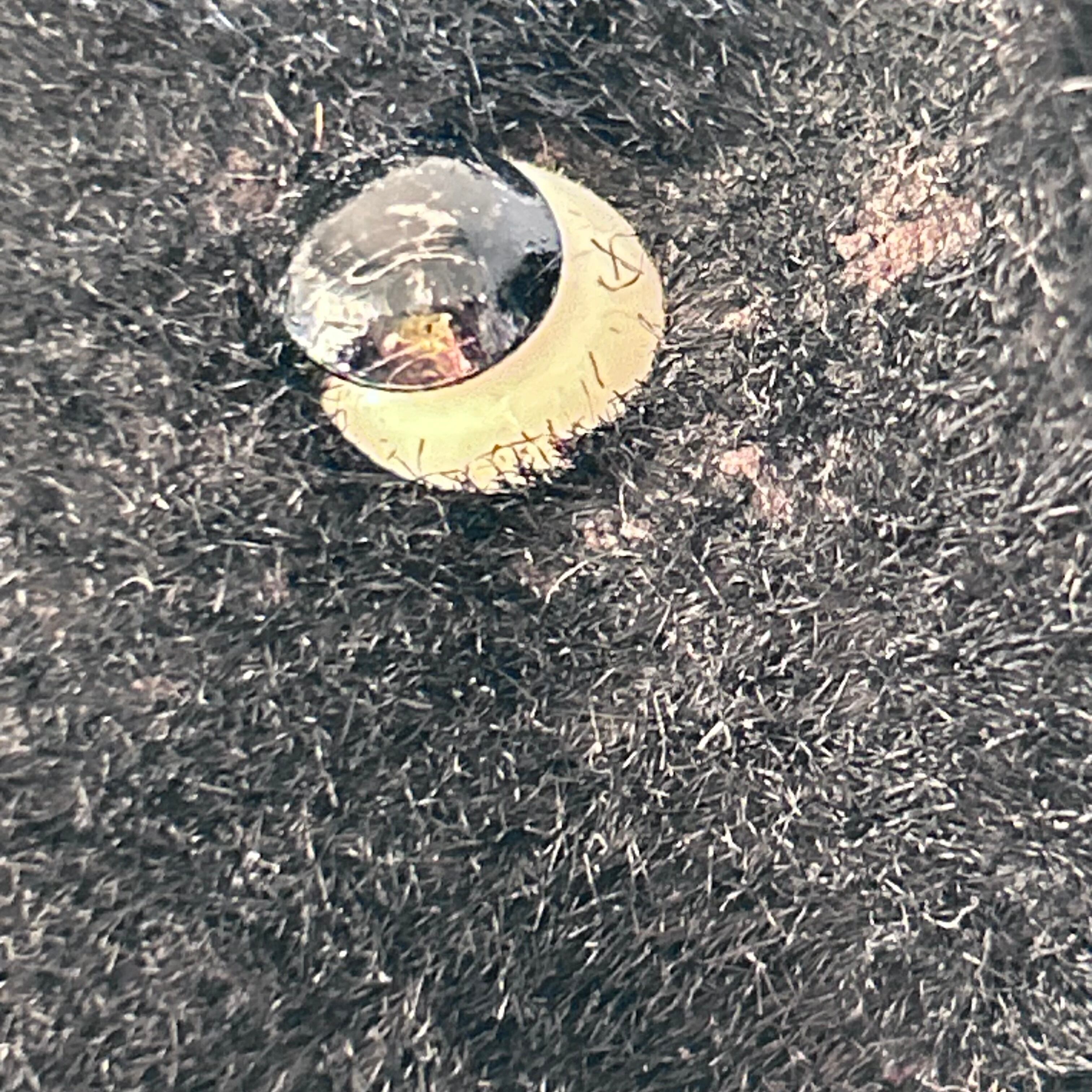 目はグラス製で、おうとつがあります。黒い部分に少し傷が入っています(写真14)。