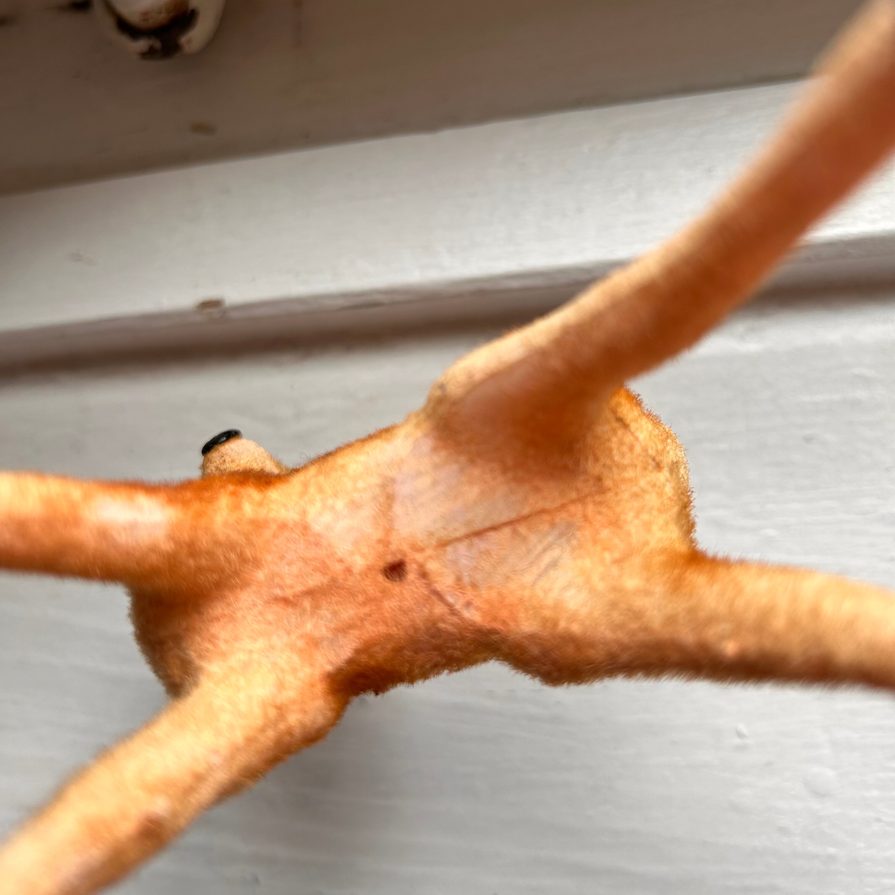 プラスチックの赤い目、黒い鼻。緑の首輪が巻かれています。