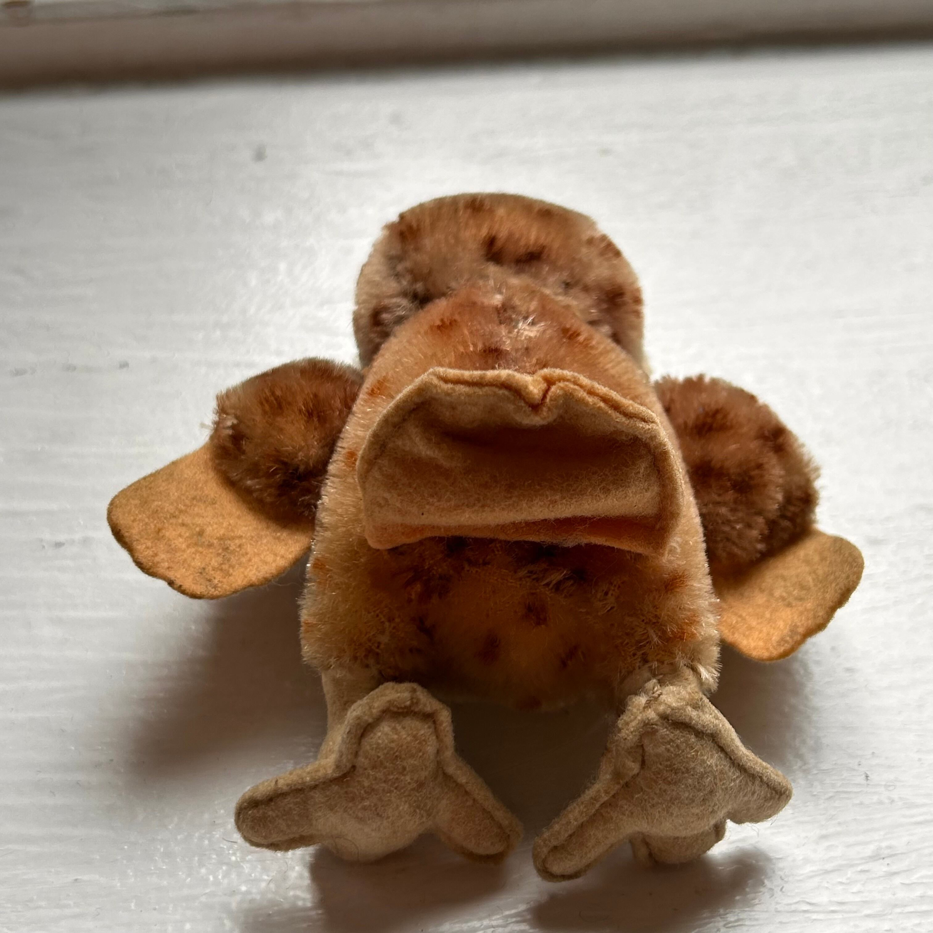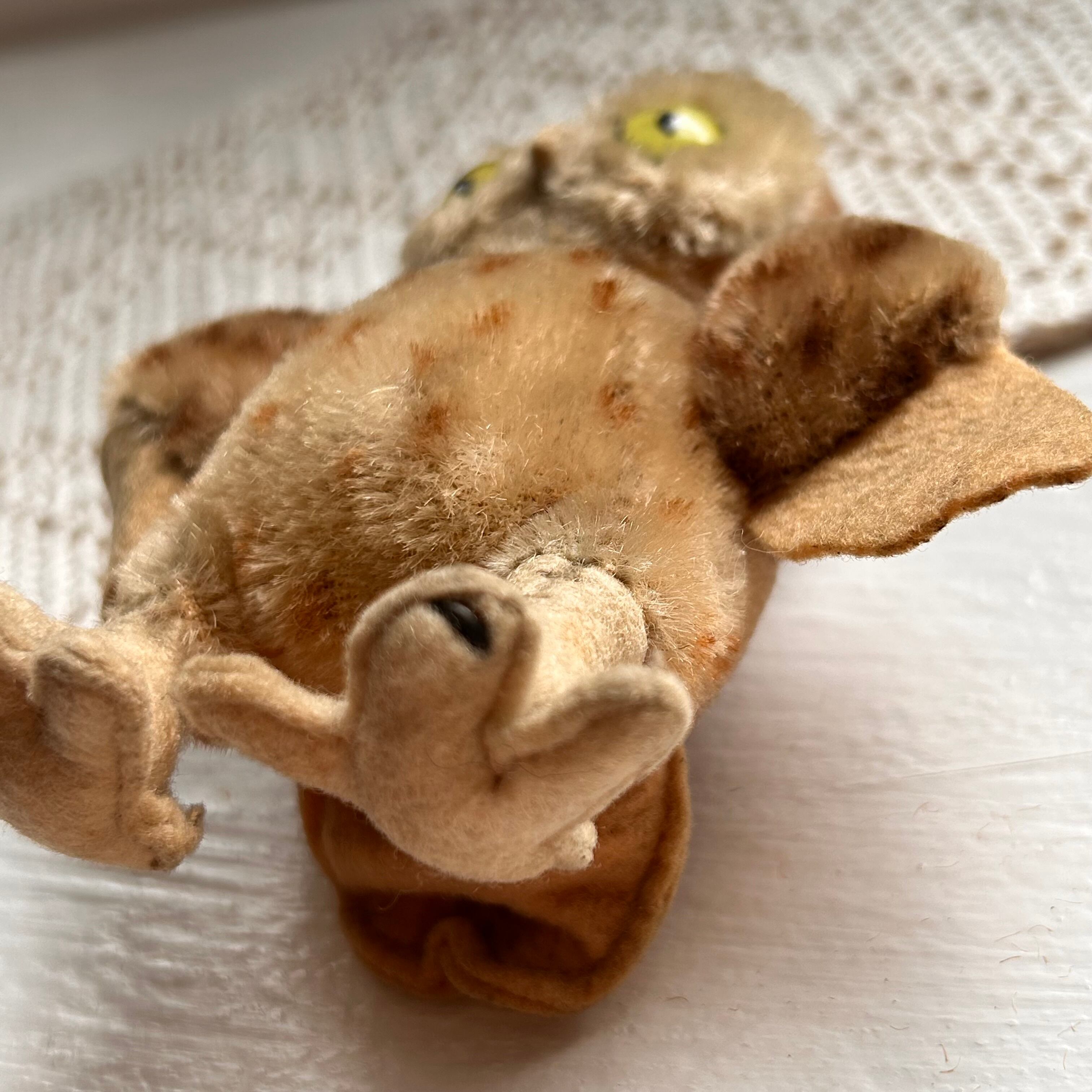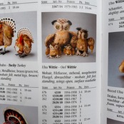 シュタイフ・ソーティメント1947-1999の238ページに記載されています。モヘア。フェルトの足。表面を洗浄可と表記されています。一番小さな10㎝のタイプは、1976年までに作られたものです。