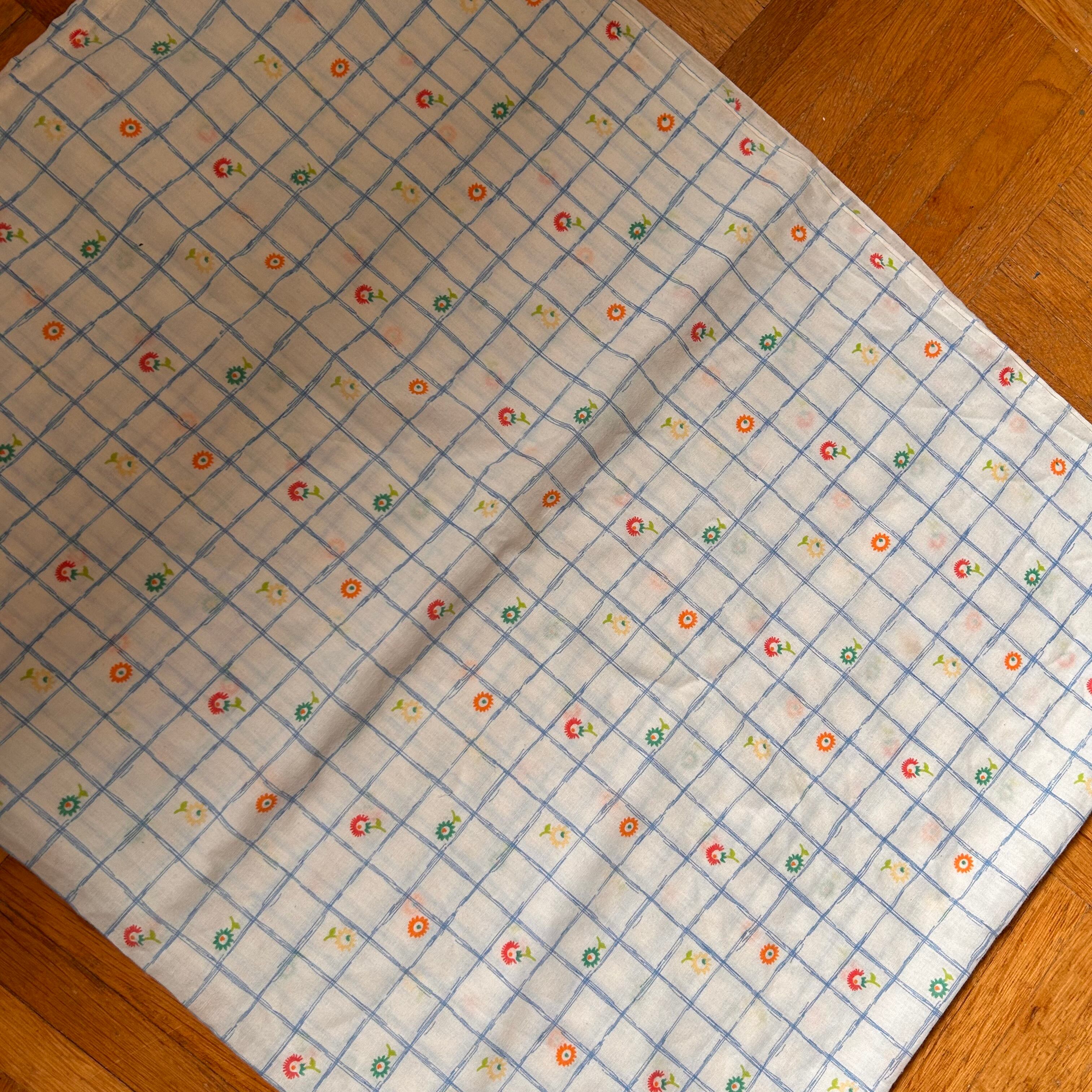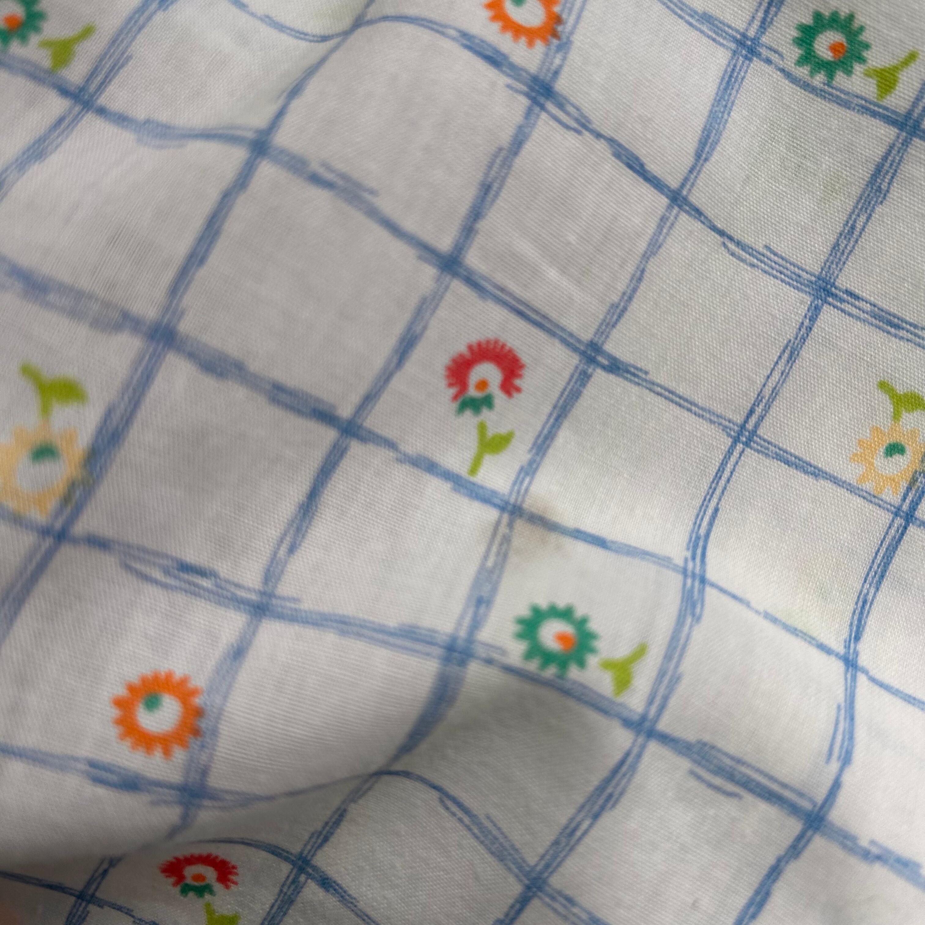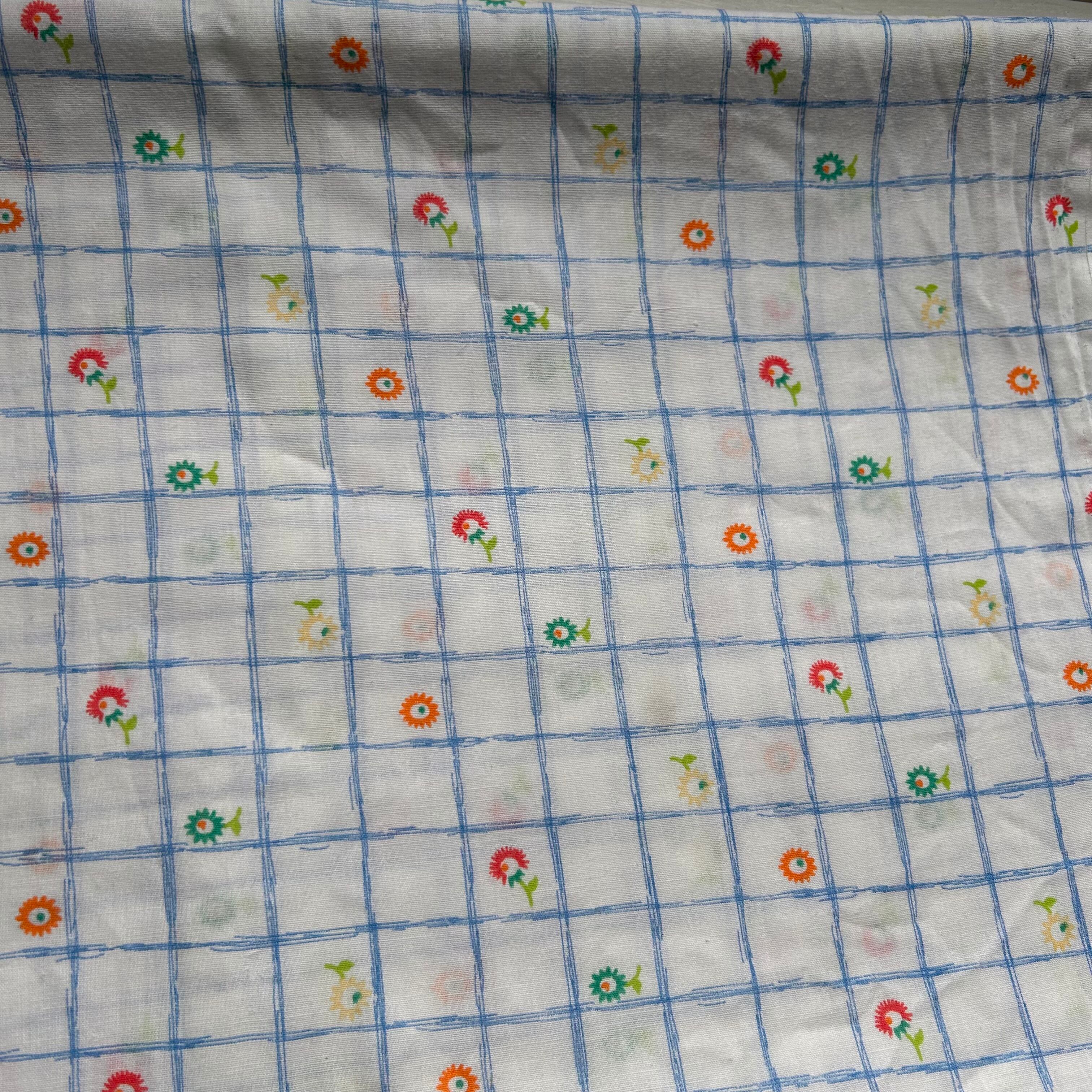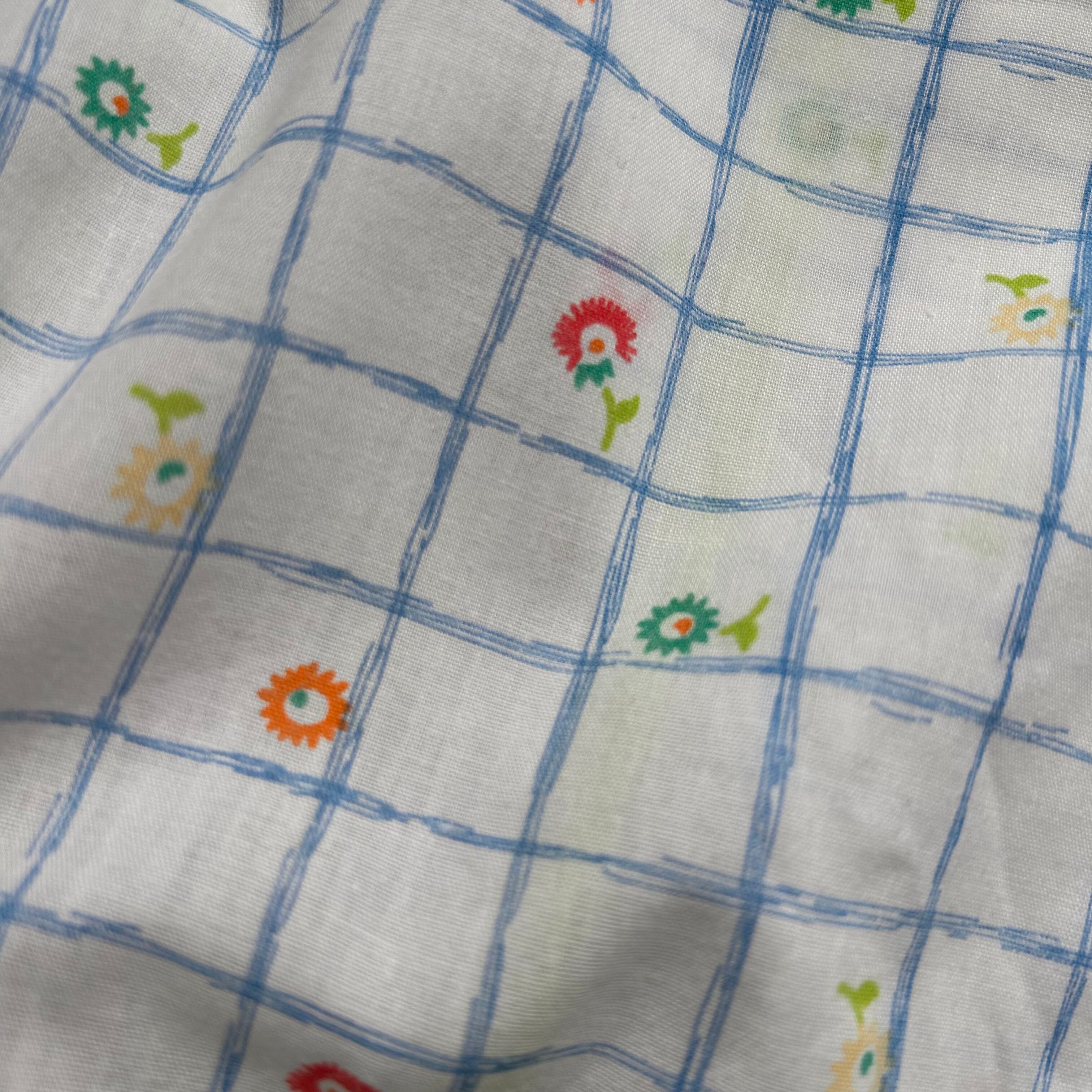 えんぴつで書いたような線のチェックに小花が散らされてかわいいカットクロスです。
