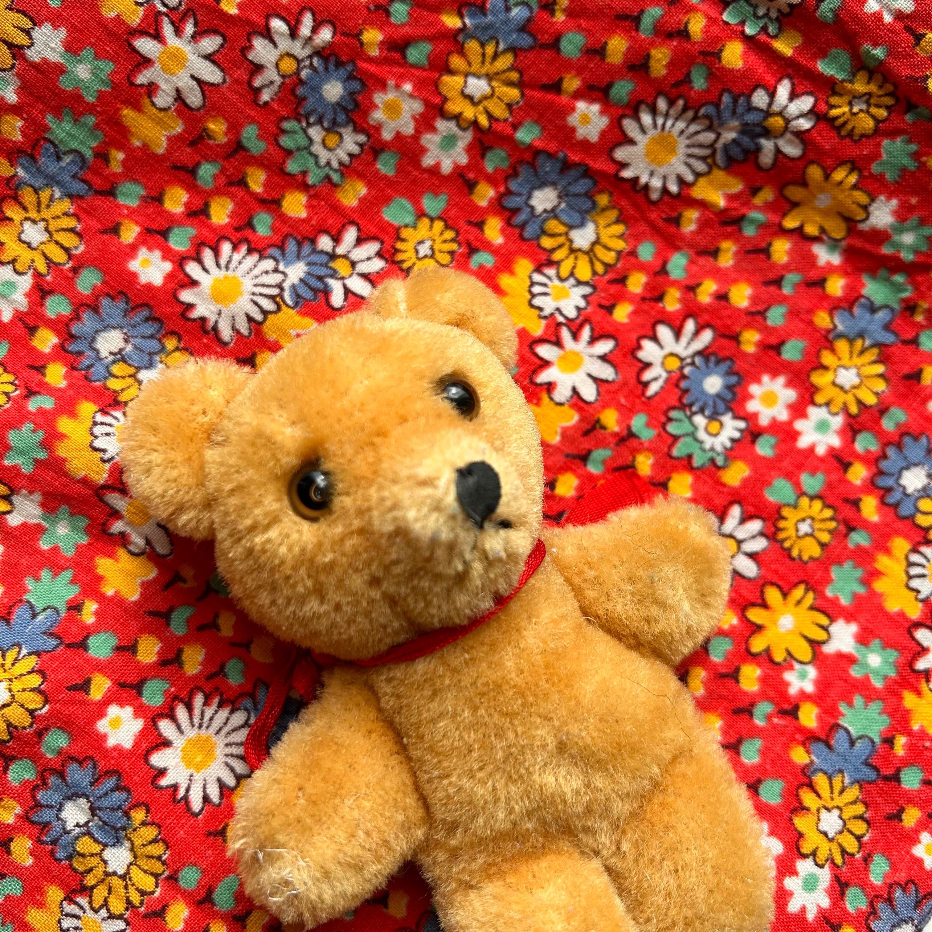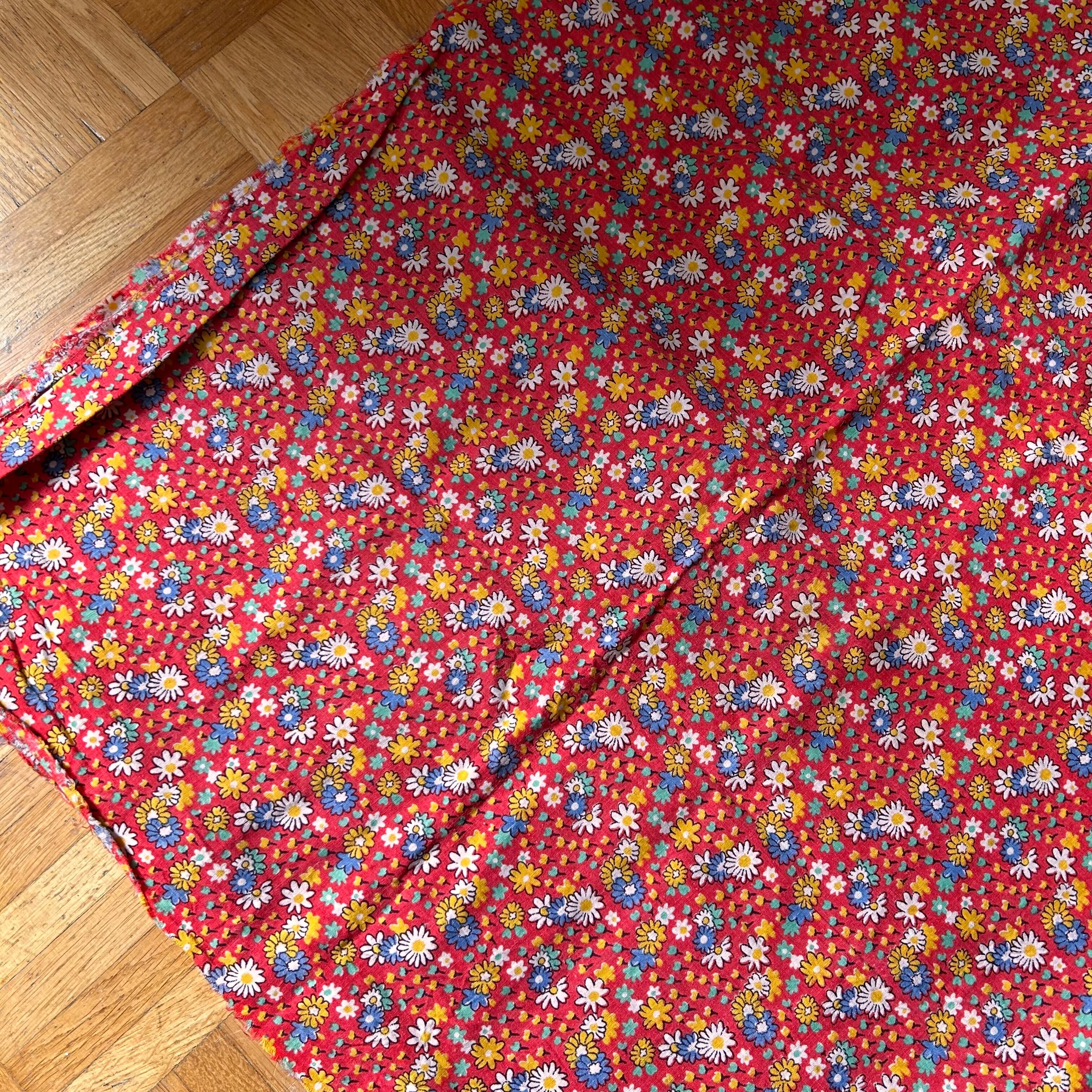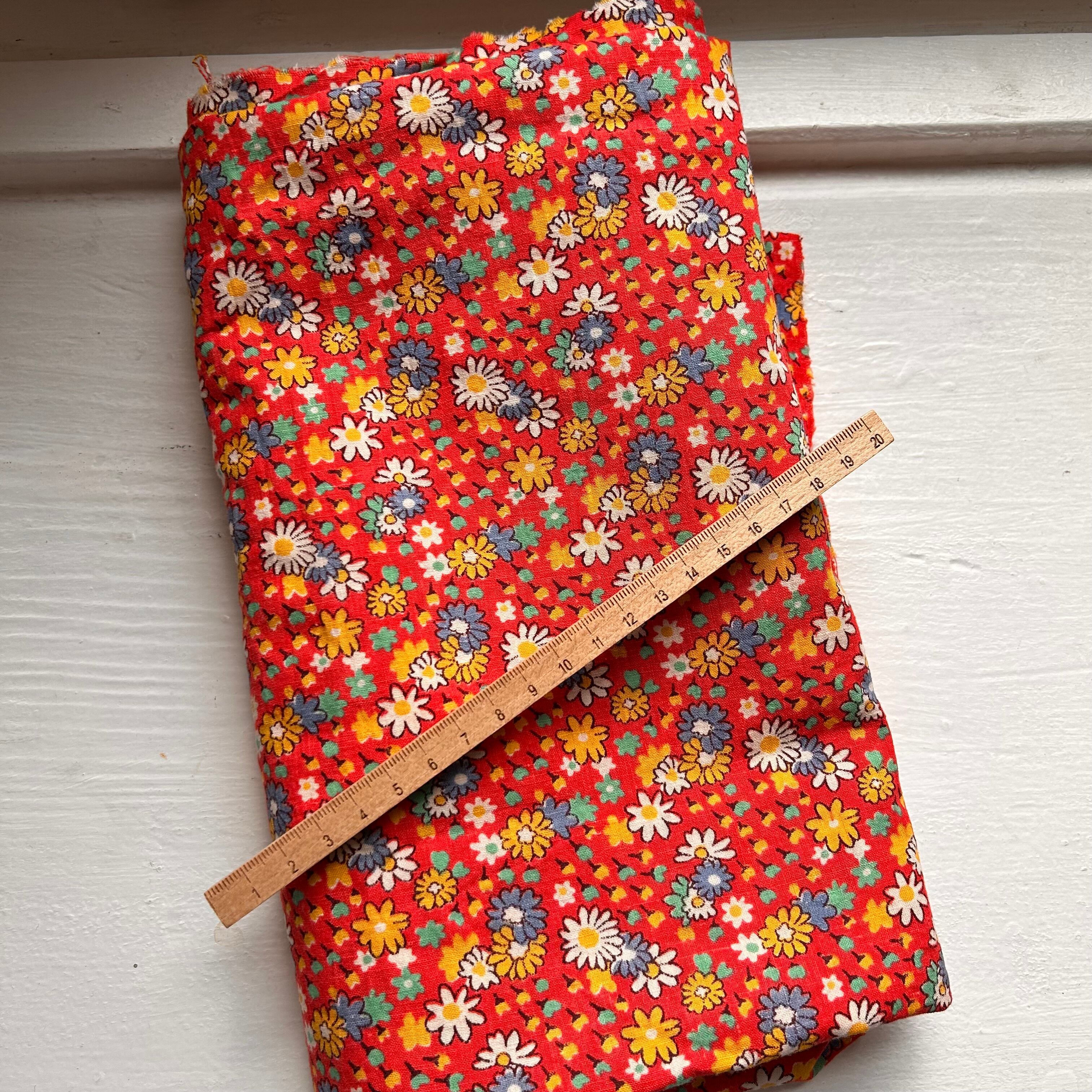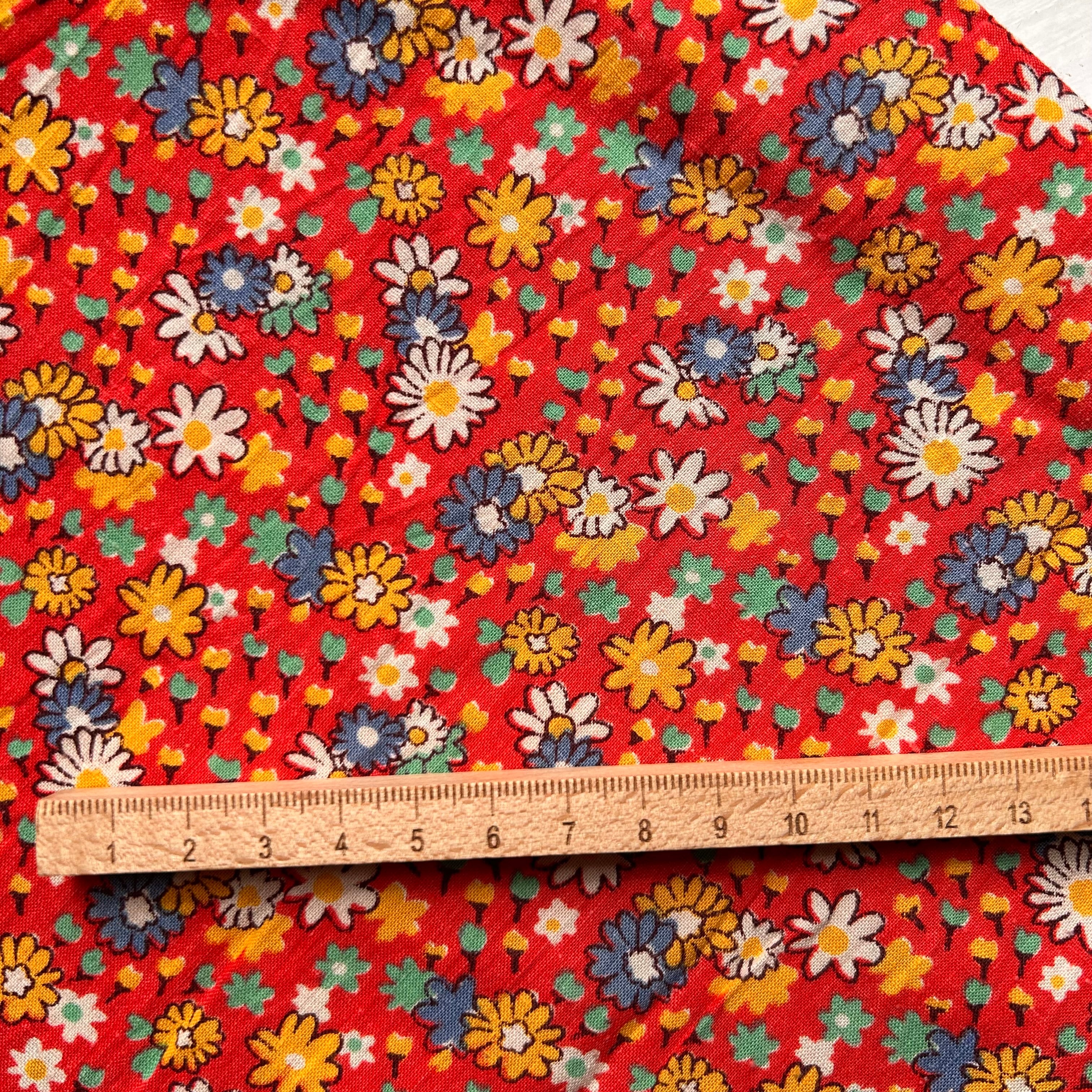 赤地にマーガレットなどの小花がかわいい、ヴィンテージ布のカットクロスです。