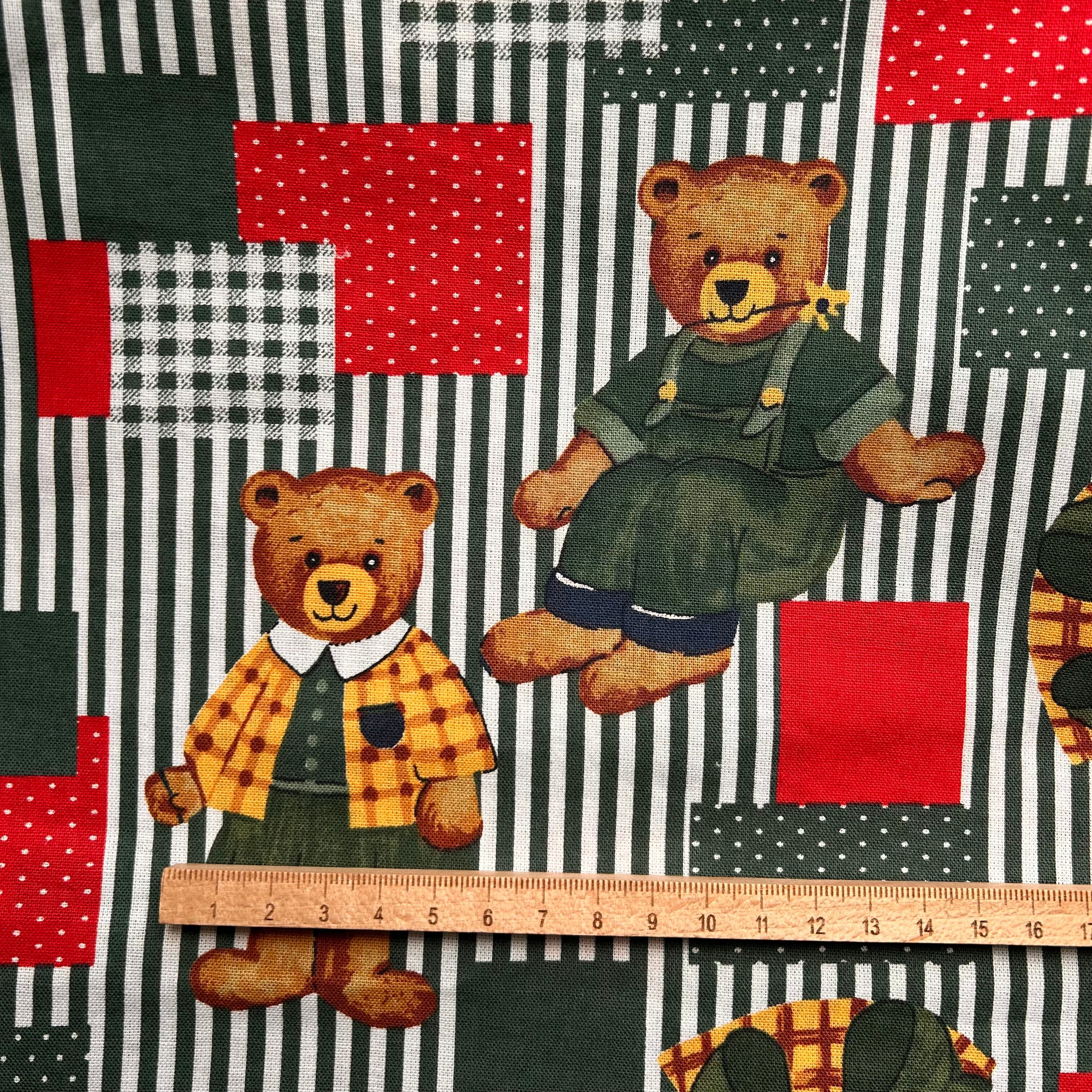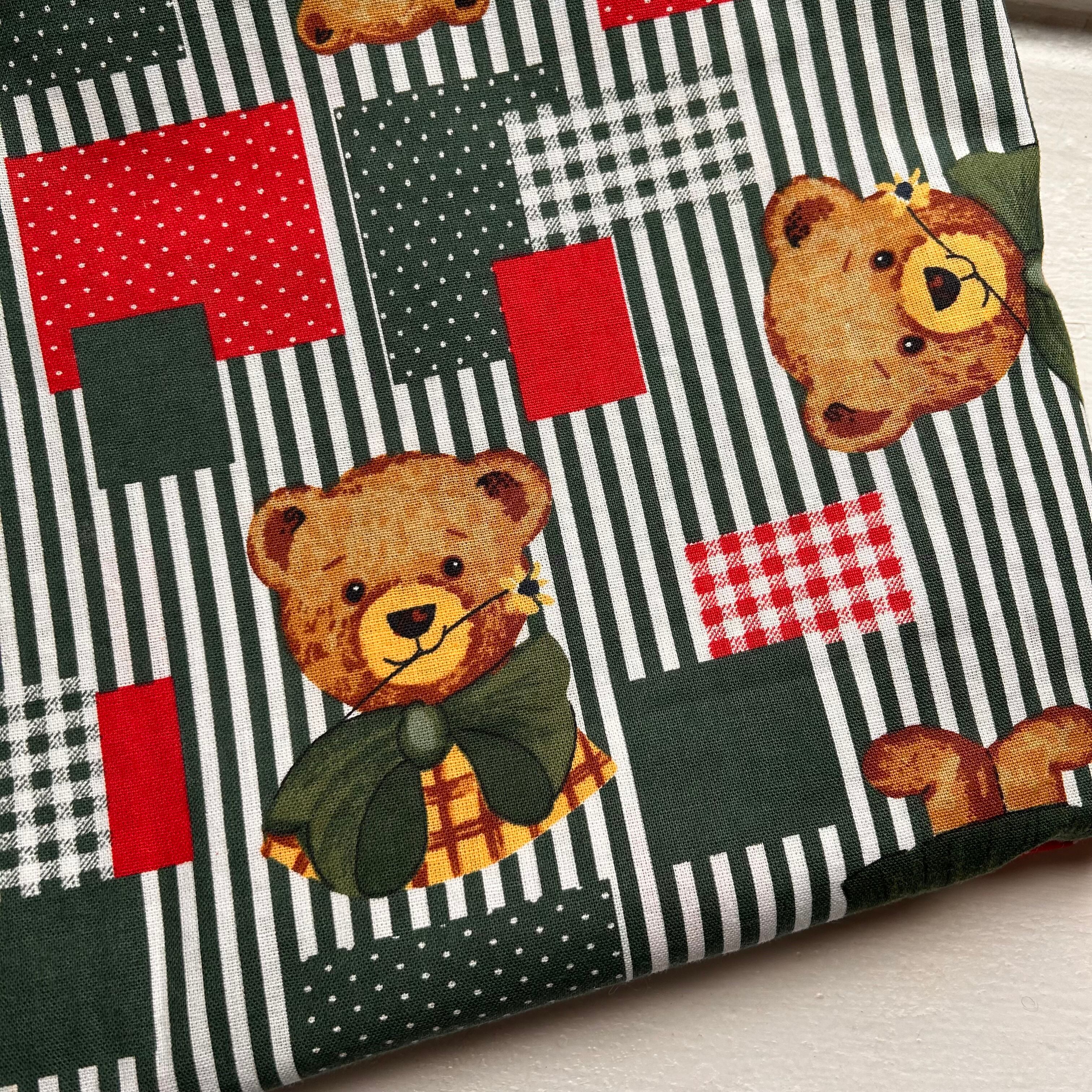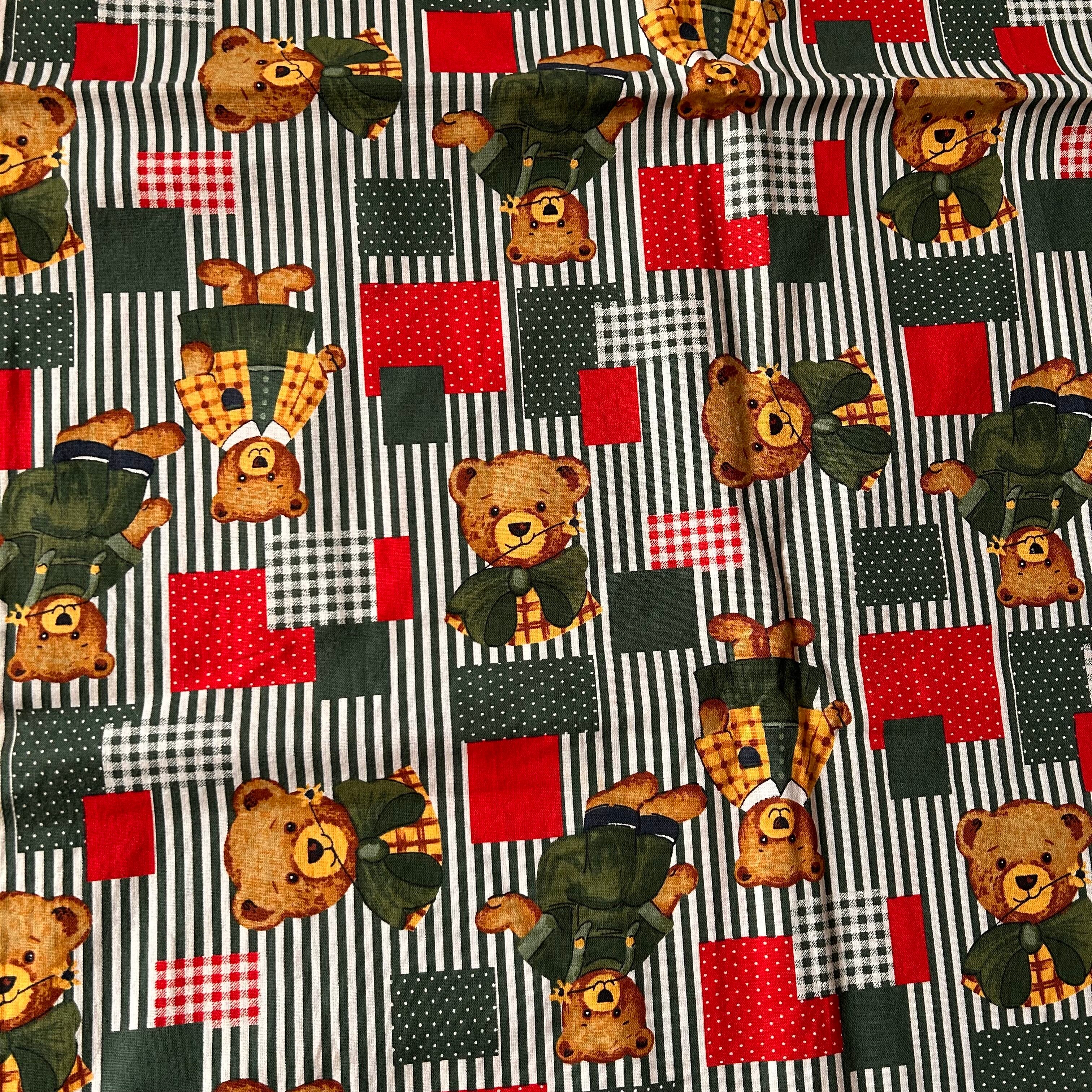 くまにストライプ、水玉、チェックなどがかわいい90年代頃のものと思われるカットクロスです。