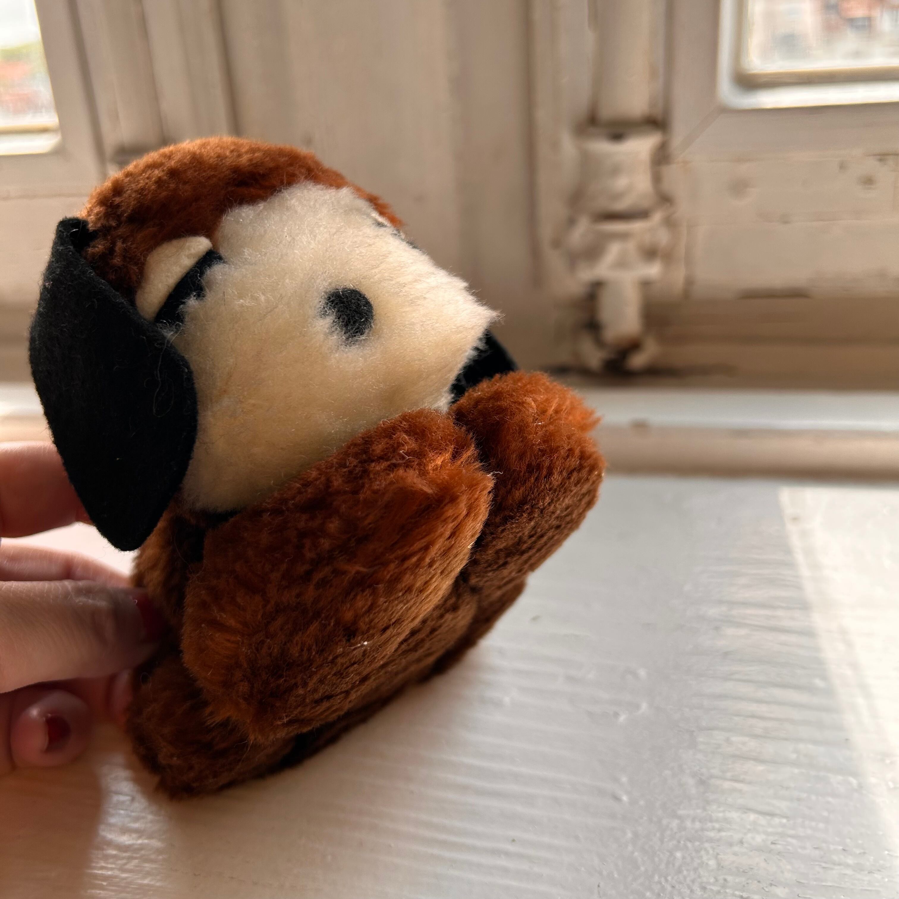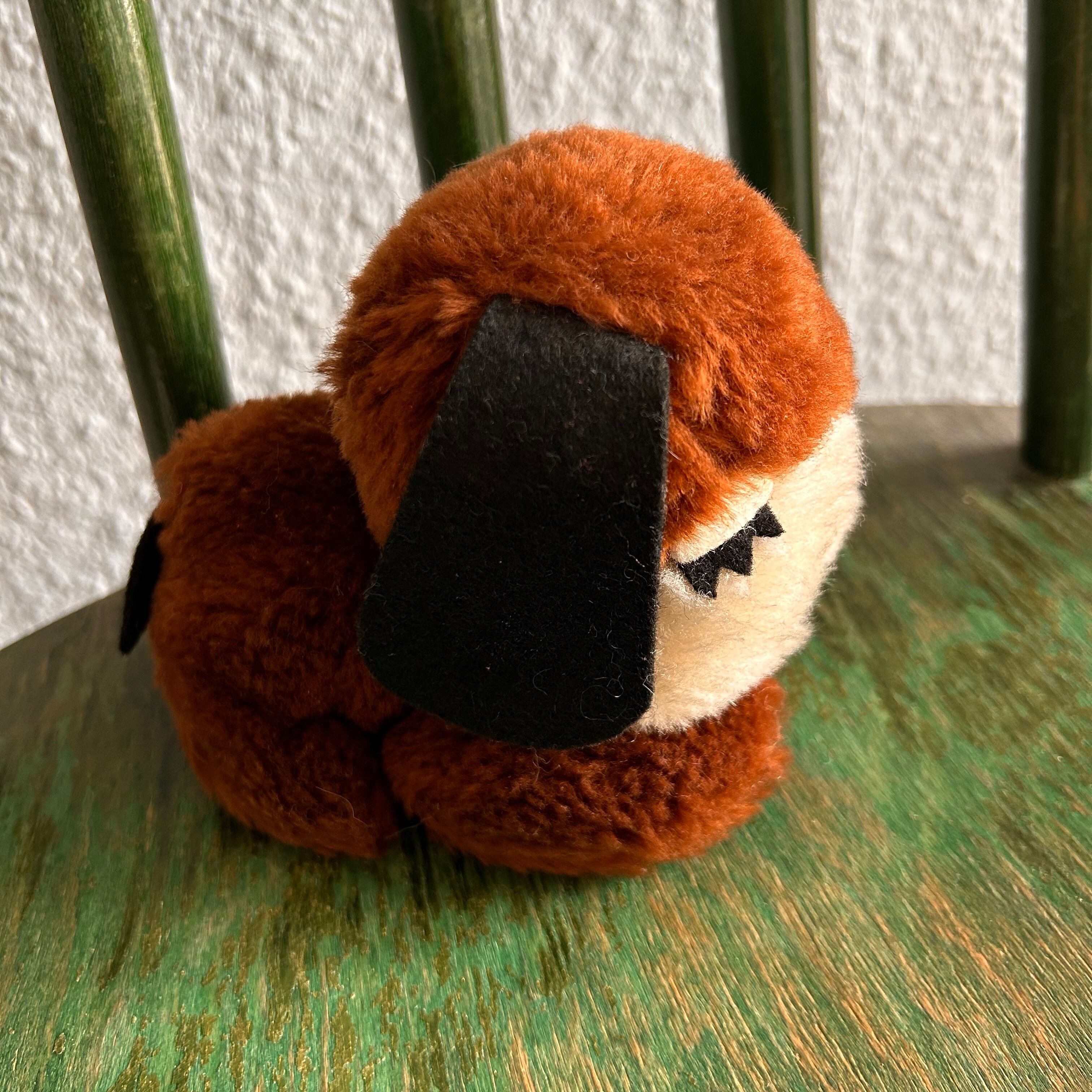 おおきなまぶたと垂れ耳、しっぽはフェルト製、鼻はポンポンです。