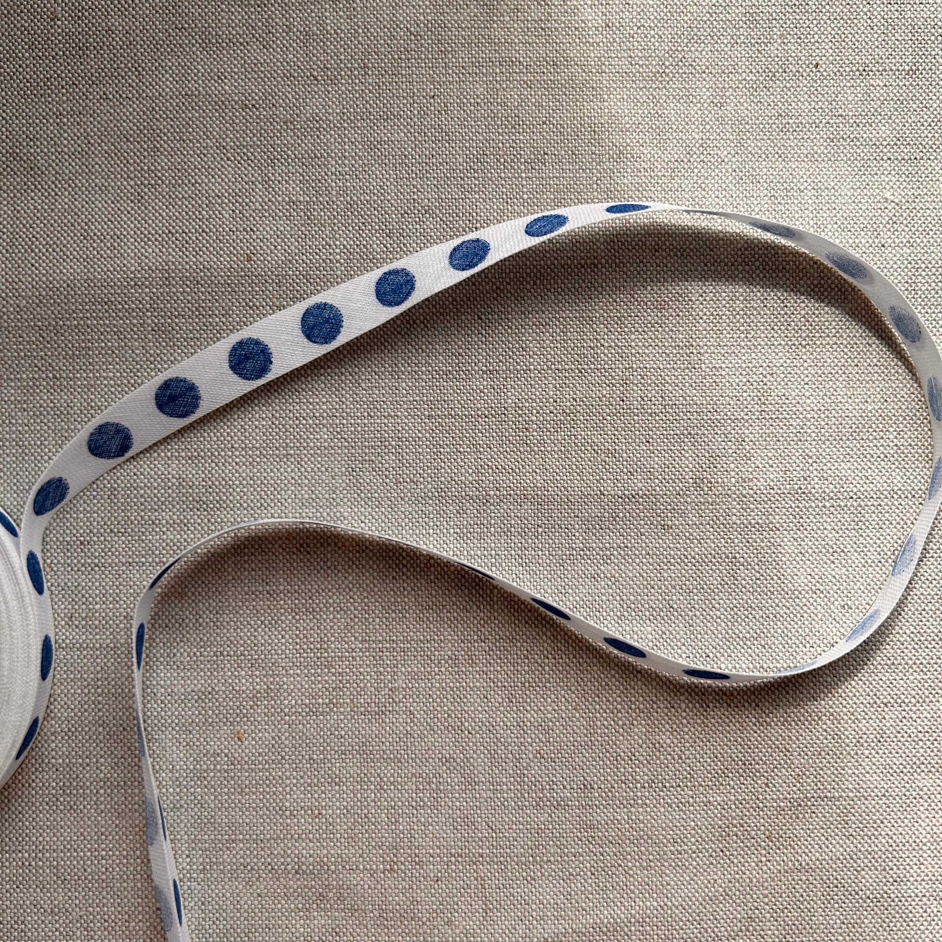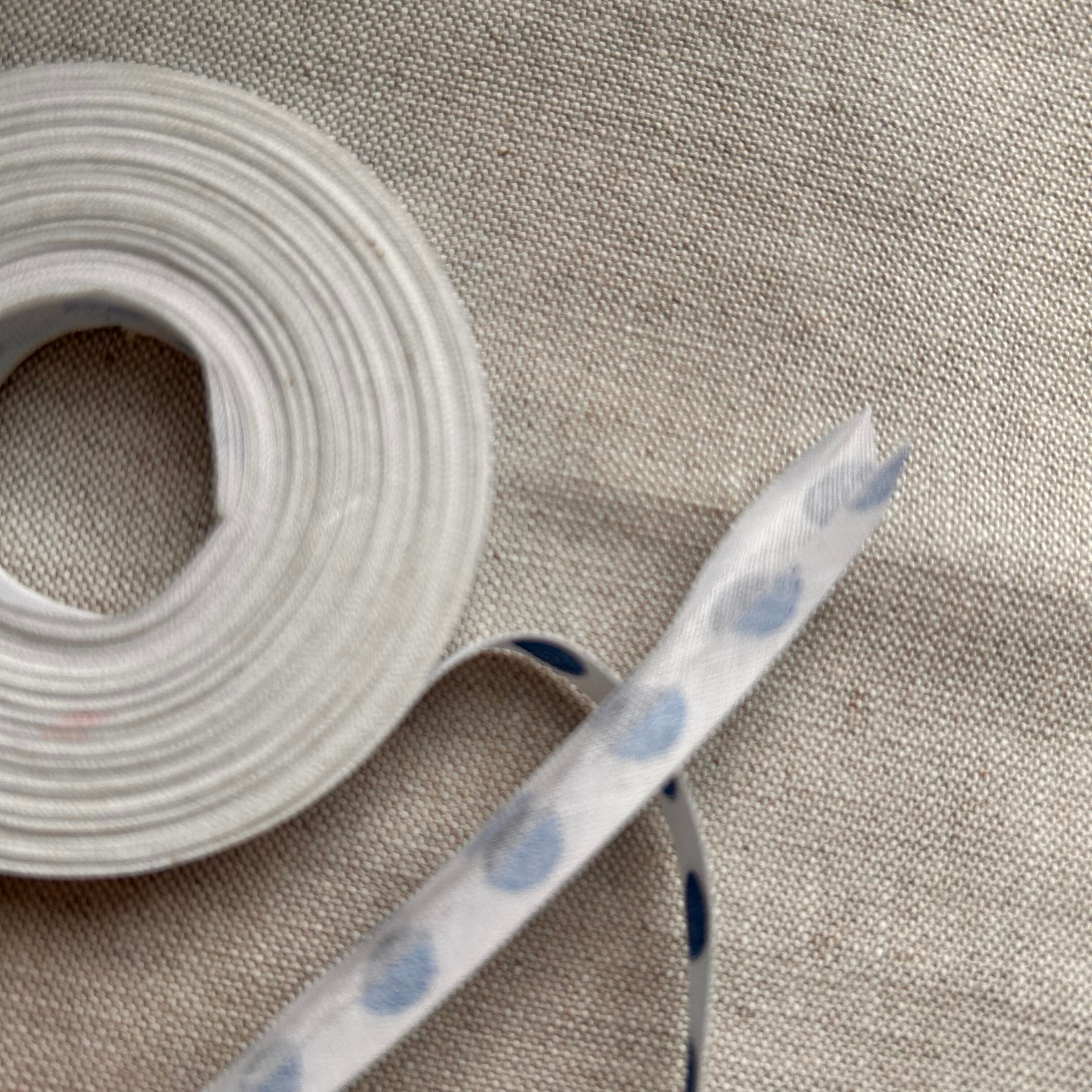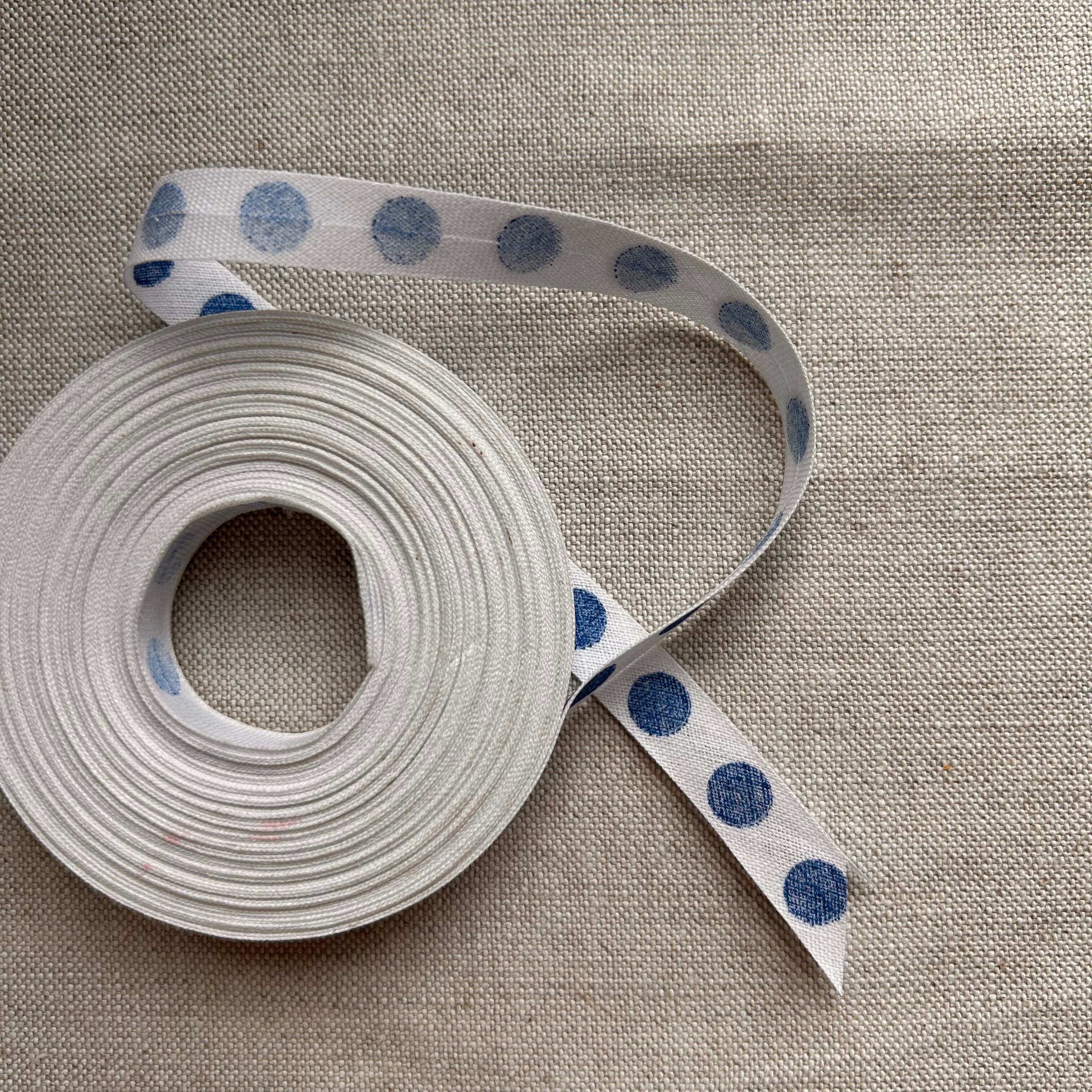 青のかすれた色合いがまた味わい深い、ビンテージのバイアステープ
