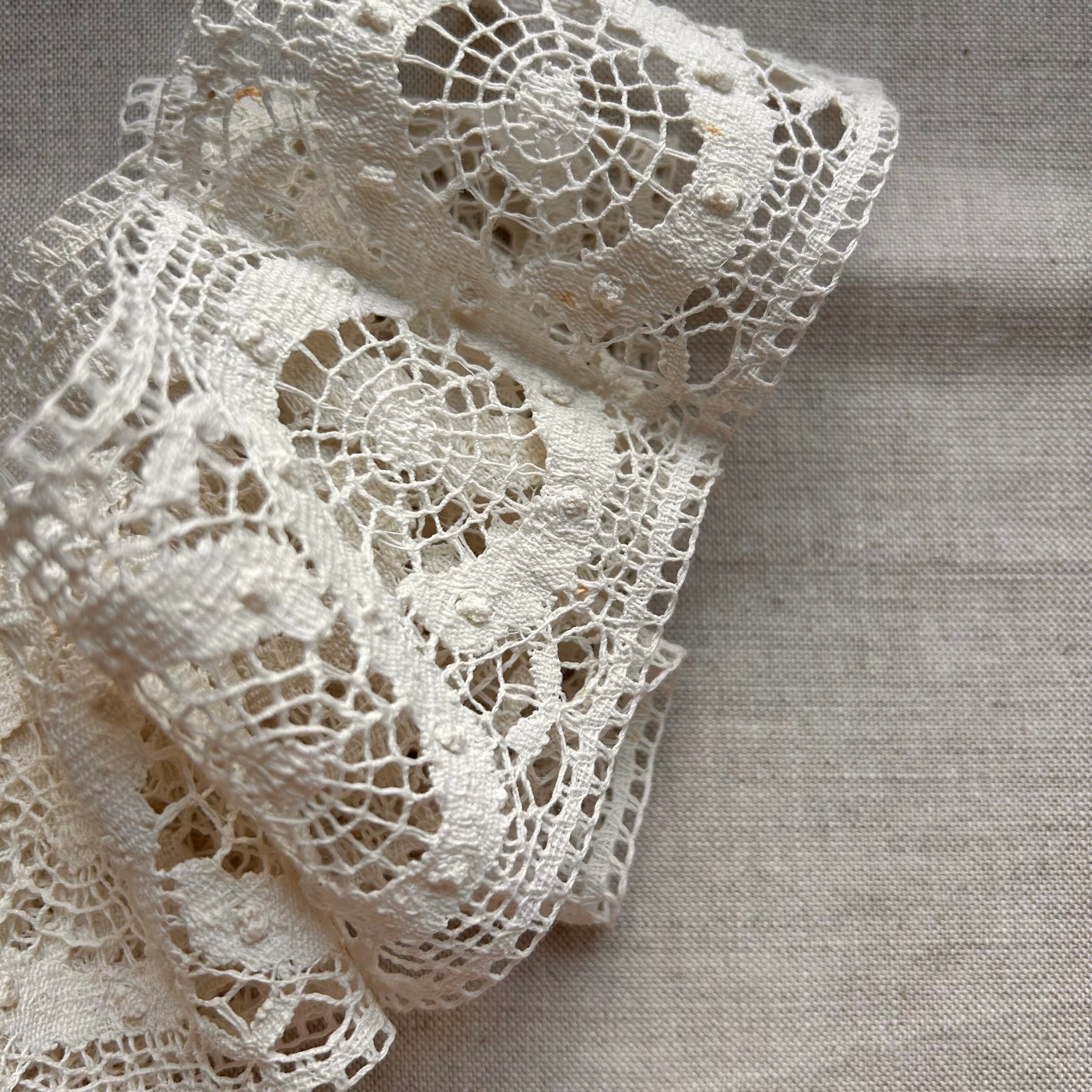 お洋服のリメイクなどに使っても存在感が出そうなヴィンテージレースのピース。