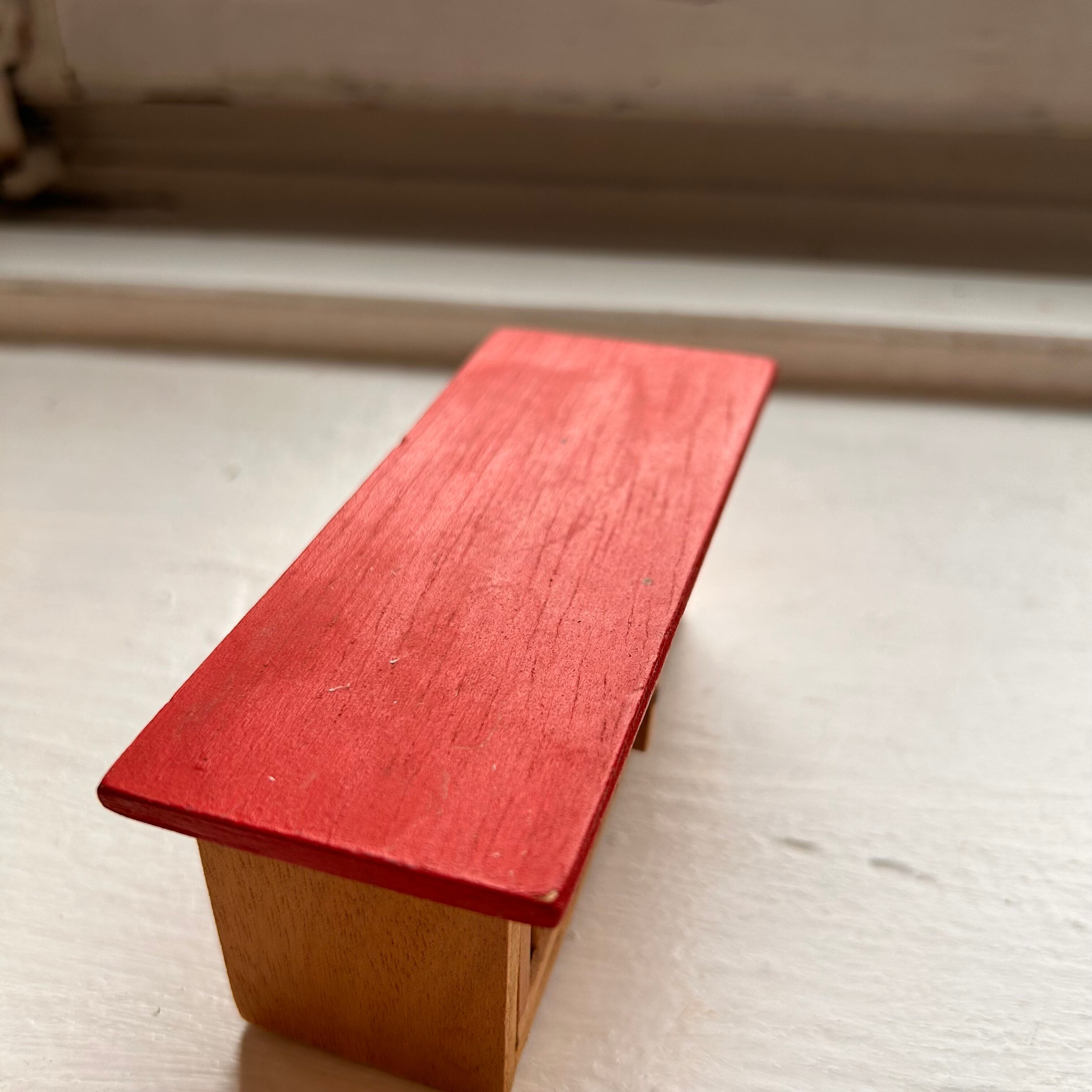 状態など:小屋の扉が中に入ってしまいます(写真5)。柵の1本を持って前に引くことが出来ます。写真で写しにくいのですが、小屋のてっぺんにうっすらとしたシミがあります(写真9)。