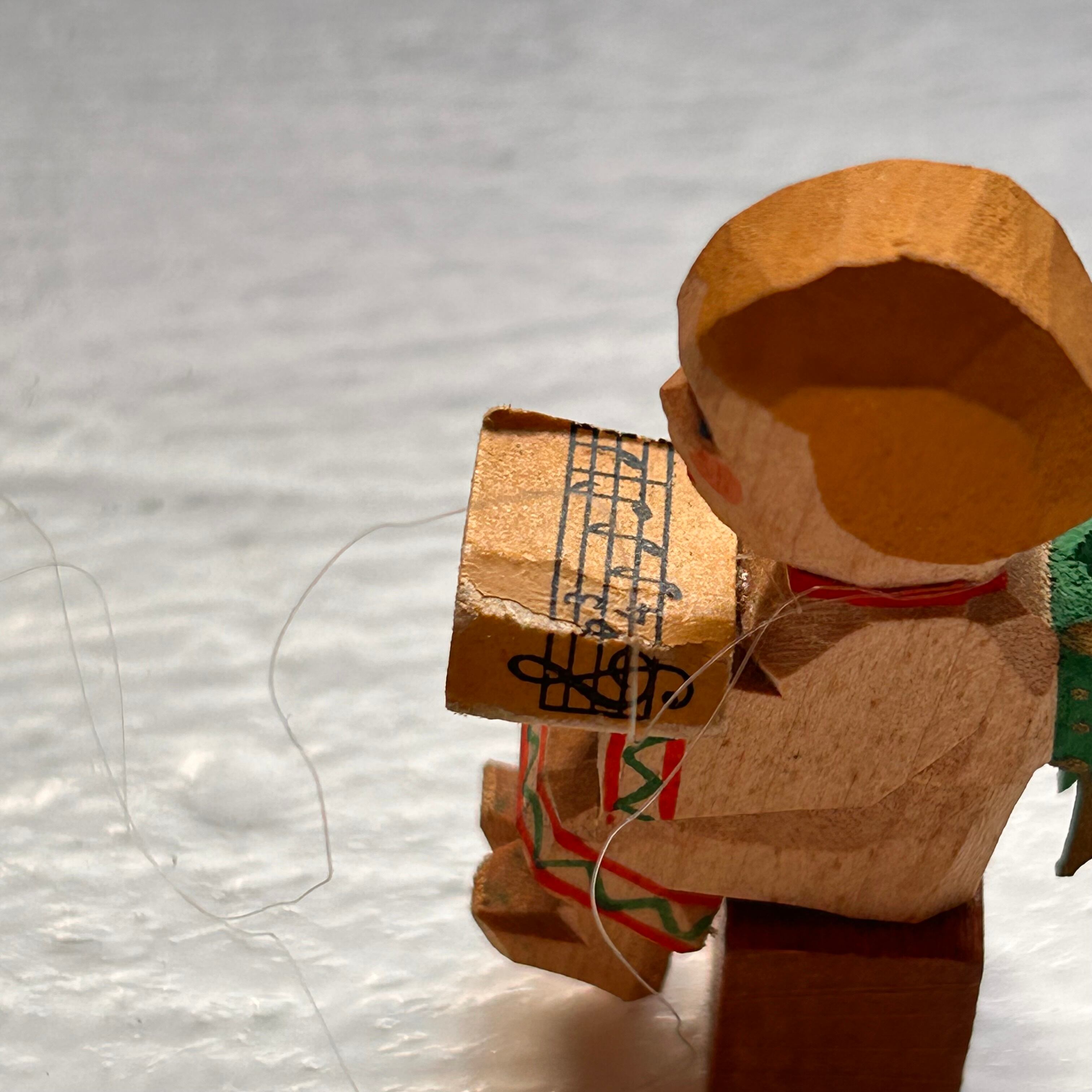 状態など:楽譜は紙製で、片方の楽譜に折れがあります(服の柄が緑)。前の持ち主がテグスを付けて飾っていたようです。不要であれば簡単に切って取ることが出来ます。