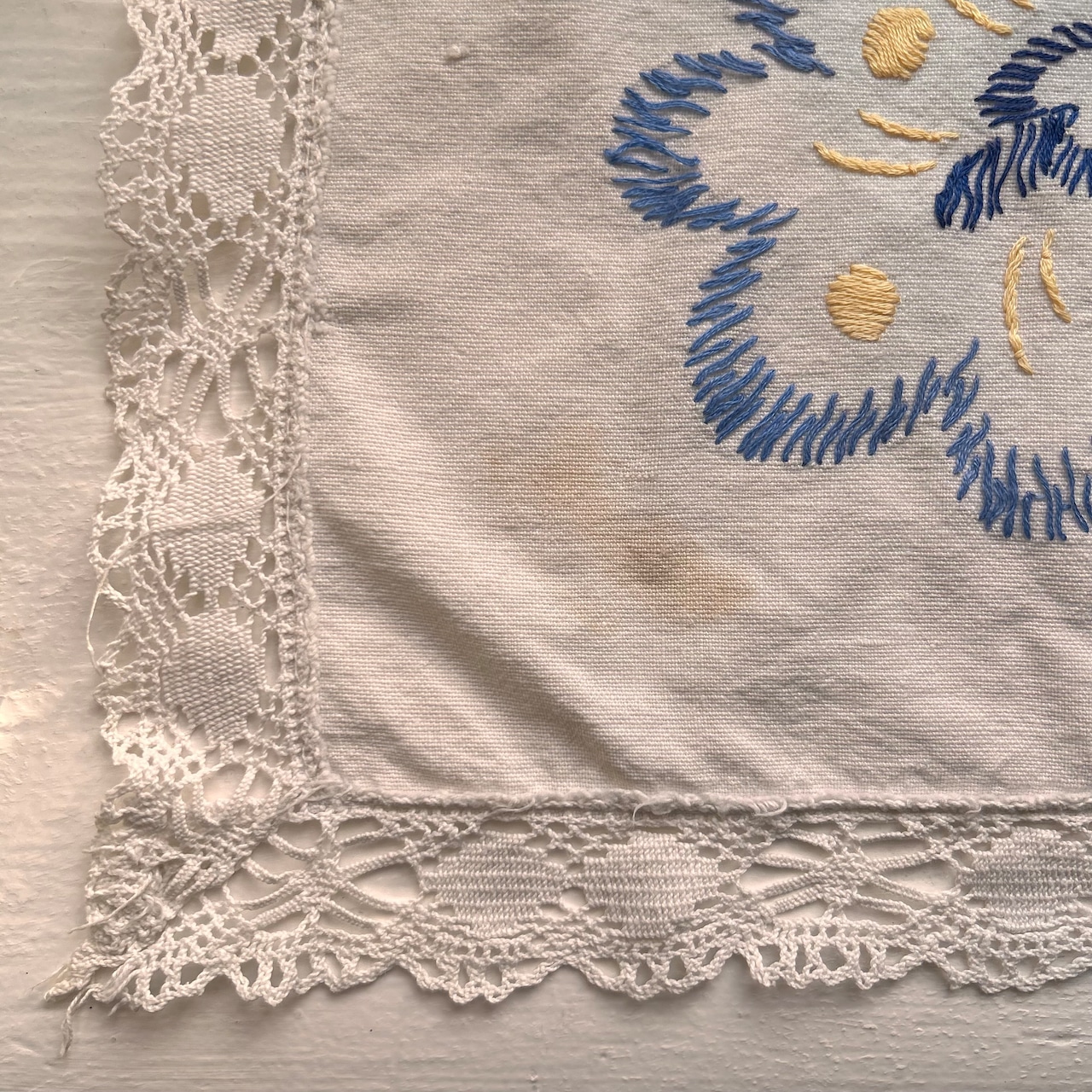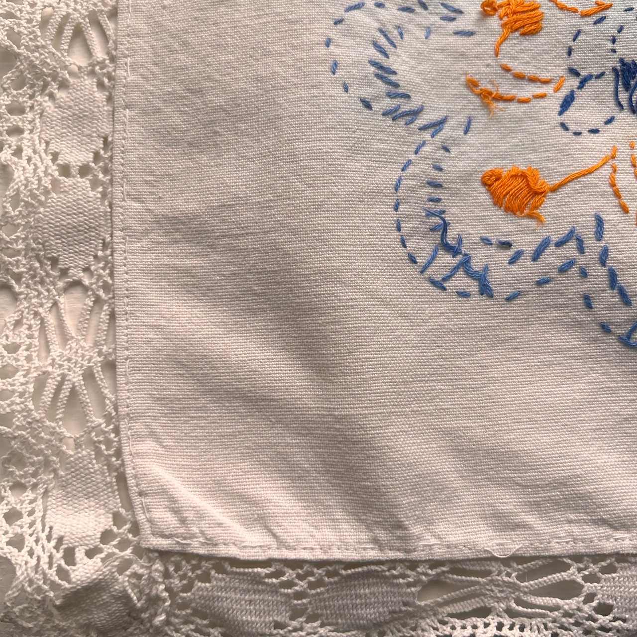 細い線や太い線を組み合わせた刺繍が不思議な魅力の一枚。