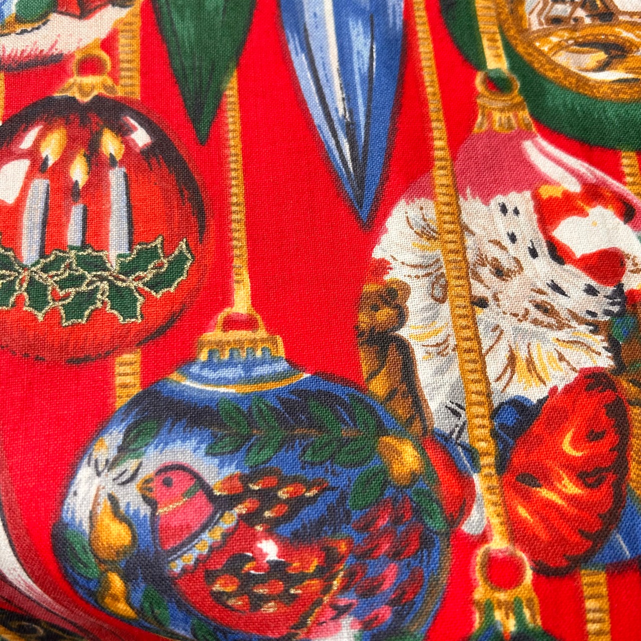 子供たちが歌を歌っている姿や天使、サンタクロース、鳥などさまざまなモチーフのオーナメント柄です。