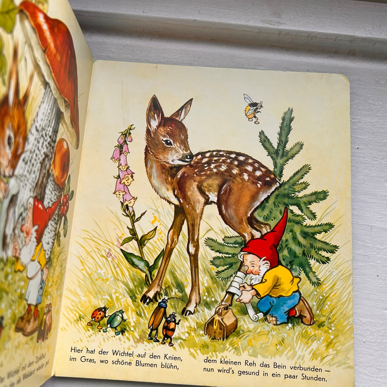 爪を怪我したリス、耳を怪我したうさぎ、木の上の小鳥。森の小人のお医者さんはいろいろな動物のところへ駆けつけては病気やケガを治します。
