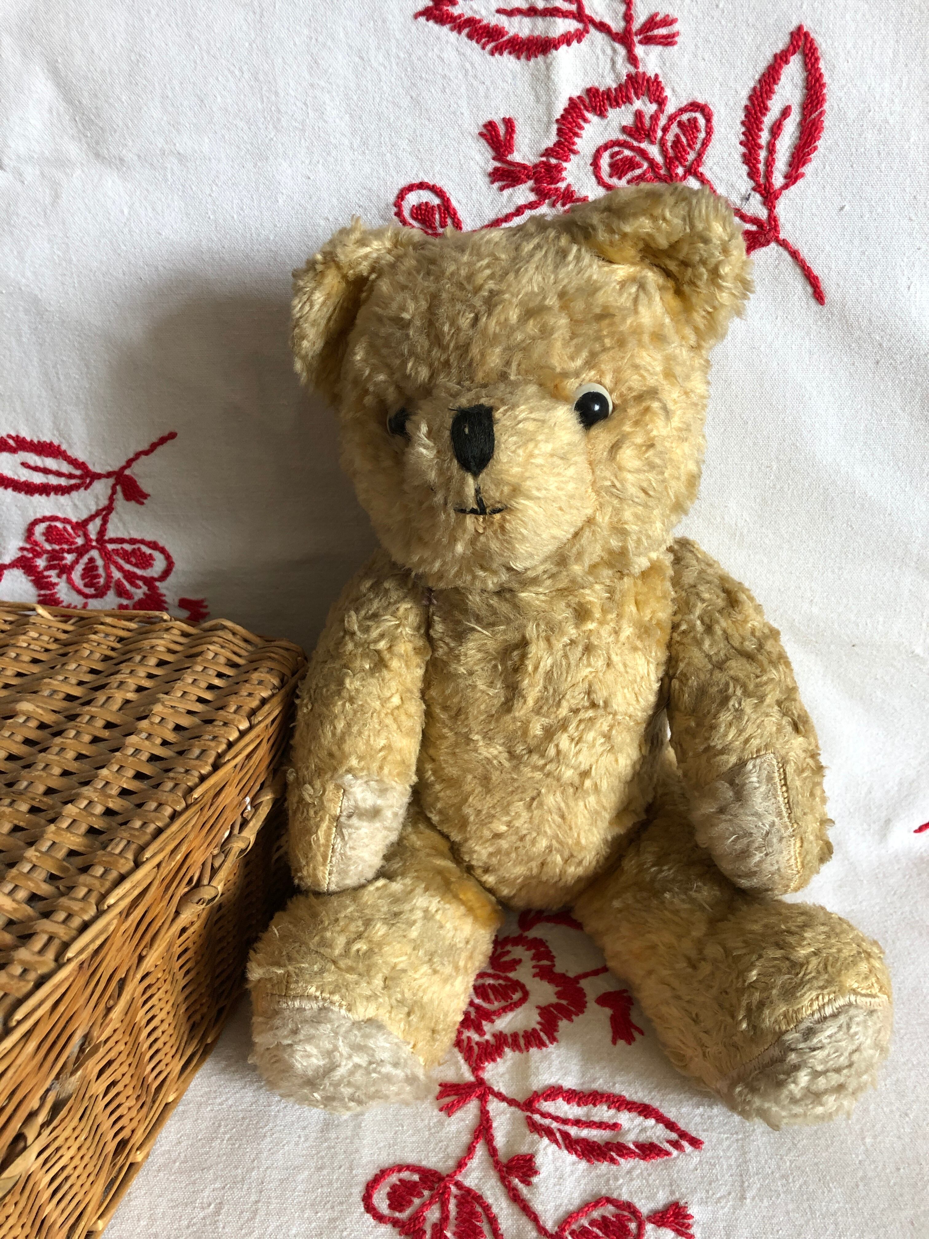 かわいい目が印象的なテディベアは蚤の市からやってきた新入りくんです。