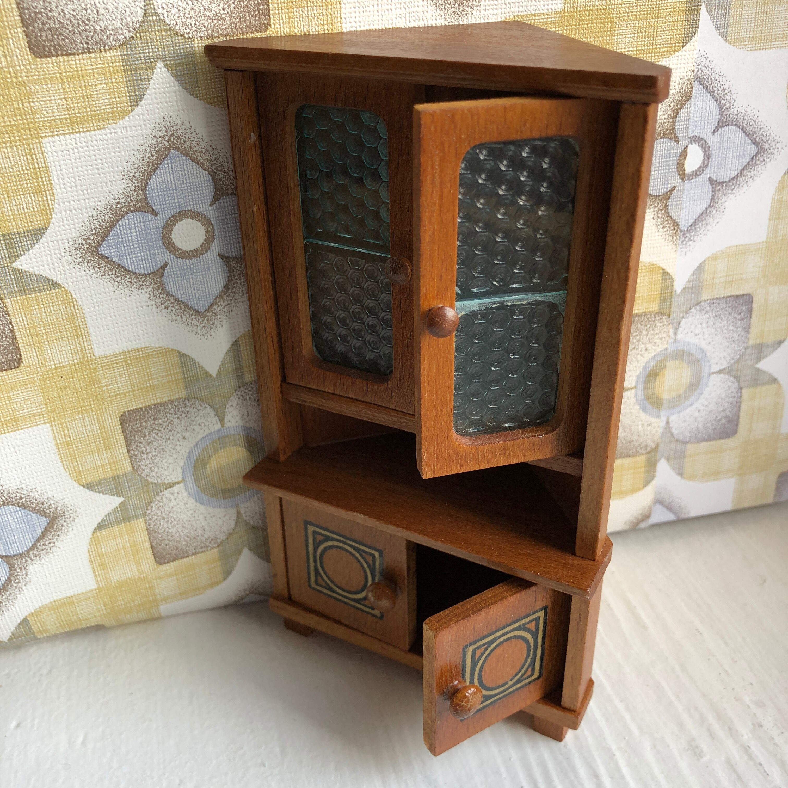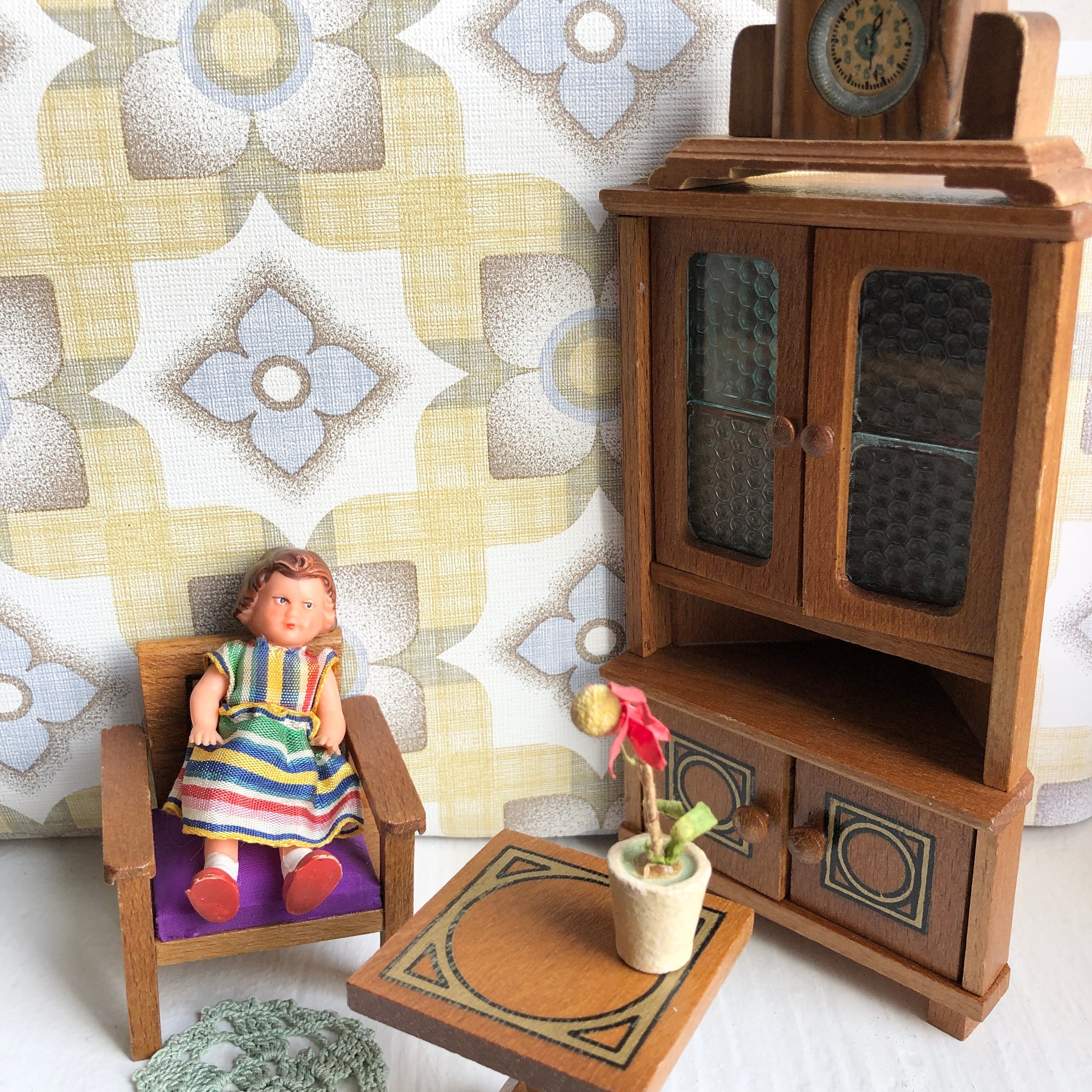 旧東ドイツ時代の三角形コーナー用家具、お揃いのチェアとテーブルにドールがついたセットです。