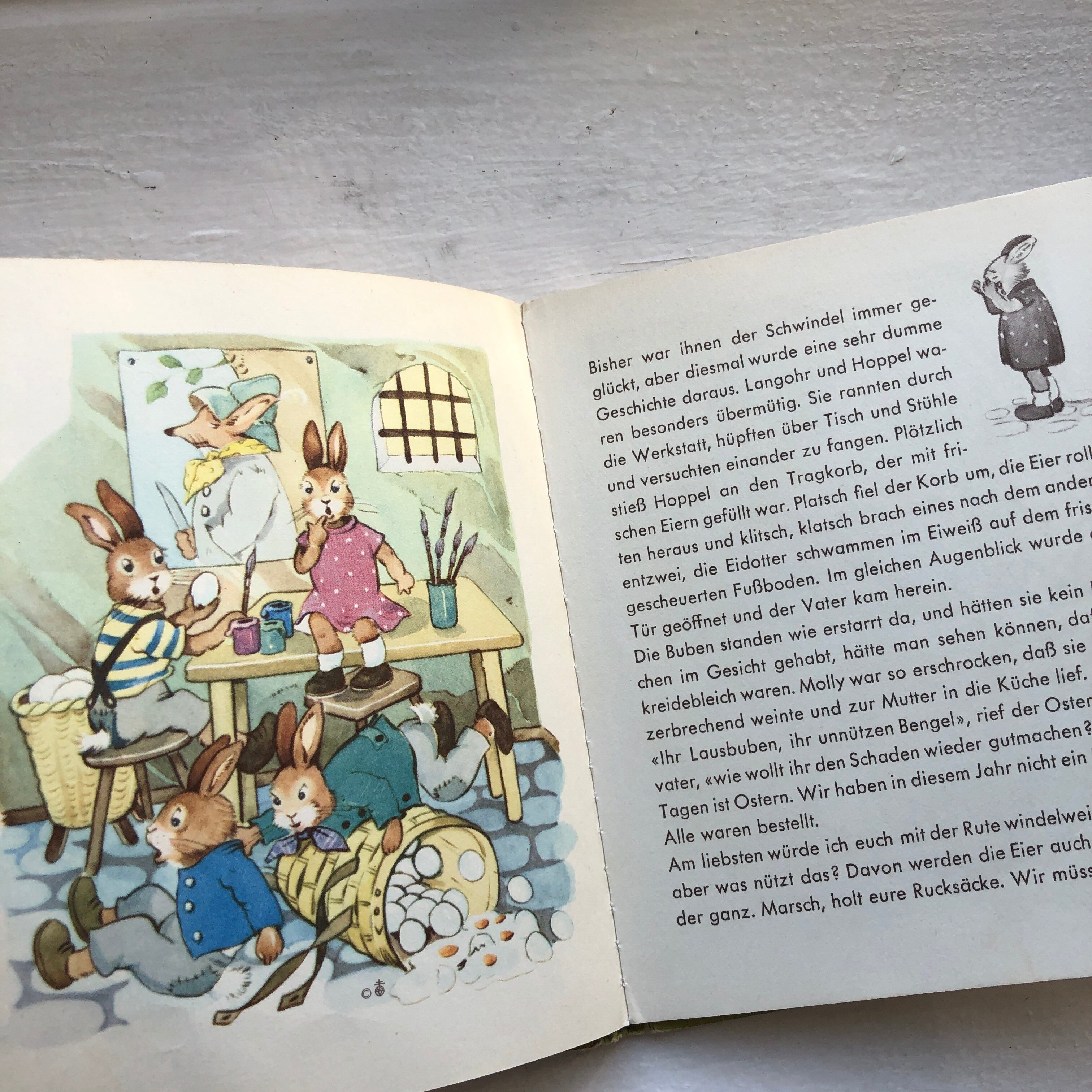 モリーと兄弟たちがイースターに向けて卵にペイントするなど、準備を楽しむ様子が描かれた一冊です。片側にカラーイラスト、隣のページに一色刷りの小さなイラストという感じで全ページが構成されています。イラストは、本の大きさもあり、ちょうどポストカードのようです。