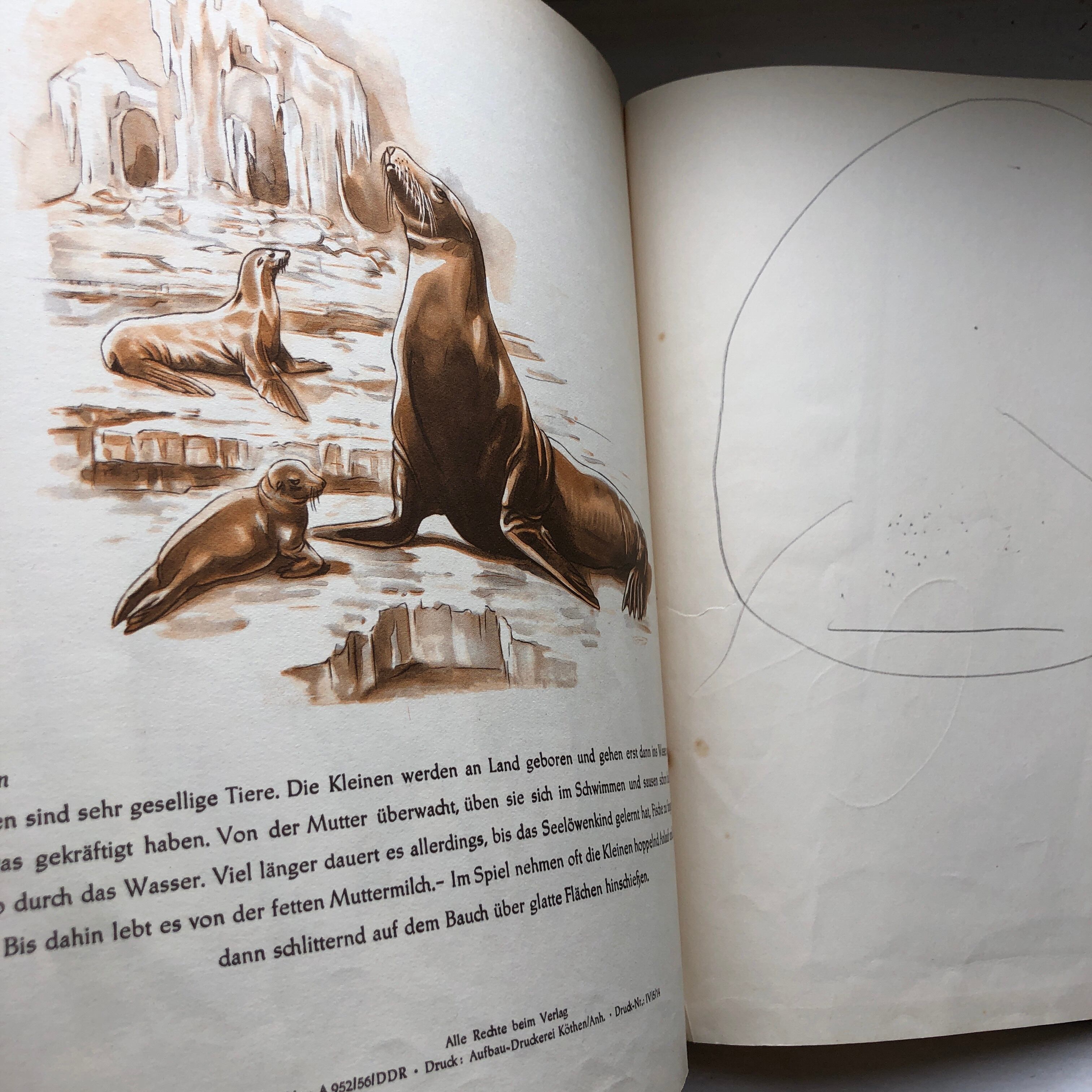 こちらをまっすぐに見つめるシカのお母さんとバンビ達。表紙の色合いが素敵な一冊です(鉛筆の線が入っていますが。)。