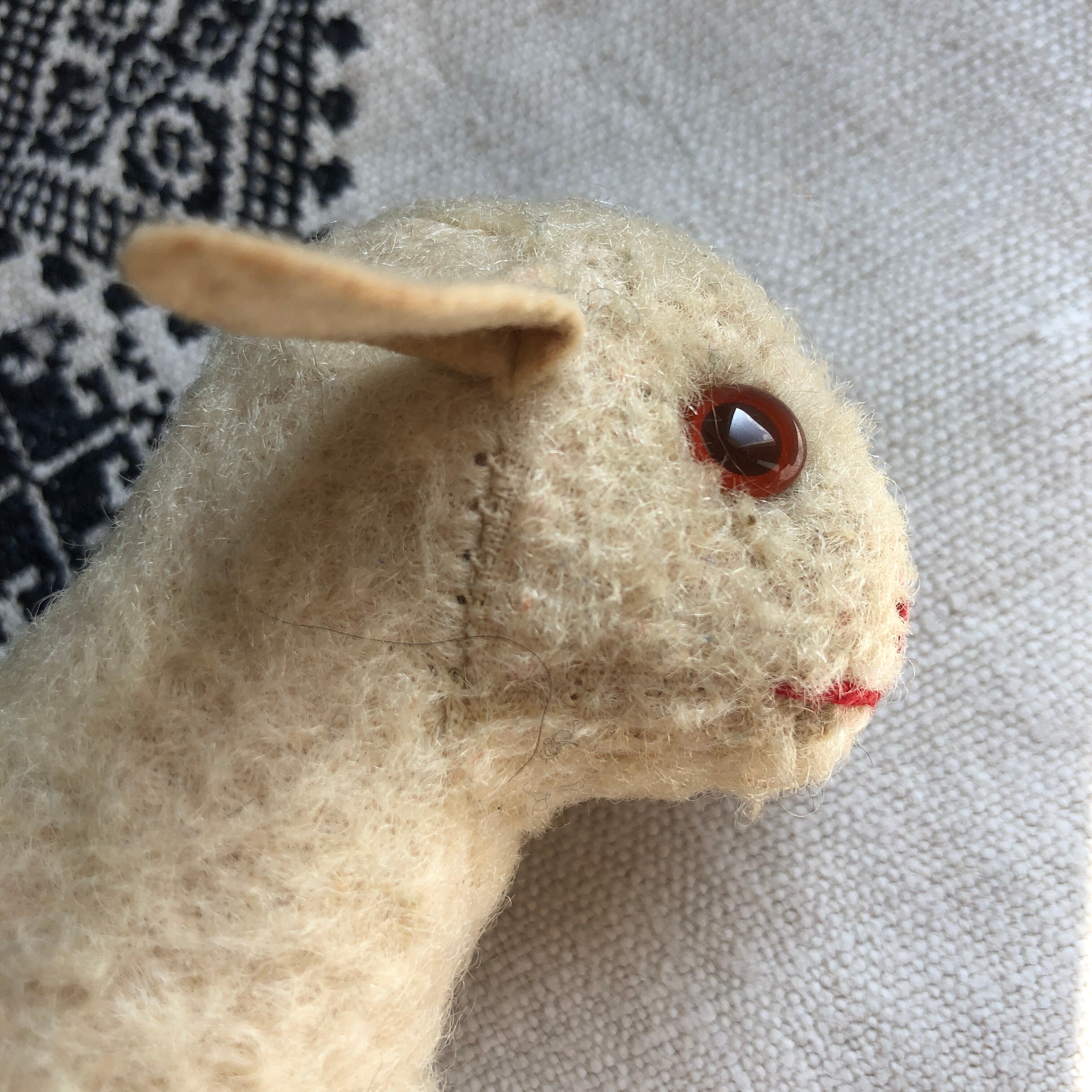 今にも歩き出しそうな華奢な四肢と長いしっぽ、垂れた耳が特徴的です。佇まいがとても美しく、置いておくだけで存在感がありますし、ほかのヴィンテージ品とも合います。