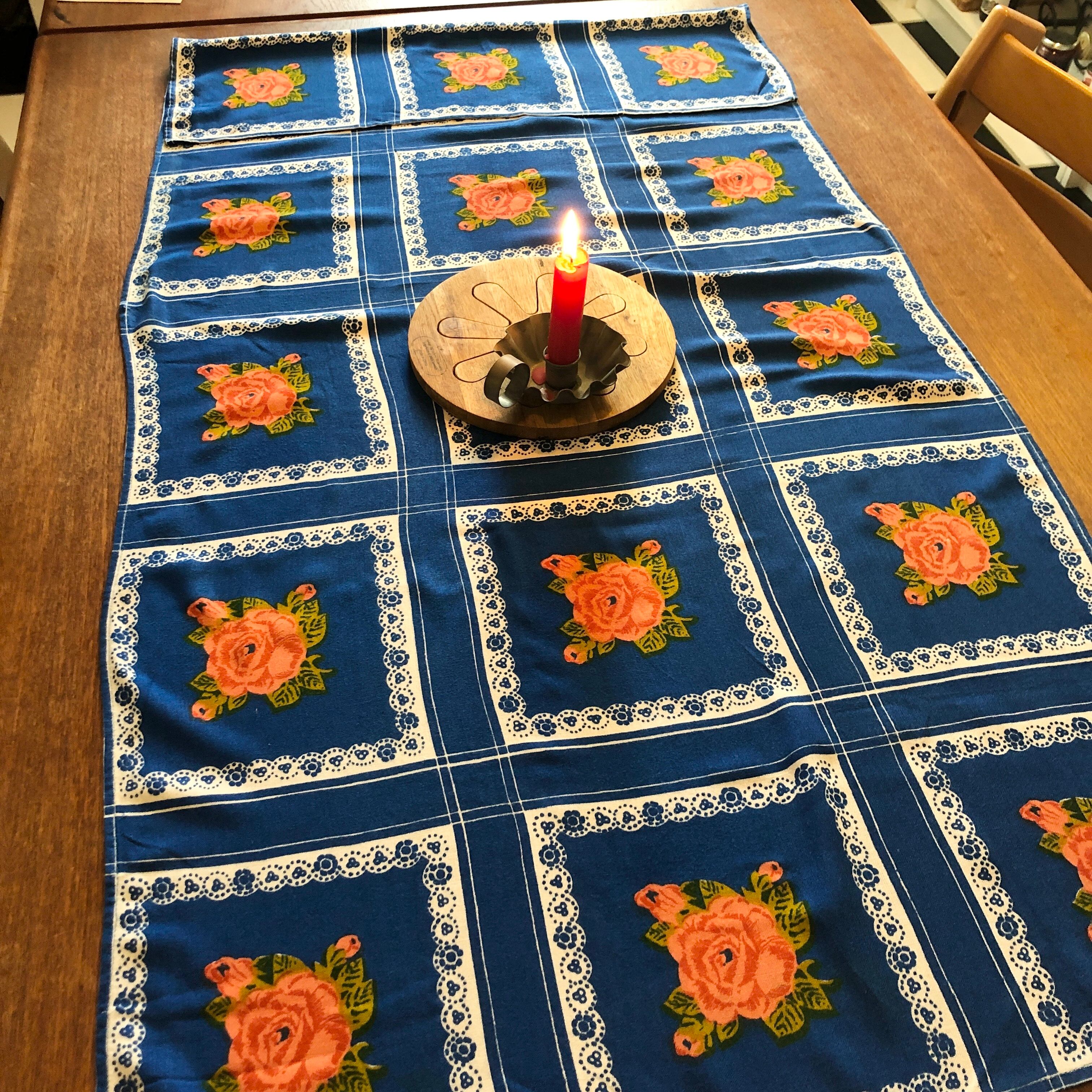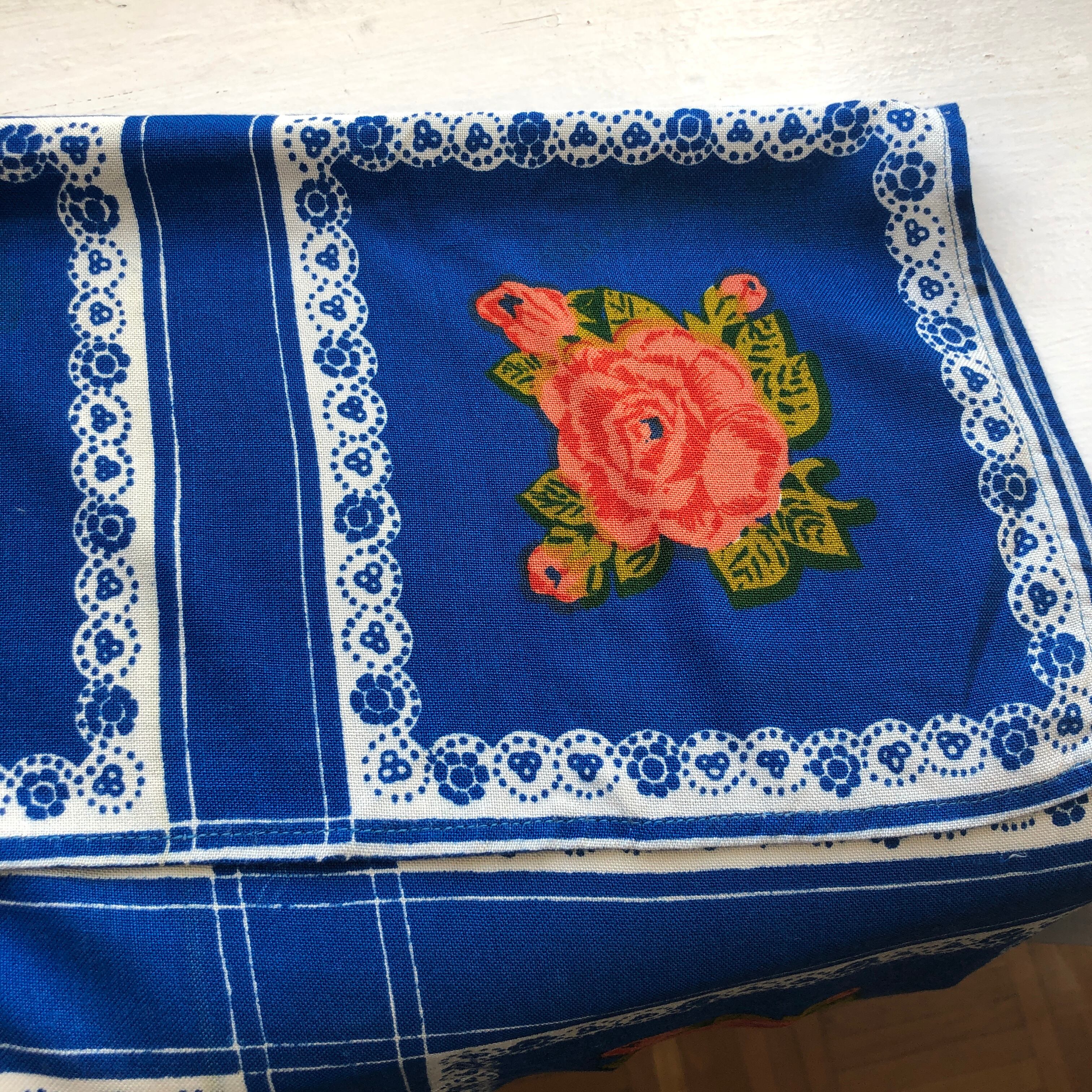 東欧やロシアっぽい雰囲気の大き目の青い薔薇のクロス。