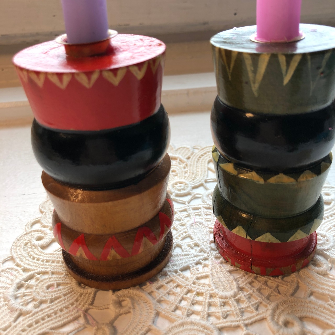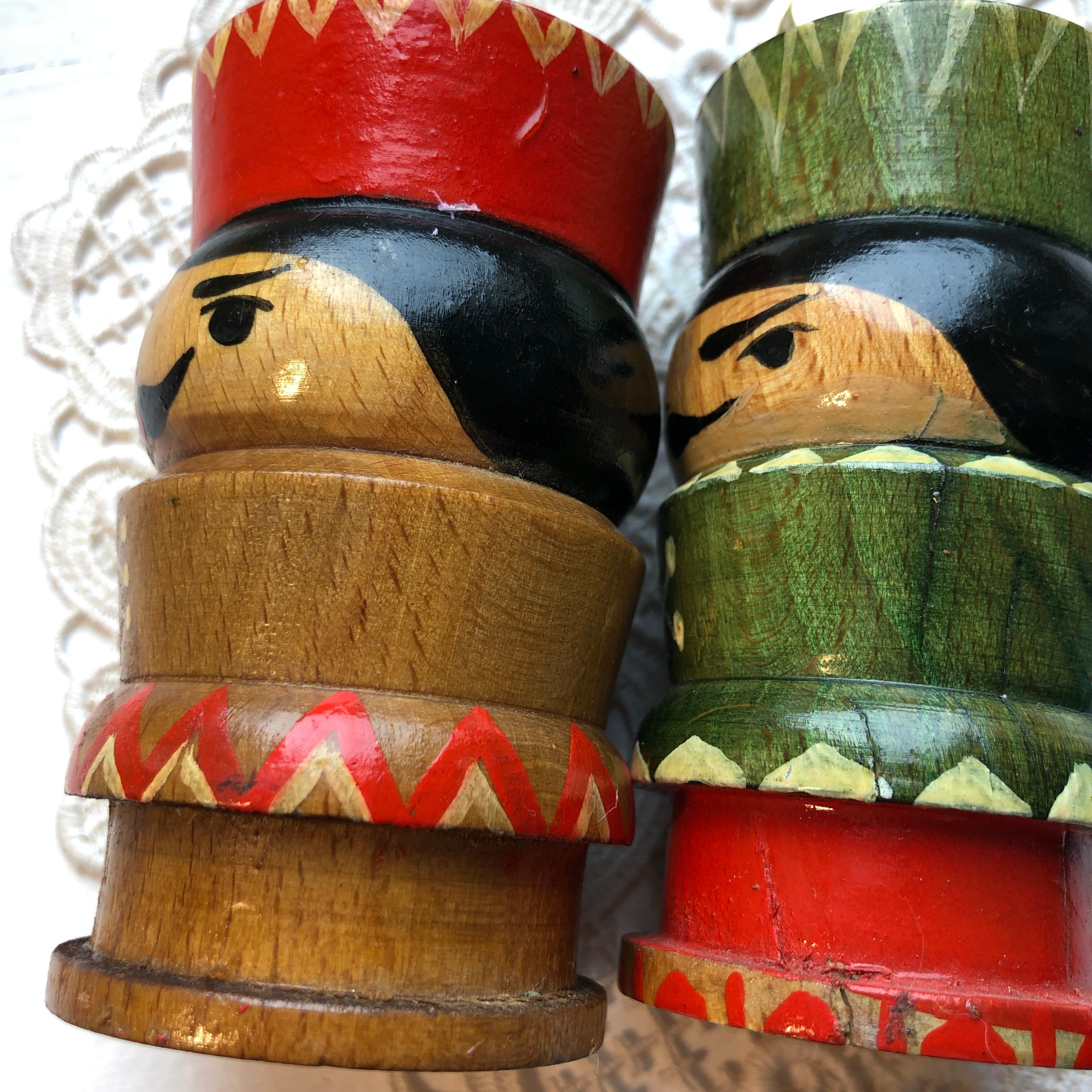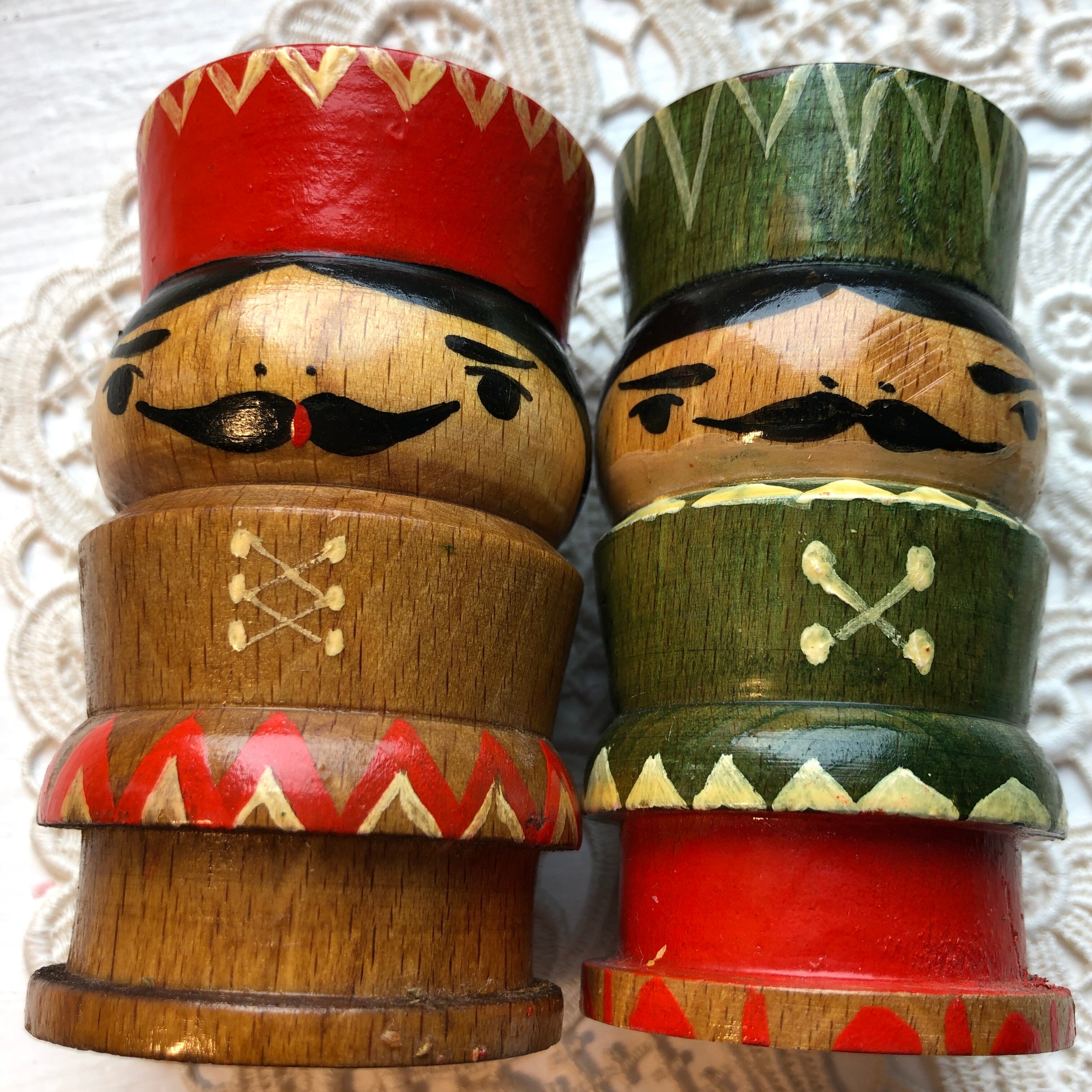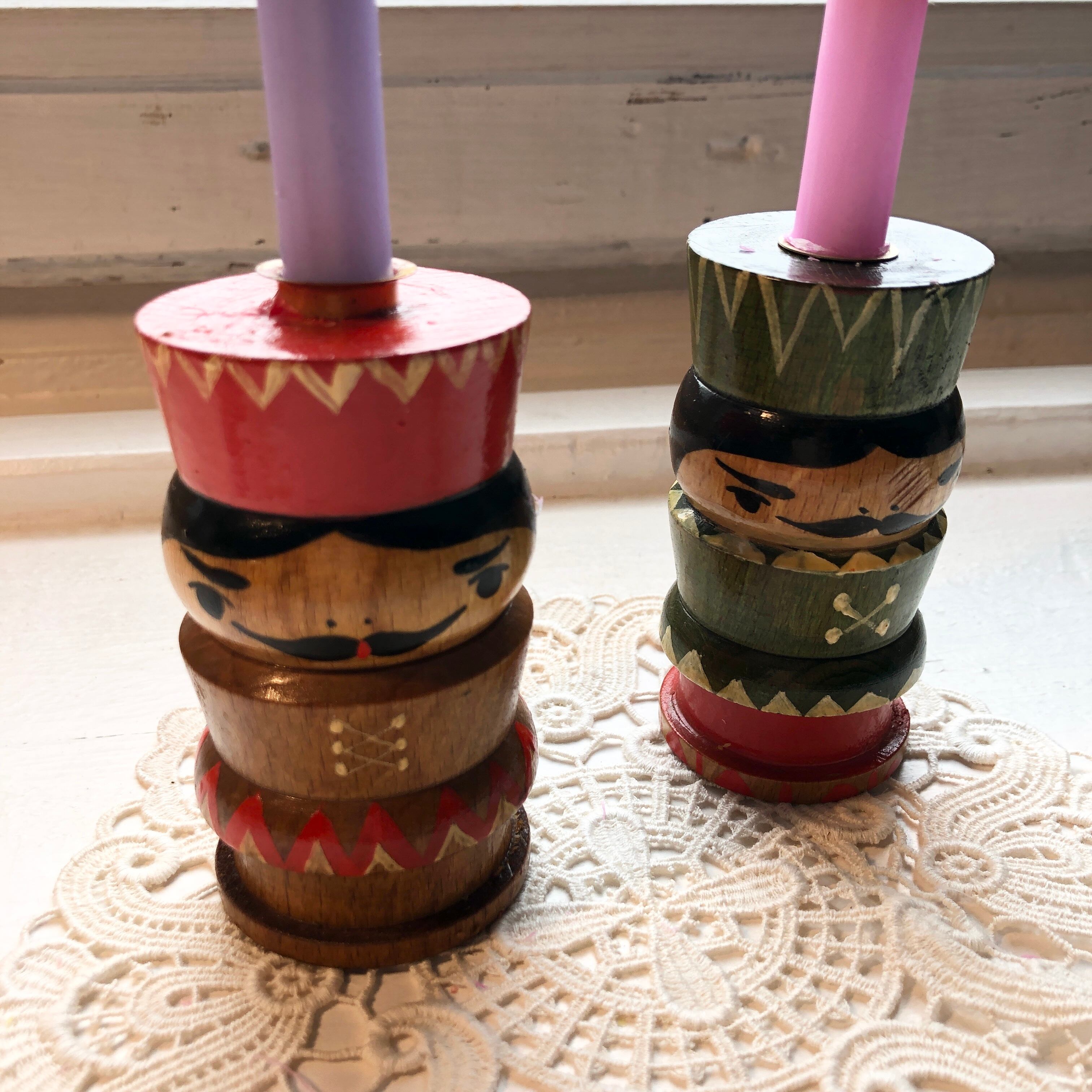 状態など:緑のおじさんの顔に少し傷が入っています。赤と緑で、キャンドル部分の高さが少し異なります。(太さも異なります)古いものの味わいたっぷりのアイテムです。