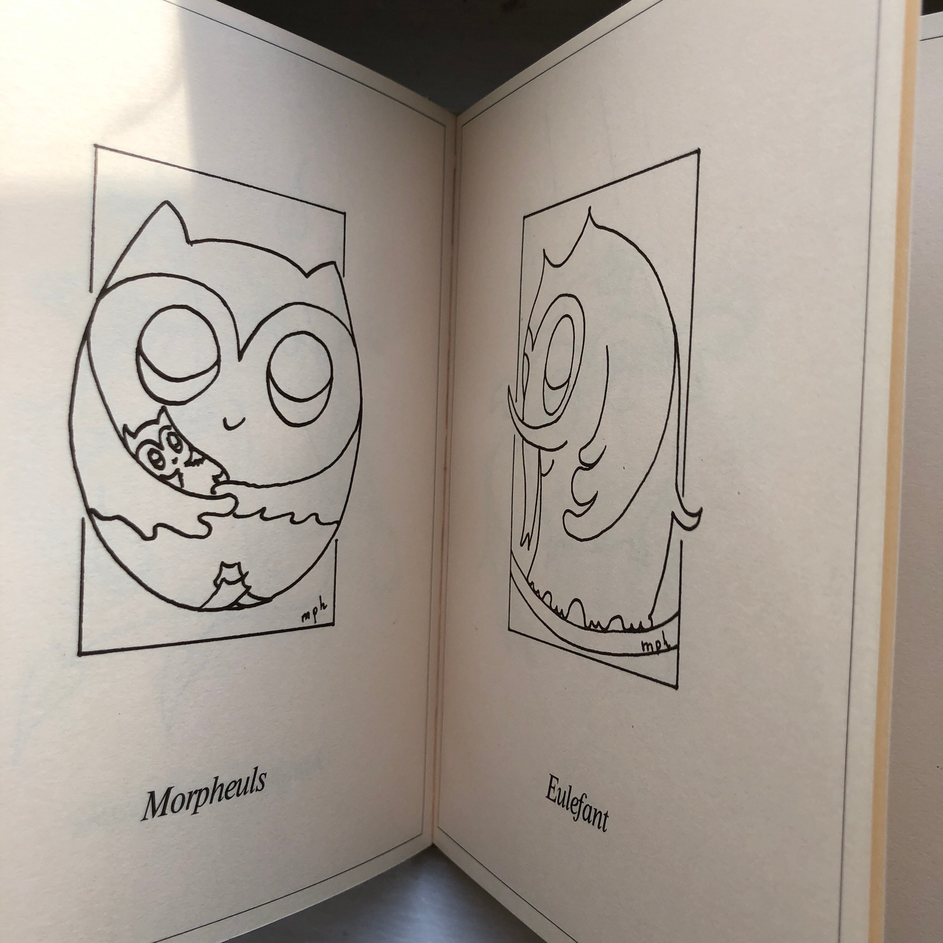 例えば、シュタイナー教育で用いられるオイリュトミーというダンスと、ドイツ語でフクロウという意味の「Eule=オイレ」がかけあわされて、オイリトミーと題され、ダンスを踊るオイレたちが描かれています。いろいろな単語とオイレが掛け合わされ、それぞれゆるく描かれたフクロウたちの姿がなんとも愛らしい一冊です。