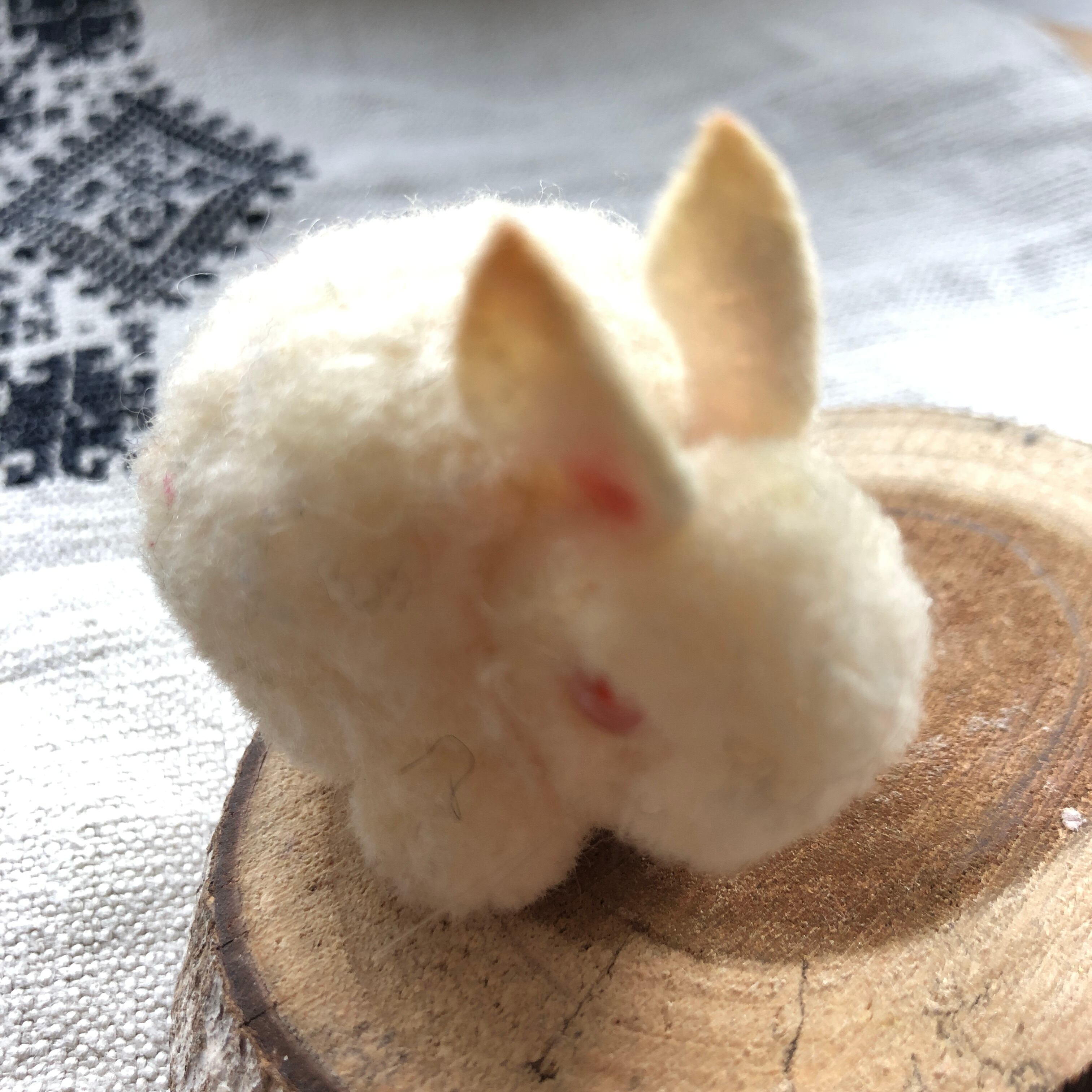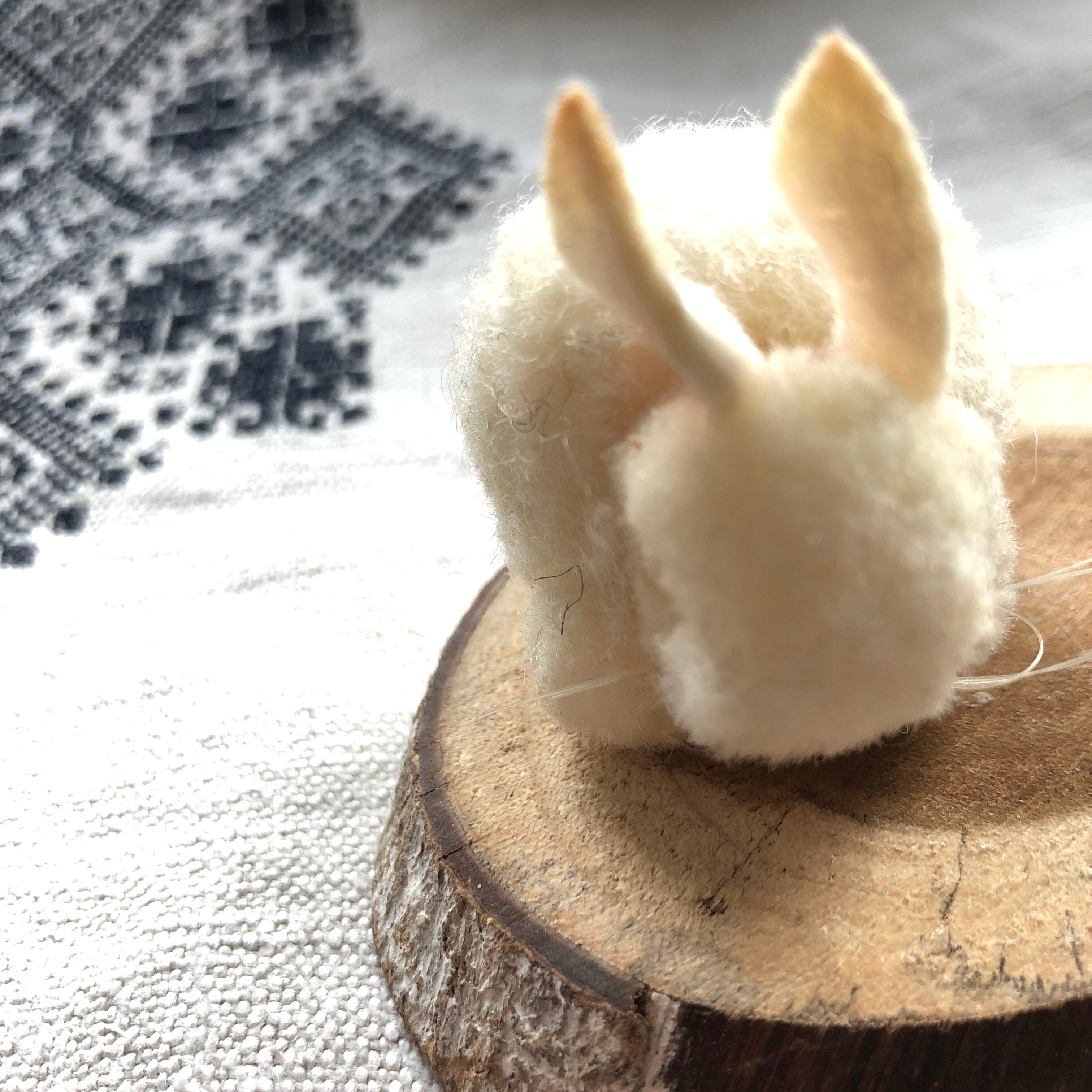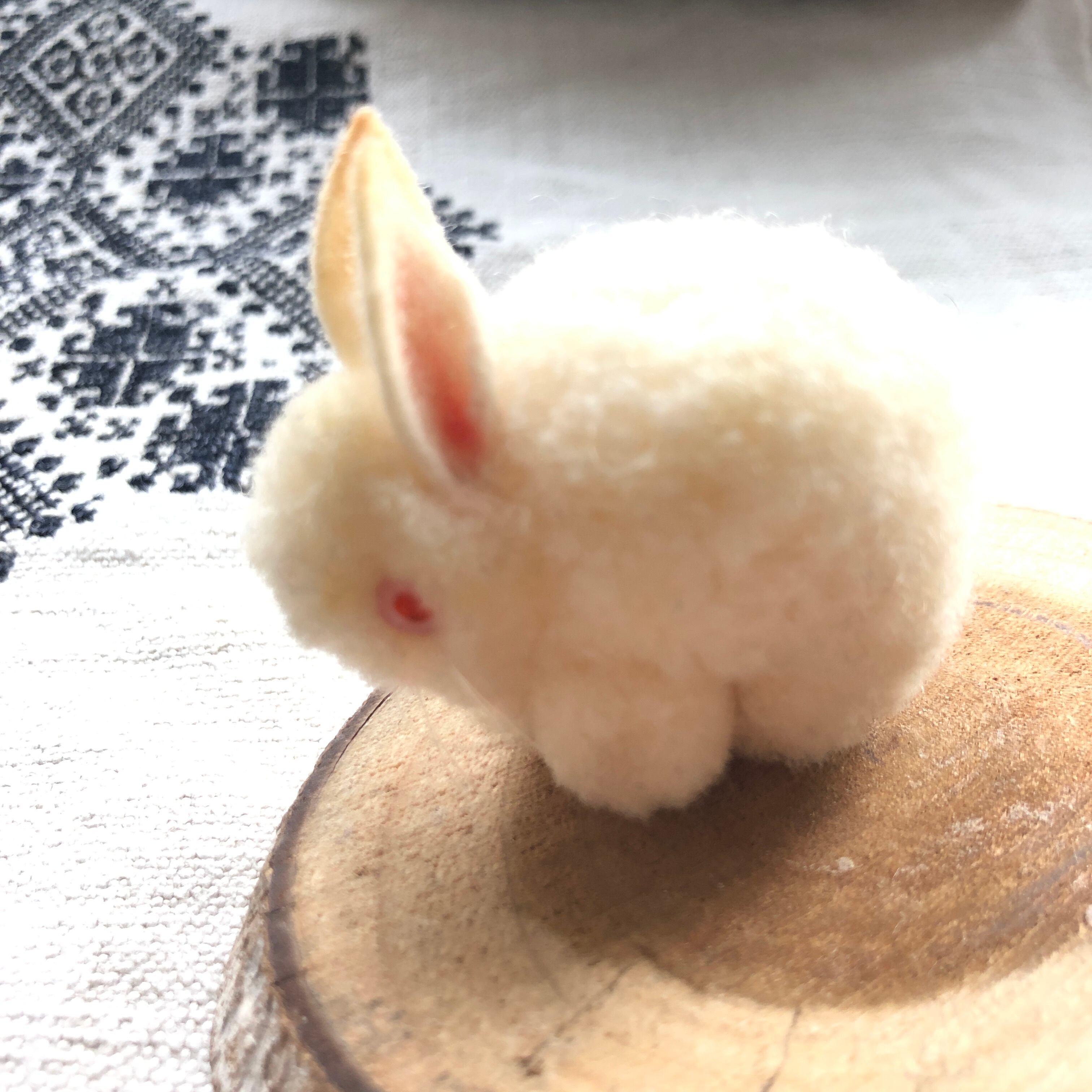 丸っとした背中がかわいらしいシュタイフのポンポンで出来たうさぎです。