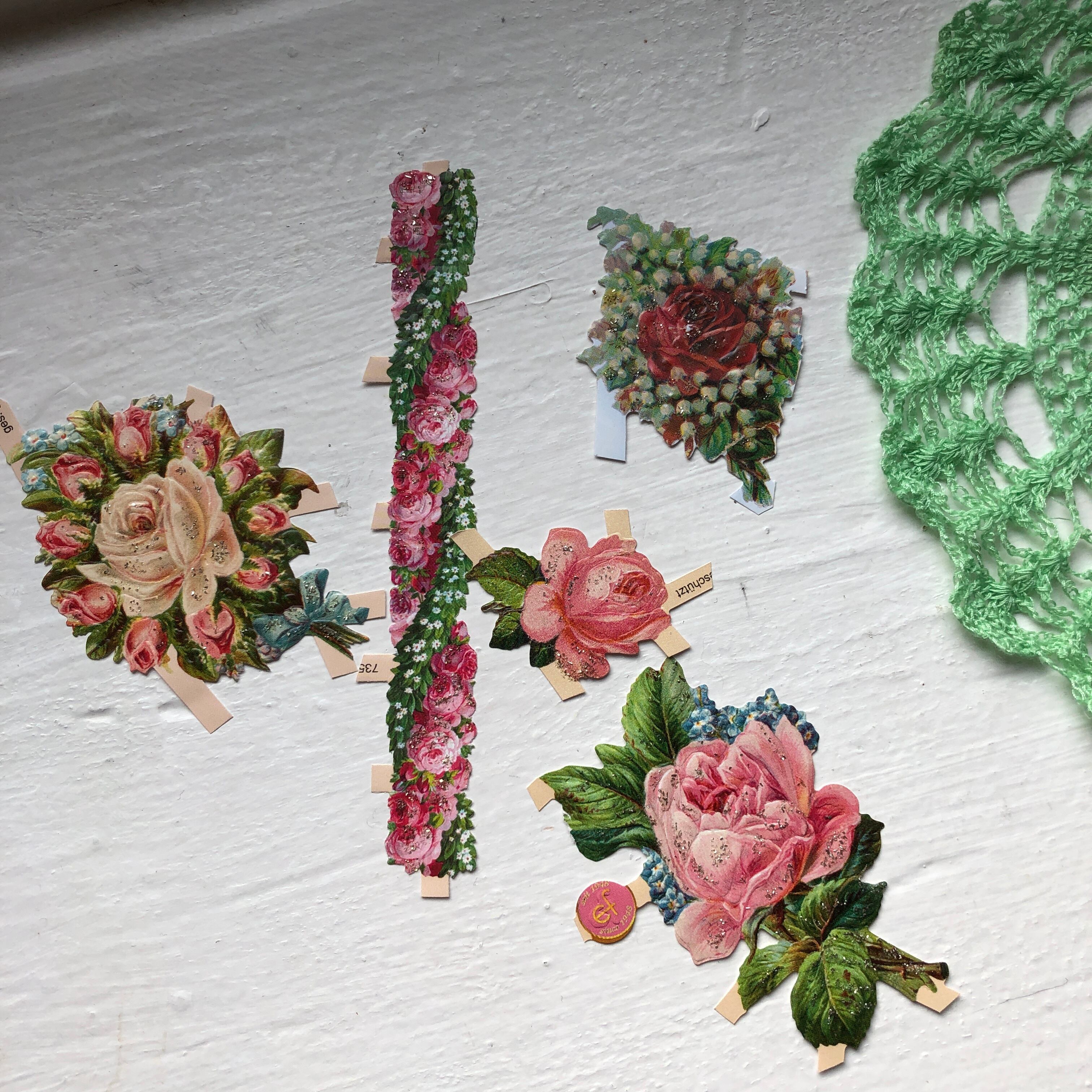 クロモスは、ドイツではGlanzbilder(グランツビルダー=キラキラした絵)やSammelbilder(コレクションする絵)と呼ばれています。エンボス加工を施し、おうとつのあるのが特徴で、ほとんどのものにラメがついています。知り合いの60代の女性が、子供の頃たくさん持っていて、交換したり、集めたりして遊んでいたと言っていました。