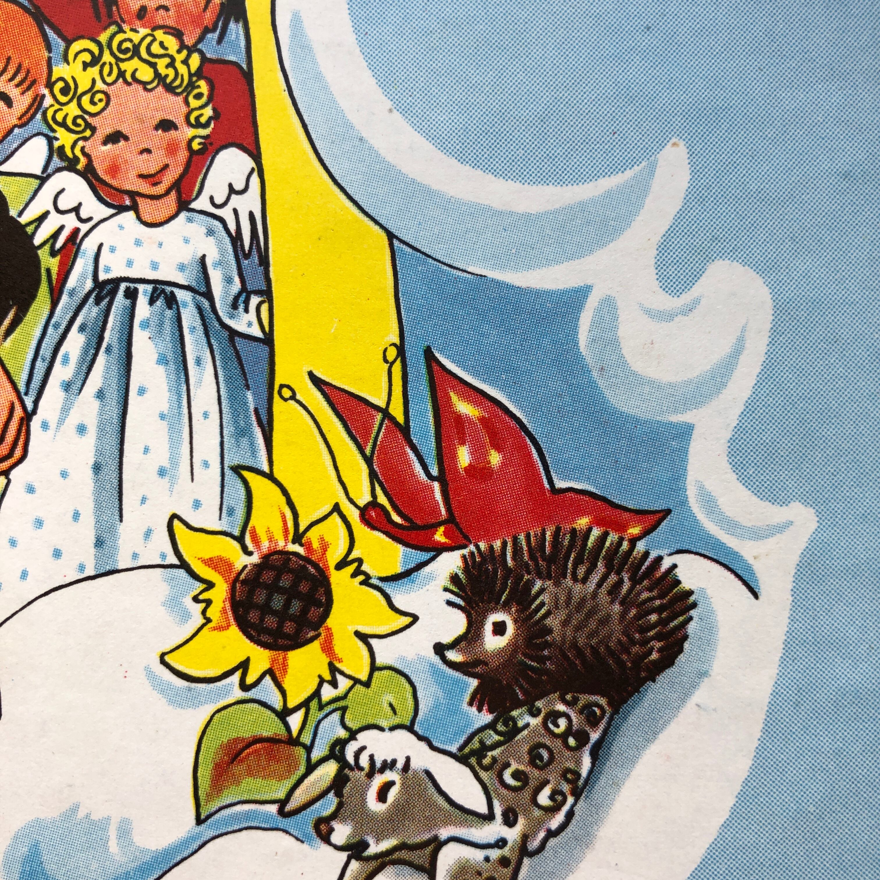 みどり、ピンク、水色などで囲まれたイラストの動物や天使たちがとてもかわいらしい、薄いボードブック絵本です。