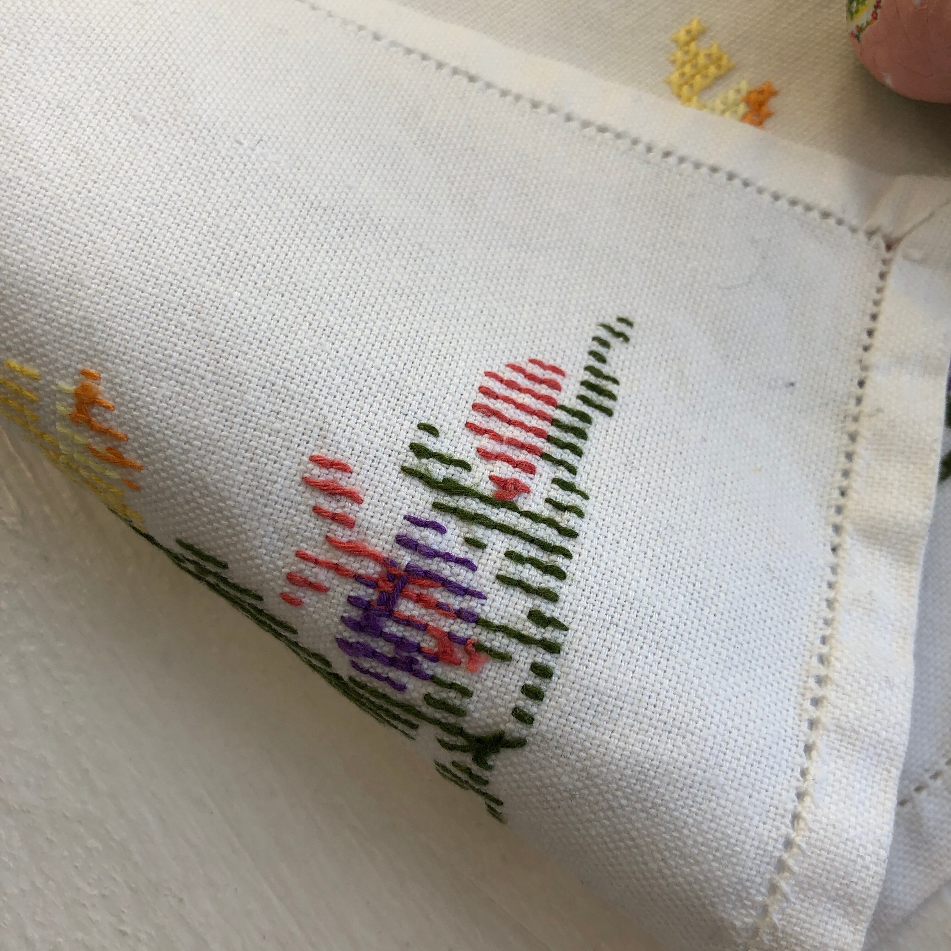 白いコットンベースなので、イースターのデコレーションやお花を飾るにもぴったりな一枚です。