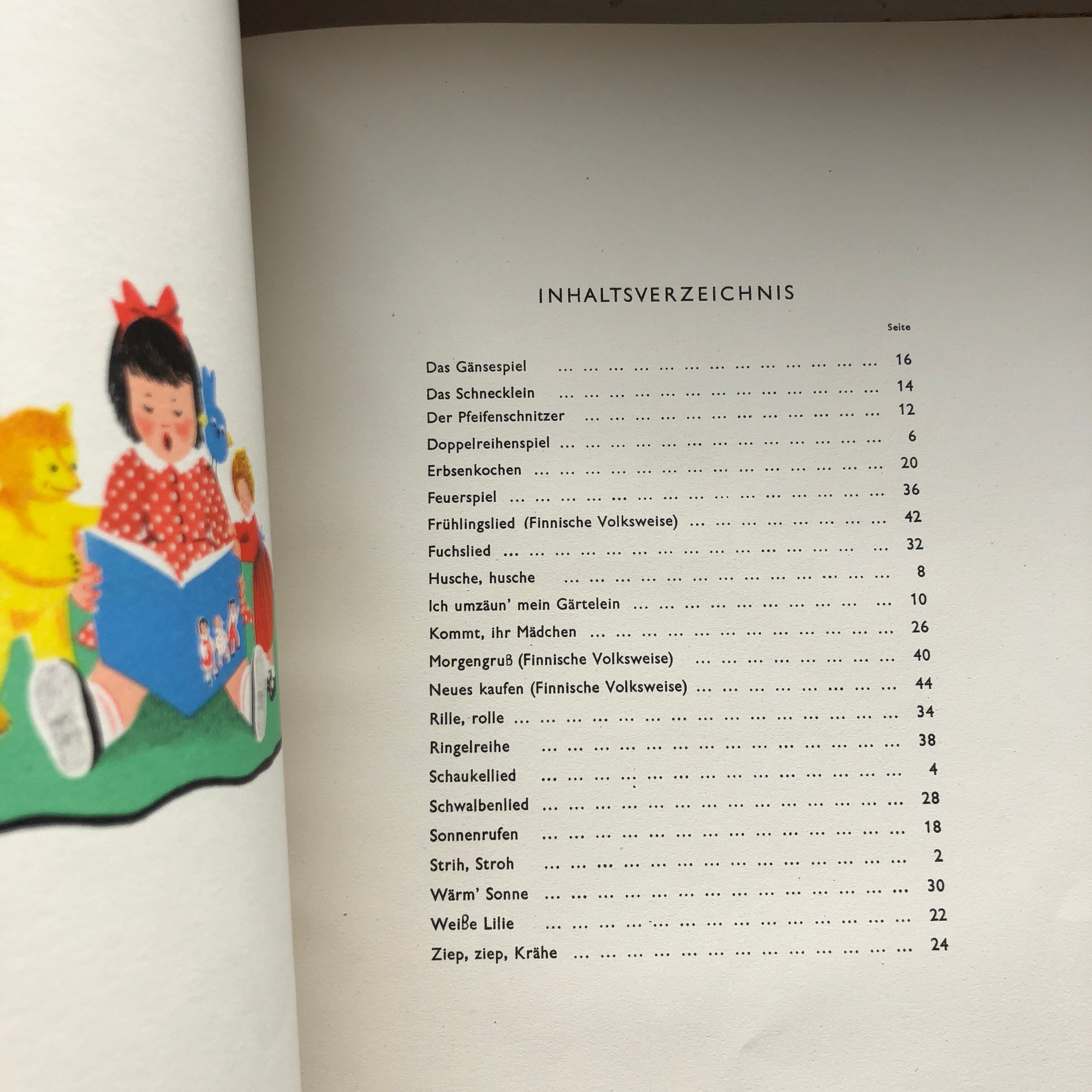 ブタペスト生まれのグラフィックアーティスト兼イラストレーターであるKato Lukats-Kaeszによる生き生きとした子供たちのイラストが魅力的なこちらの本は、歌と踊りのために歌詞と楽譜が紹介されています。