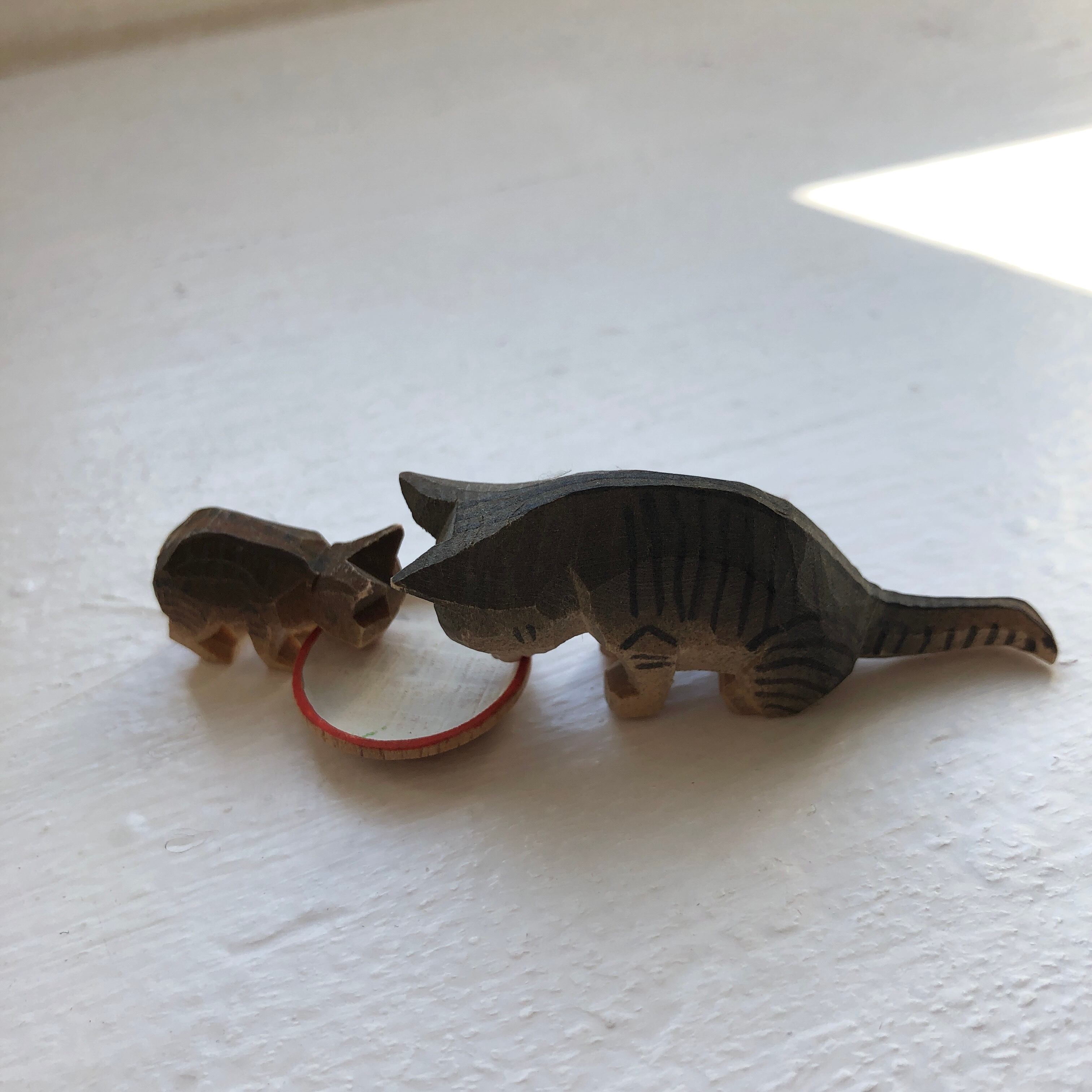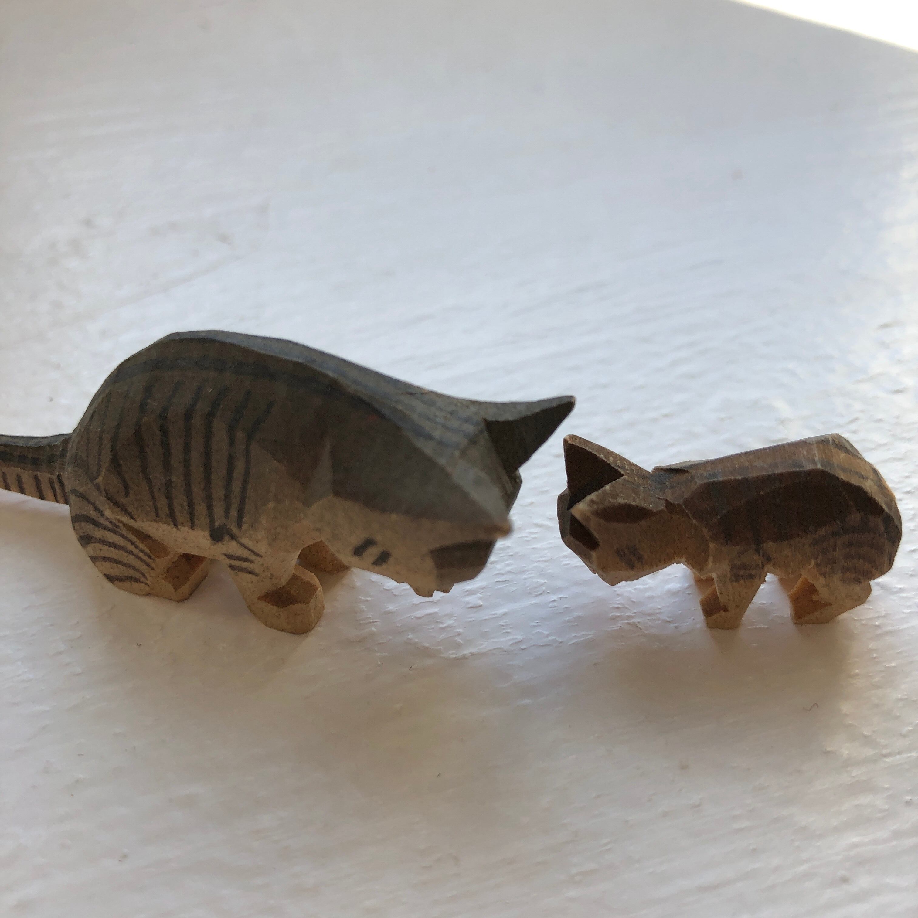 85年、3世代の歴史を持つEmil Helbig工房の手彫りのネコの親子です。