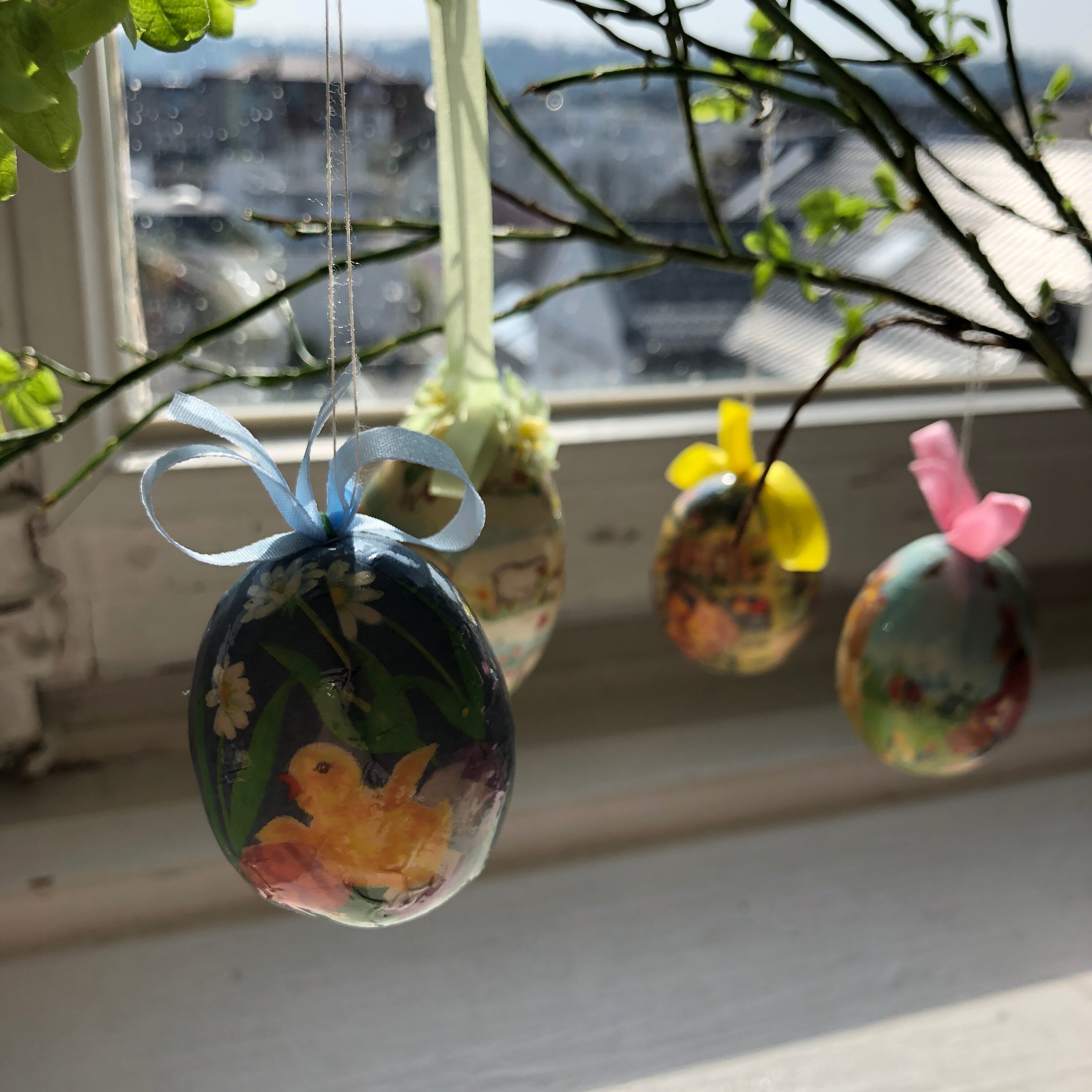 イースターの絵柄がデコパージュされたイースターエッグの4個セットです。Nestler社が販売している柄と同じものがあるので、Nestler社のものかもしれません。