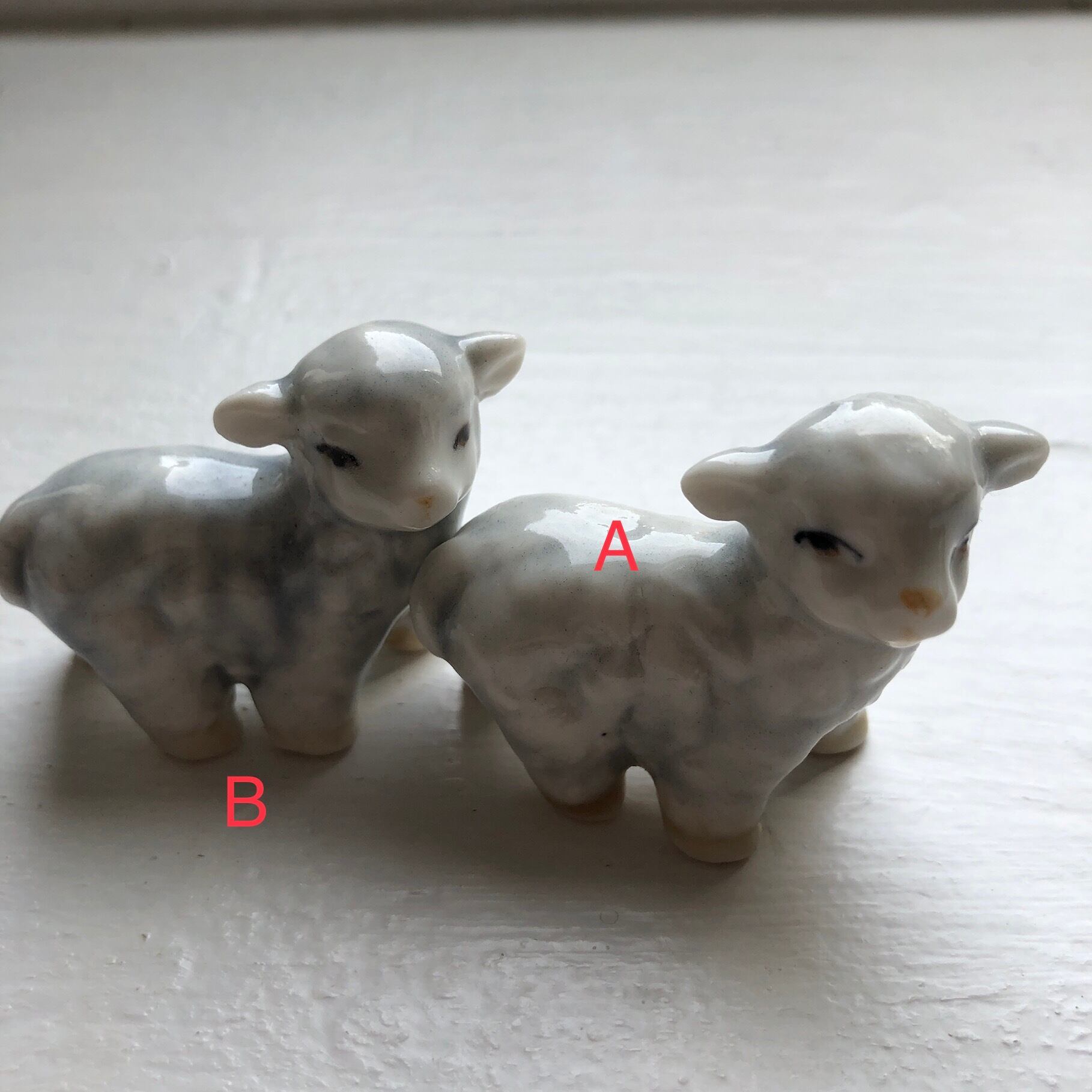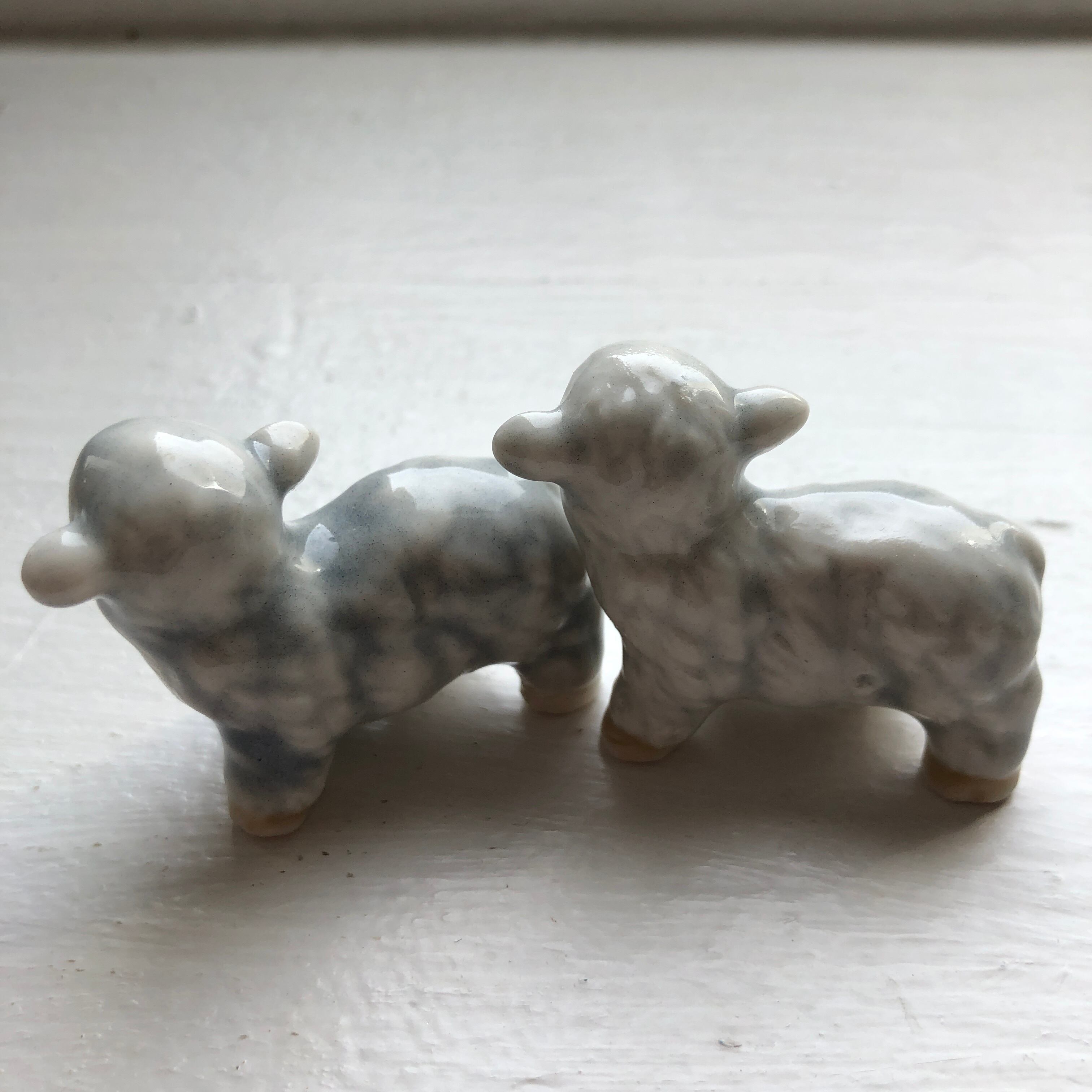 ピンとした耳と、ころりとしたボディがかわいい陶器の羊のフィギュアです。