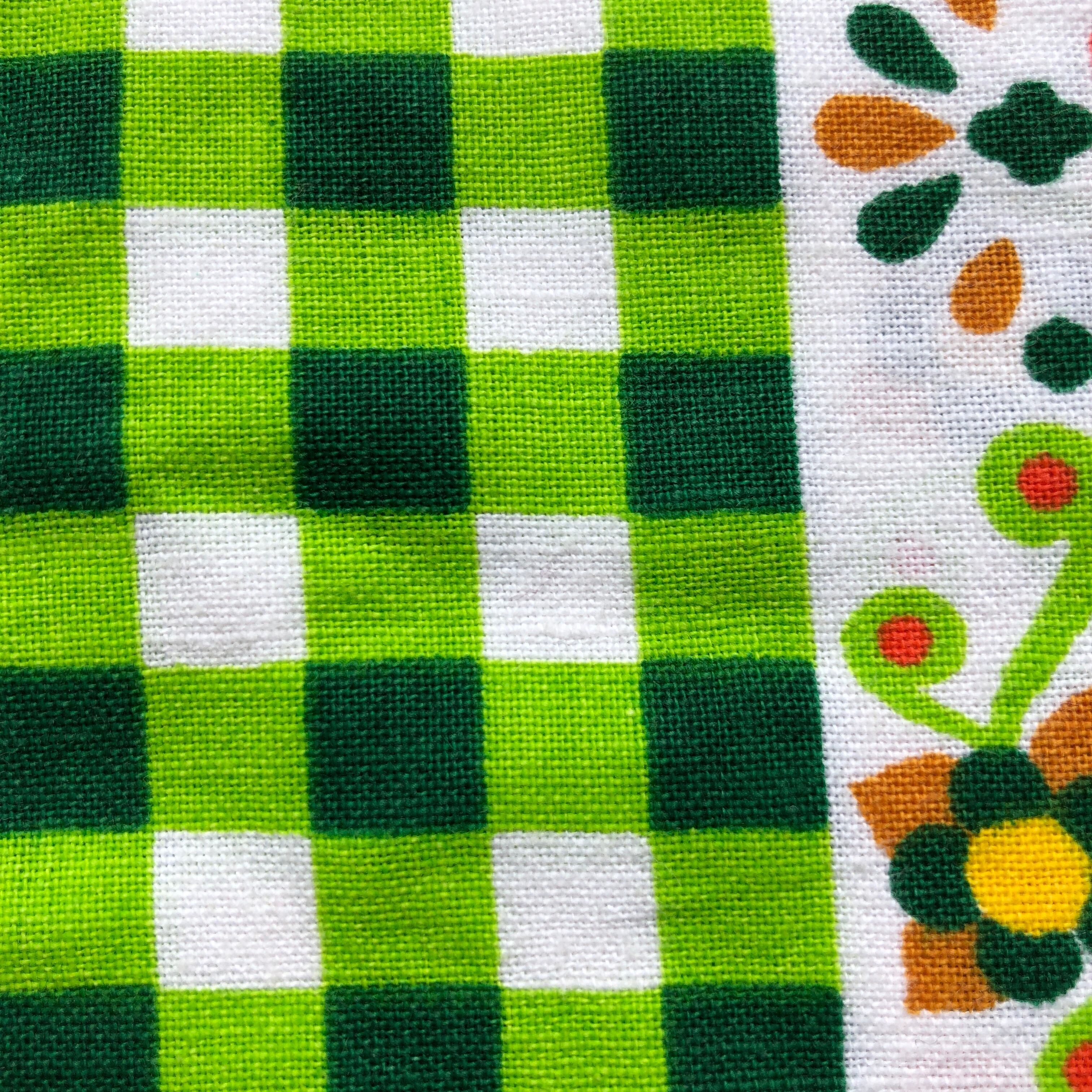 緑xきみどりのギンガムチェックがかわいいベッドカバーをカットしたクロスです。