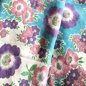 水色とピンク、むらさきと緑もアクセントとなってきれいなお花模様のベッドカバーをカットしたものです。優しい色合いで、大きすぎない柄がいろいろと手作りに使いやすそうです。