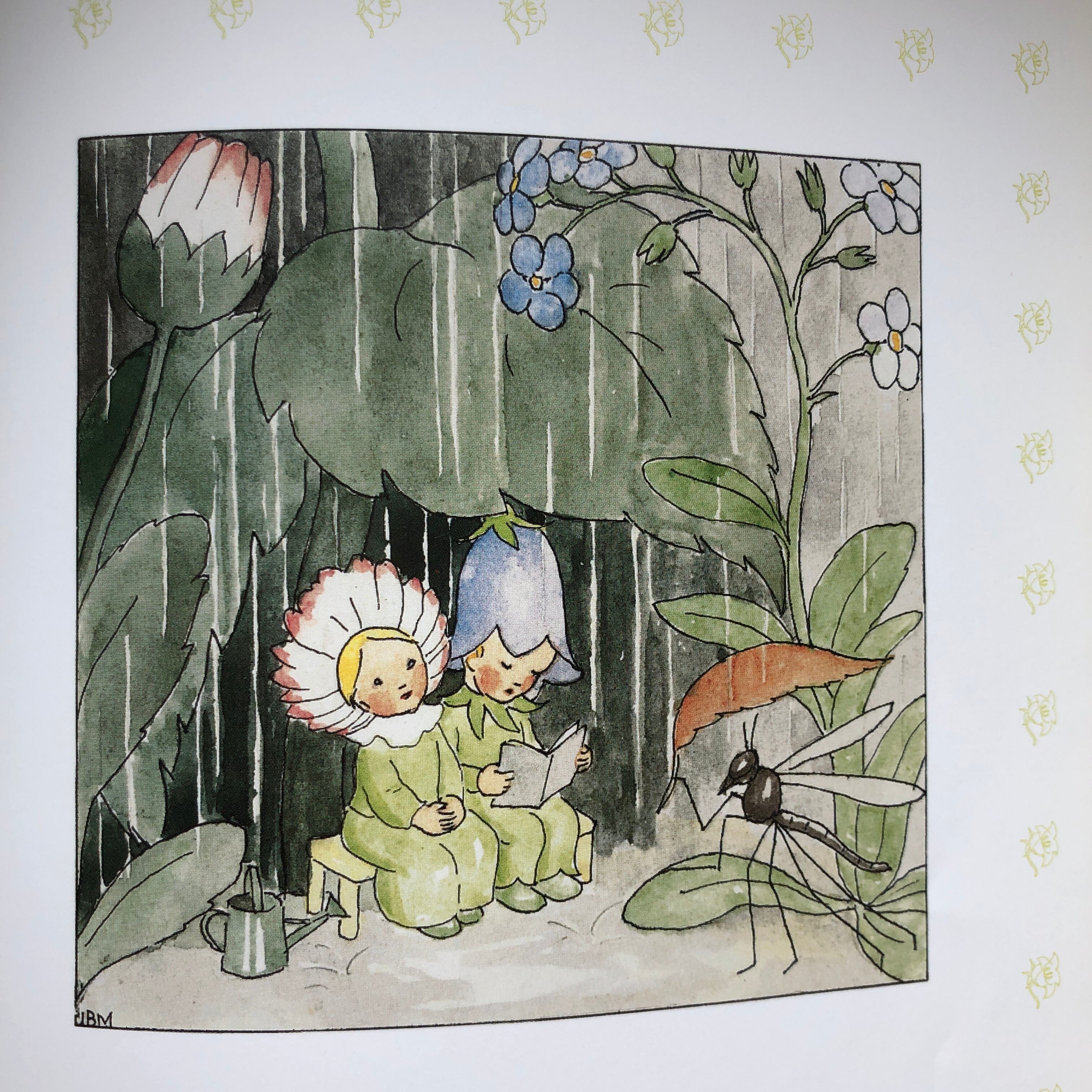 意味は「フリップとフリル」、本編には出てきませんが、花の妖精の子の名前でしょうか。花びらの端が薄いピンクに染まった花は、Gänseblümchenと言って、デイジーのこと。ドイツでは芝生によく生えている雑草扱いされてしまう花ですが、可憐でかわいらしいです。よく子供がこれの花束を作ってくれたり、花冠を作ったりもします。そんなお花が主役の詩が8編あります。「捨てられたお花さん」というタイトルの詩では、「雨のお風呂に入ったり、太陽で日向ぼっこをしたり、お花でいるのは素敵なことだから泣くことなんてない。」とお花の気持ちが綴られています。