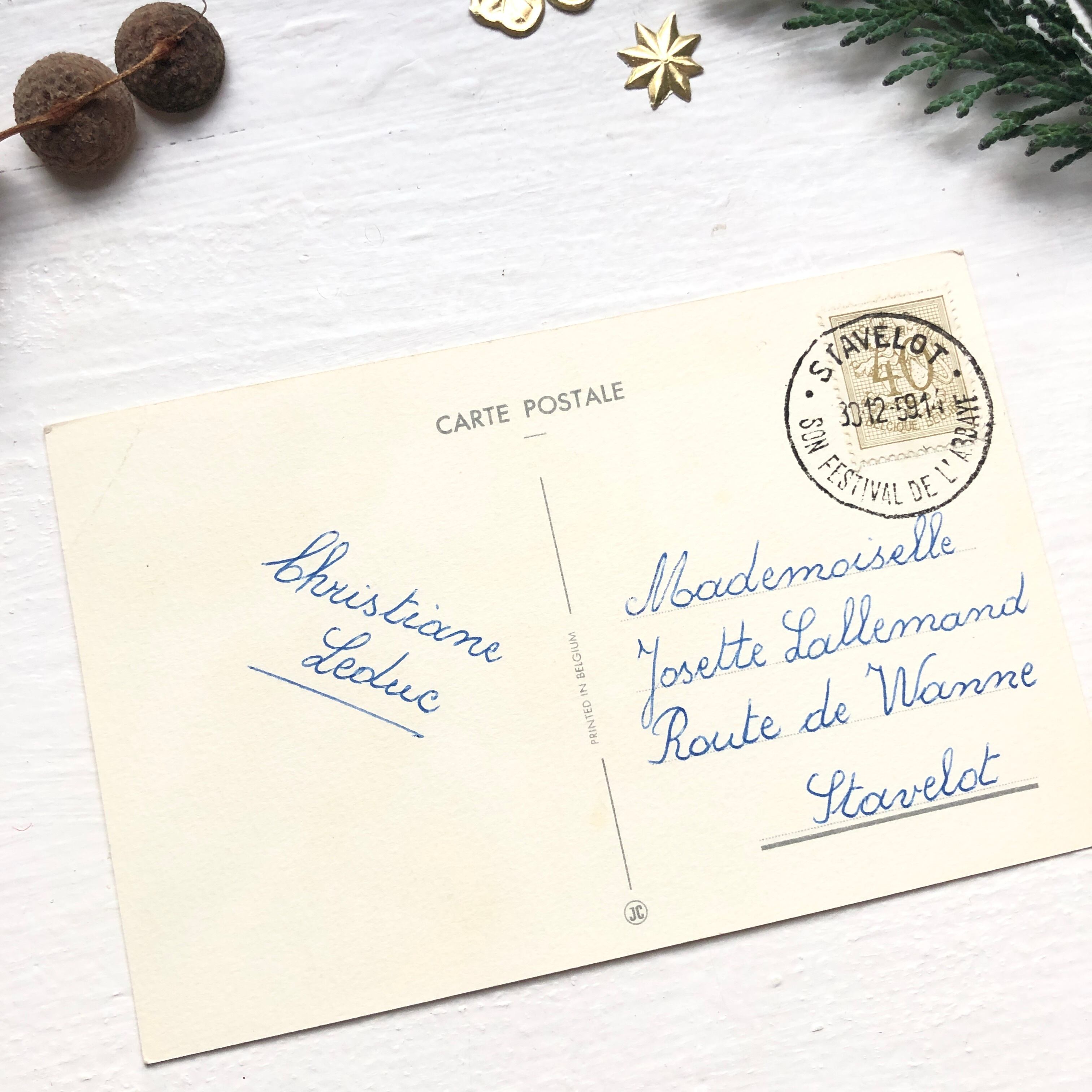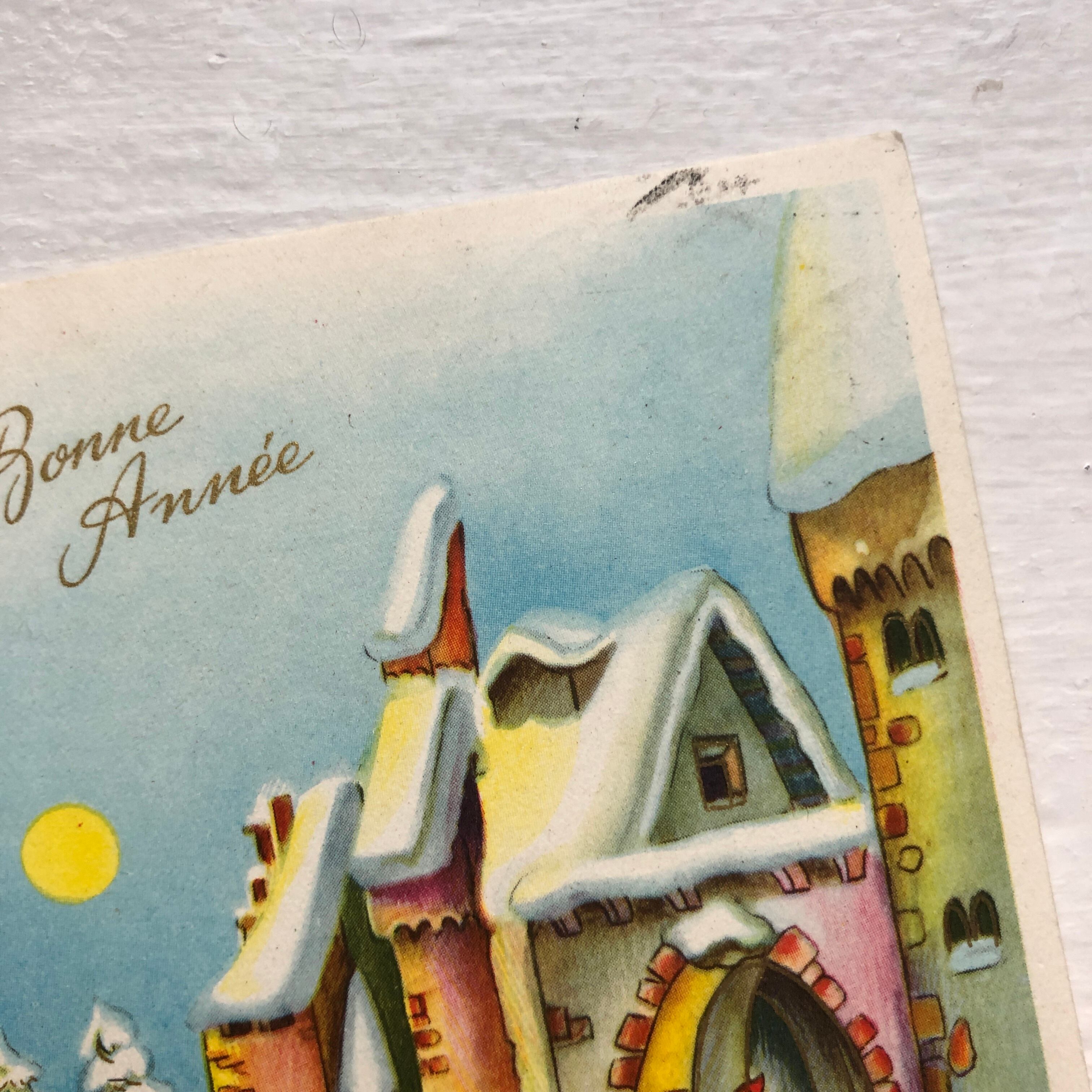 ベルギー国内で送られていた新年の挨拶のポストカードで、Bonne Annee(よいお年を)とフランス語でゴールドで印刷されています。