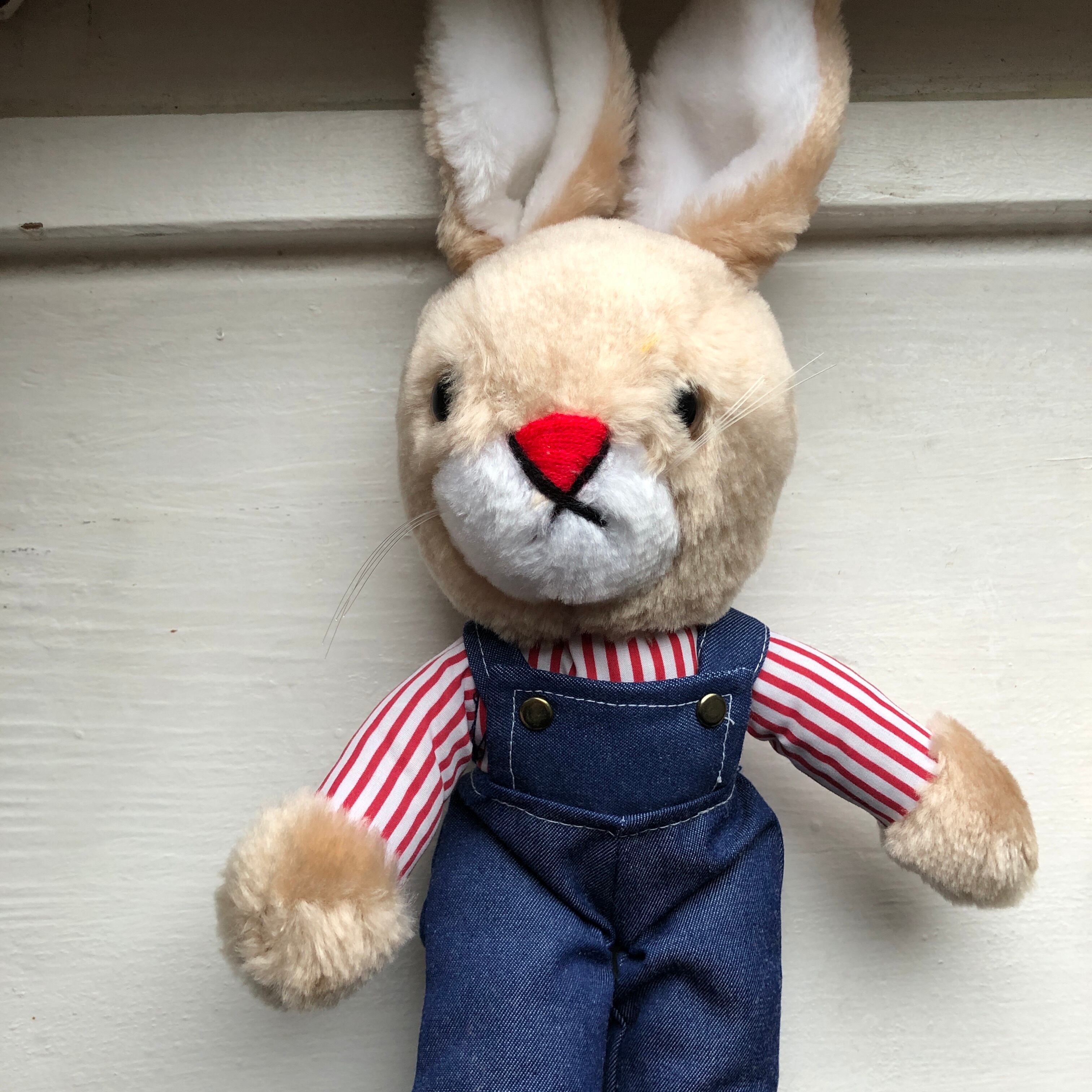 オーバーオールを着たうさぎのぬいぐるみ