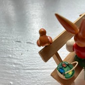 ダメージはありますが、昔のものならではの素朴な色合いで、かわいらしいうさぎの置き物です。