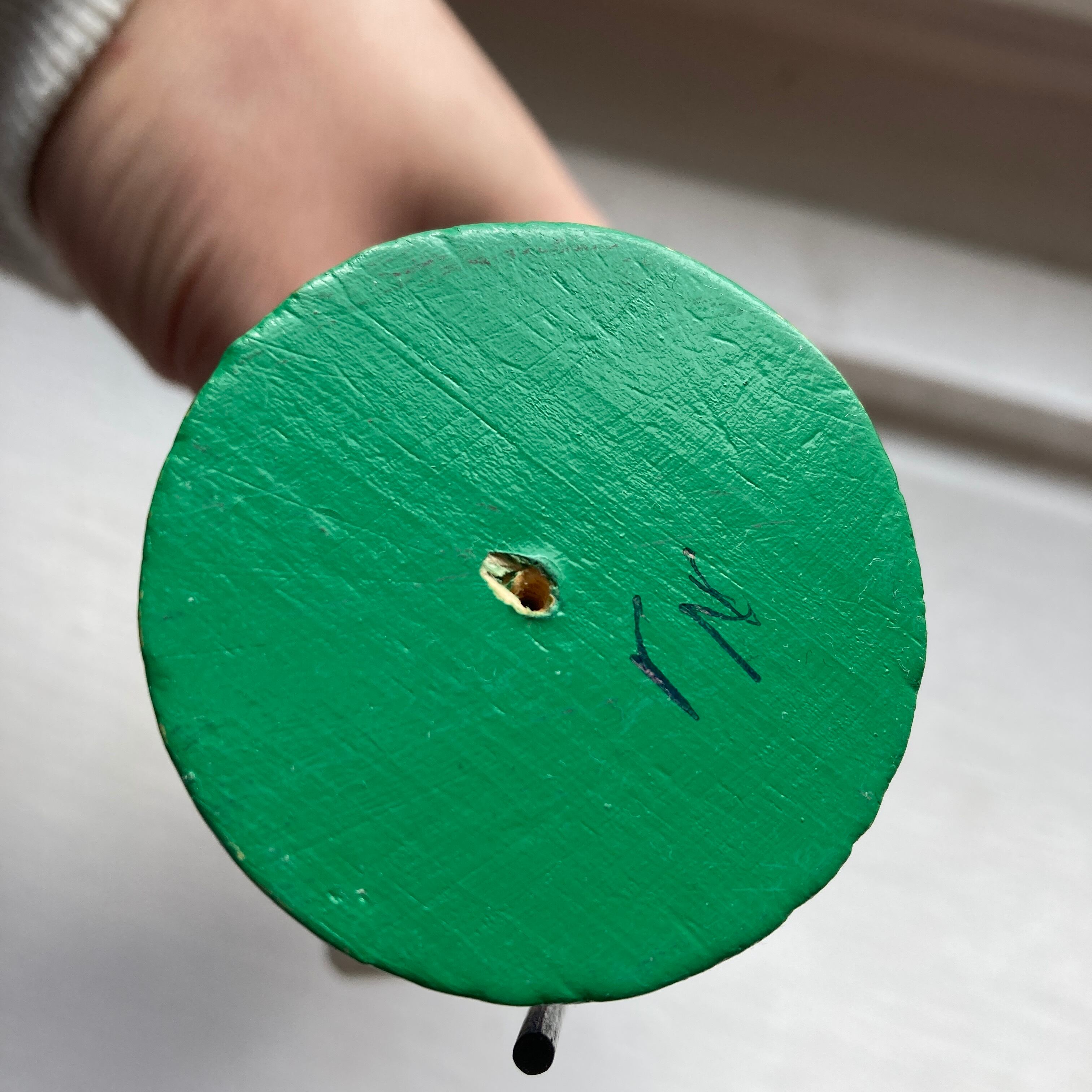 状態など:台座にかすかにペイントが削れたところがありますが、お顔も服もきれいな状態で残っています。台座の裏にイニシャルかと思われるボールペンによる書き込みがあります。