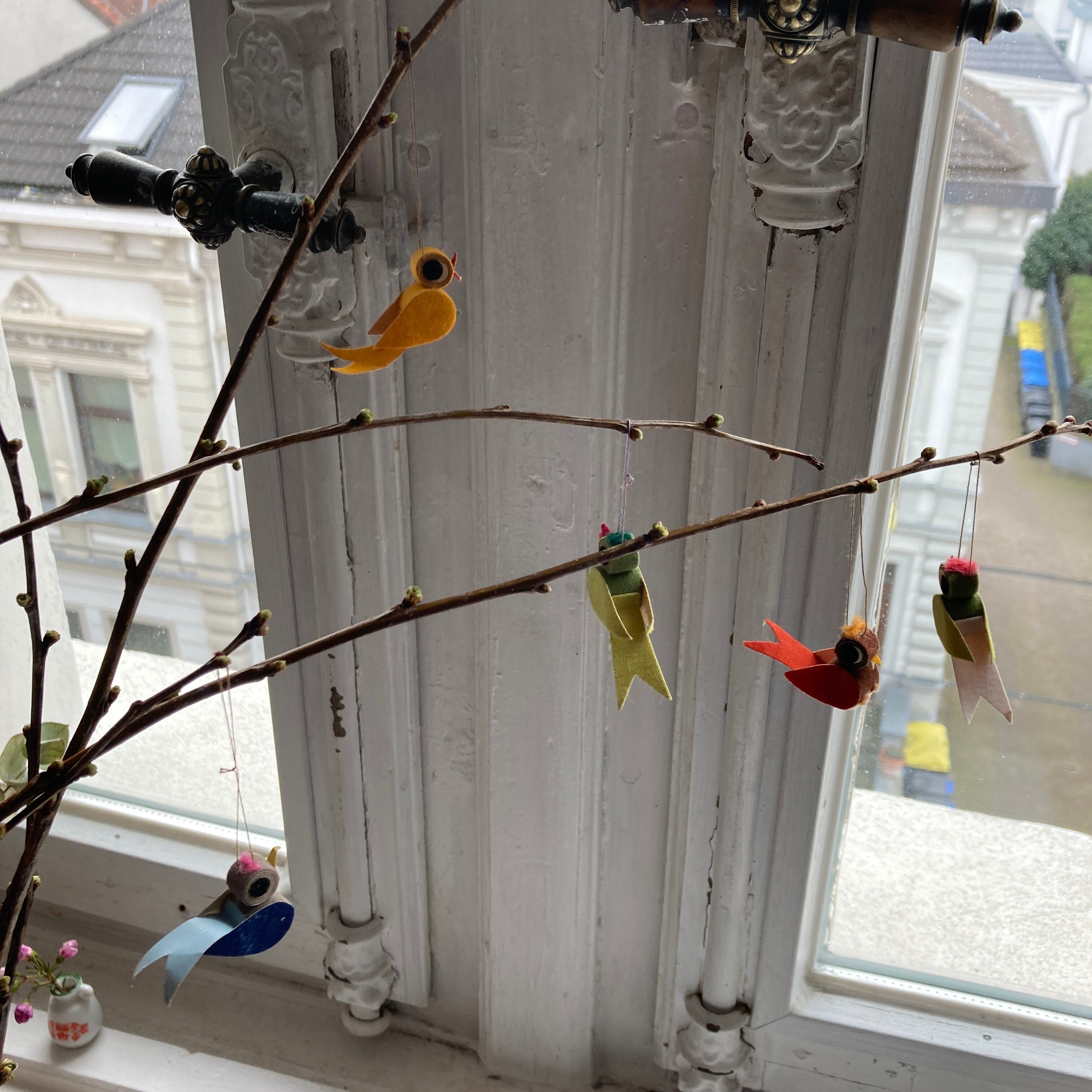紙で作られた小さな鳥たちはDDR(旧東ドイツ)時代のもの。