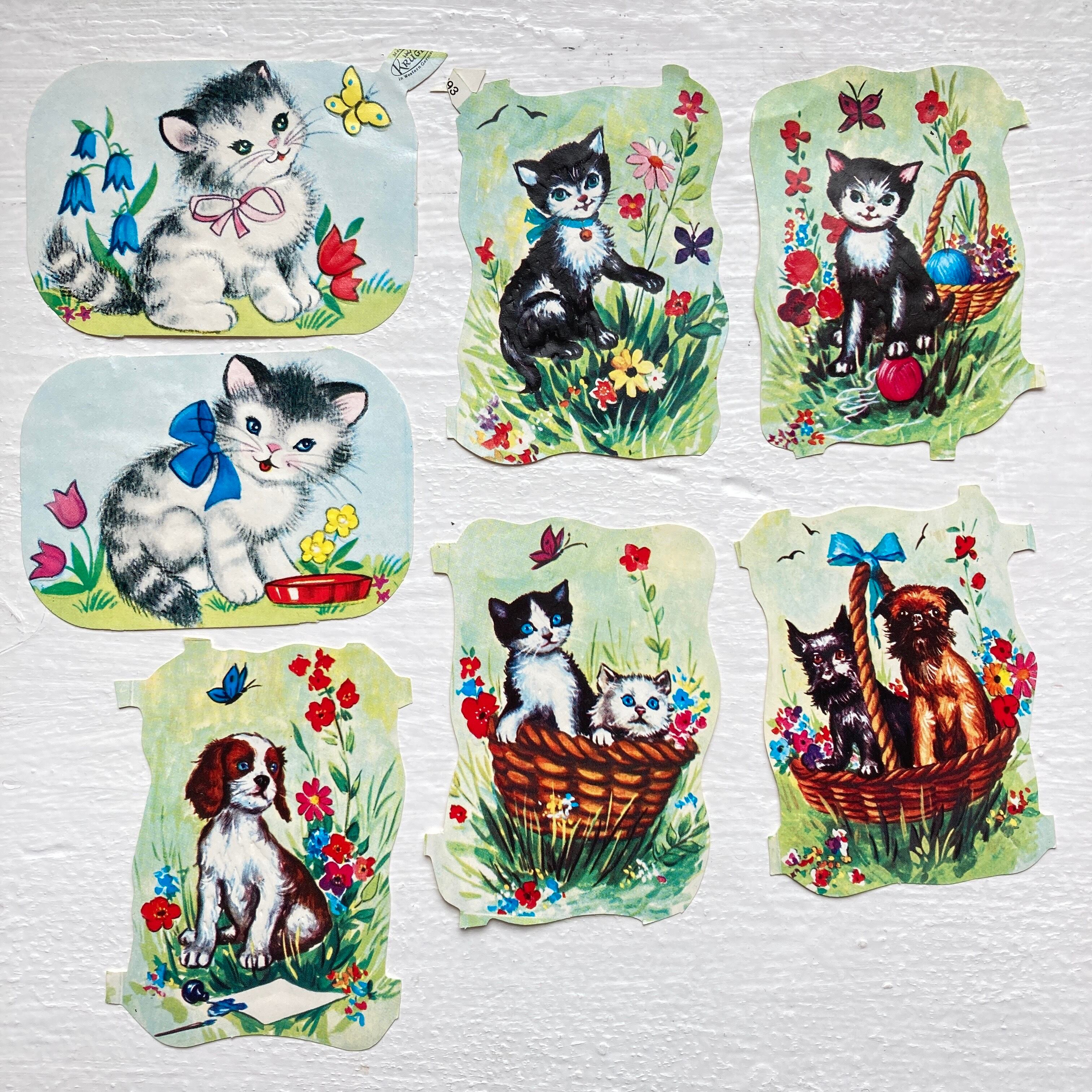 *カットされた状態で、蚤の市で購入しました。同じシートと思われるものをセットにしていますが、枚数を合わせるために別の絵柄が入ることもあります。種類をお選びください。