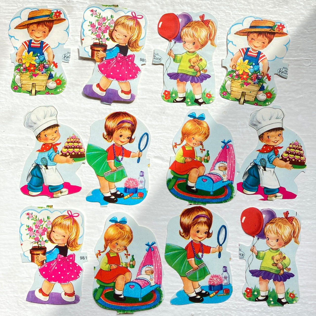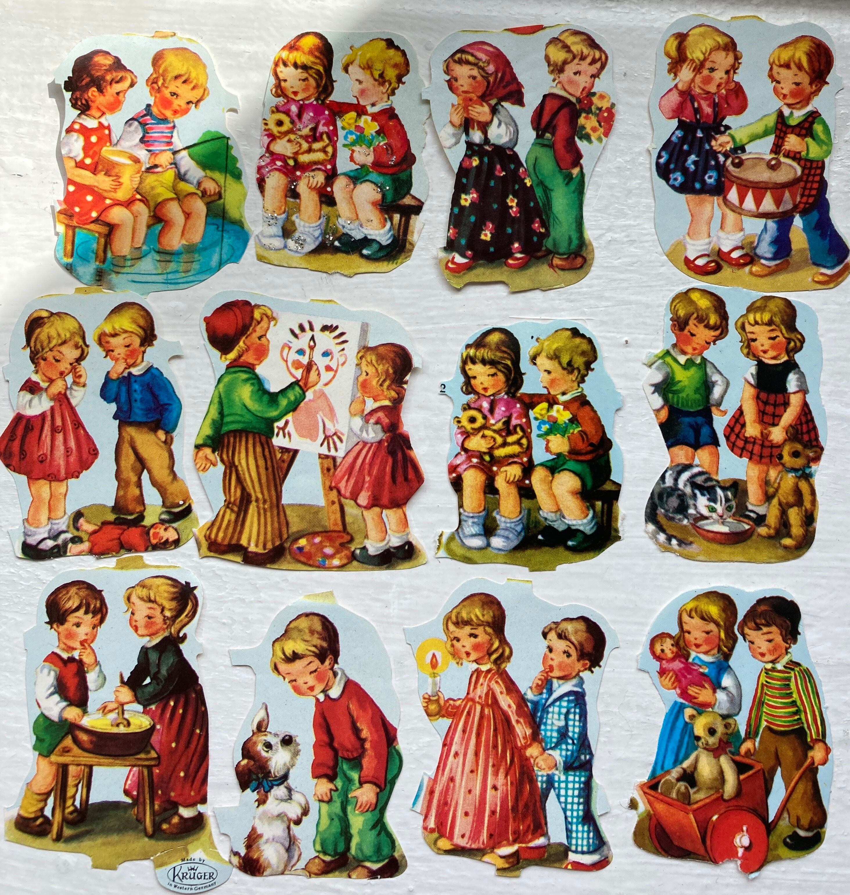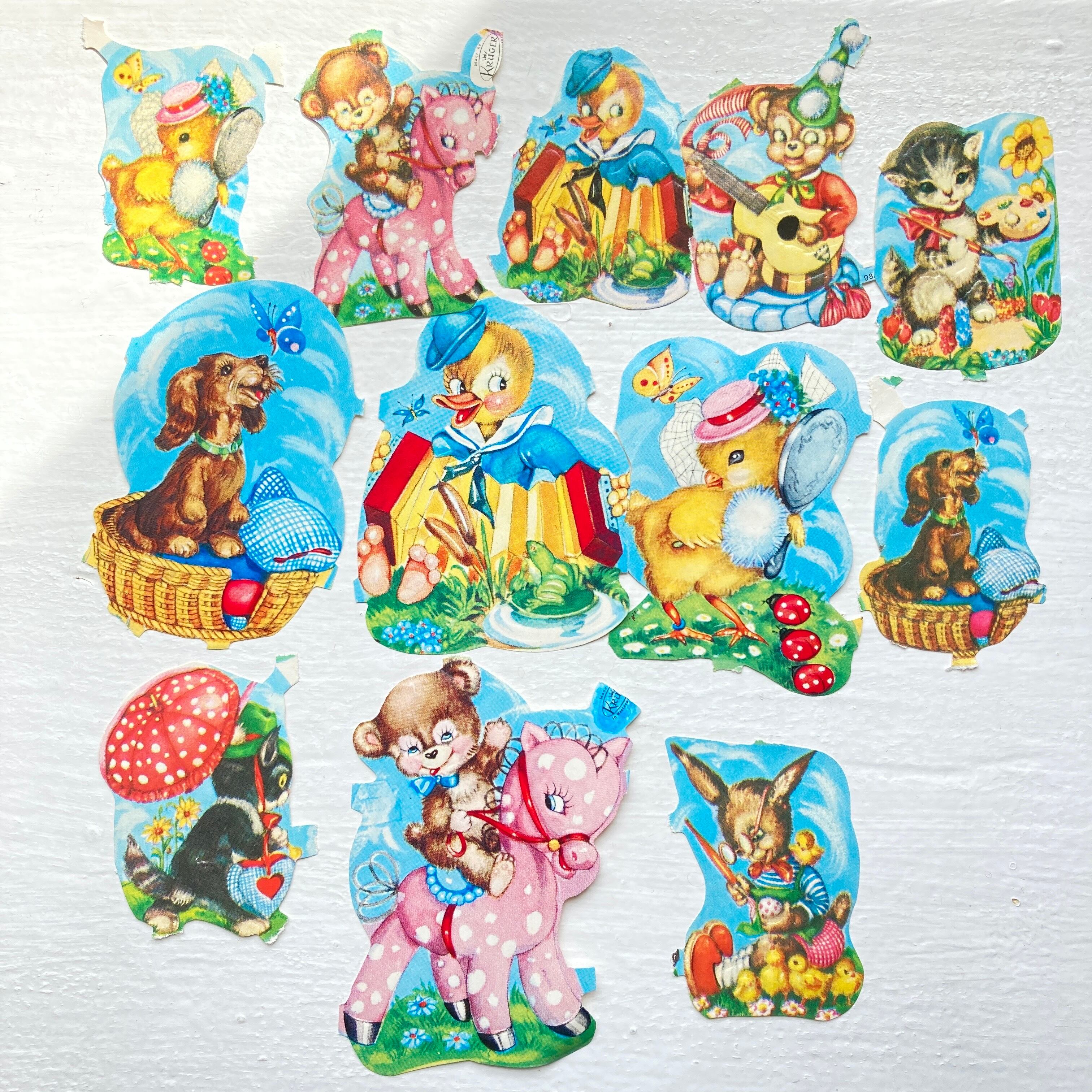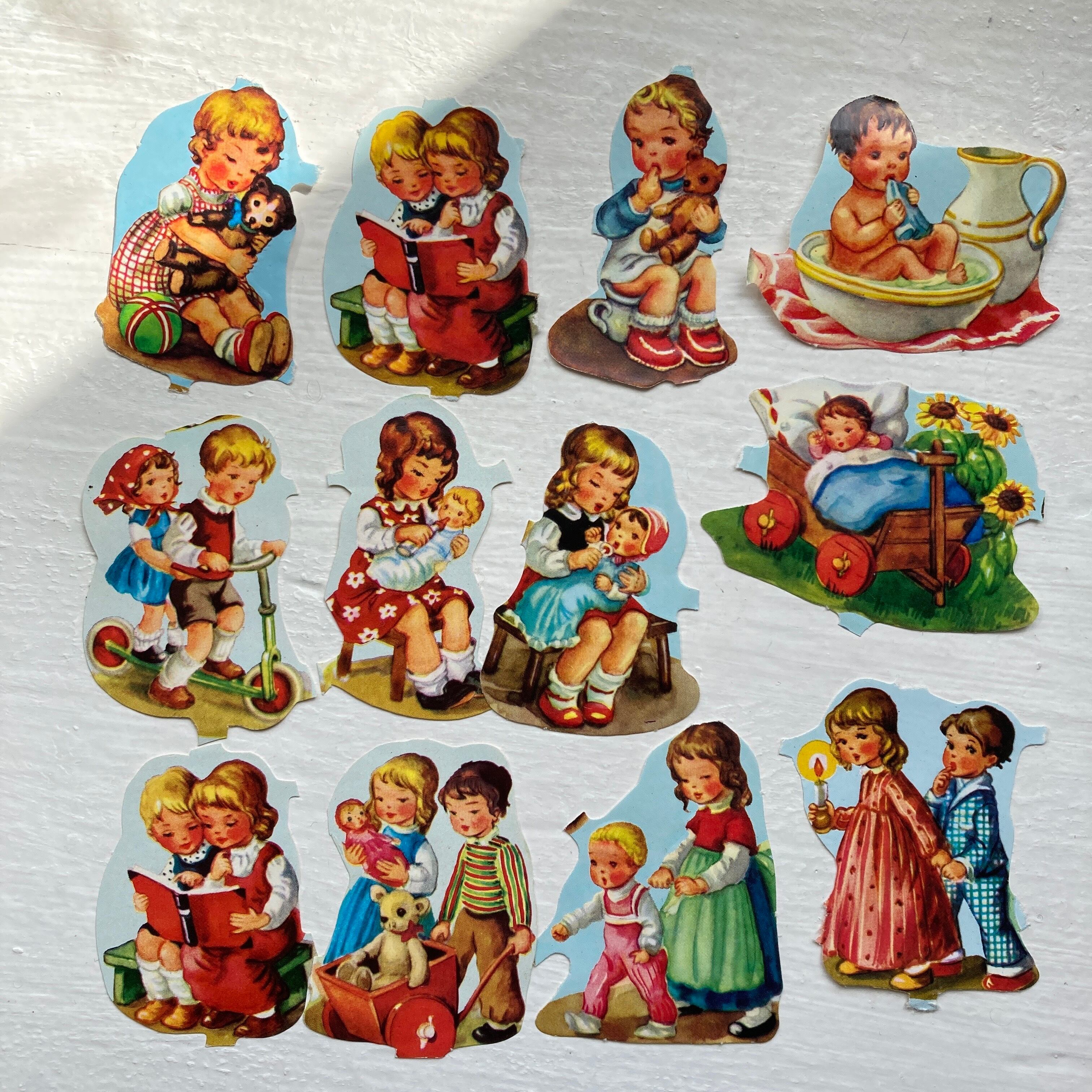 *カットされた状態で、蚤の市で購入しました。同じシートと思われるものをセットにしていますが、枚数を合わせるために別の絵柄が入ることもあります。種類をお選びください。
