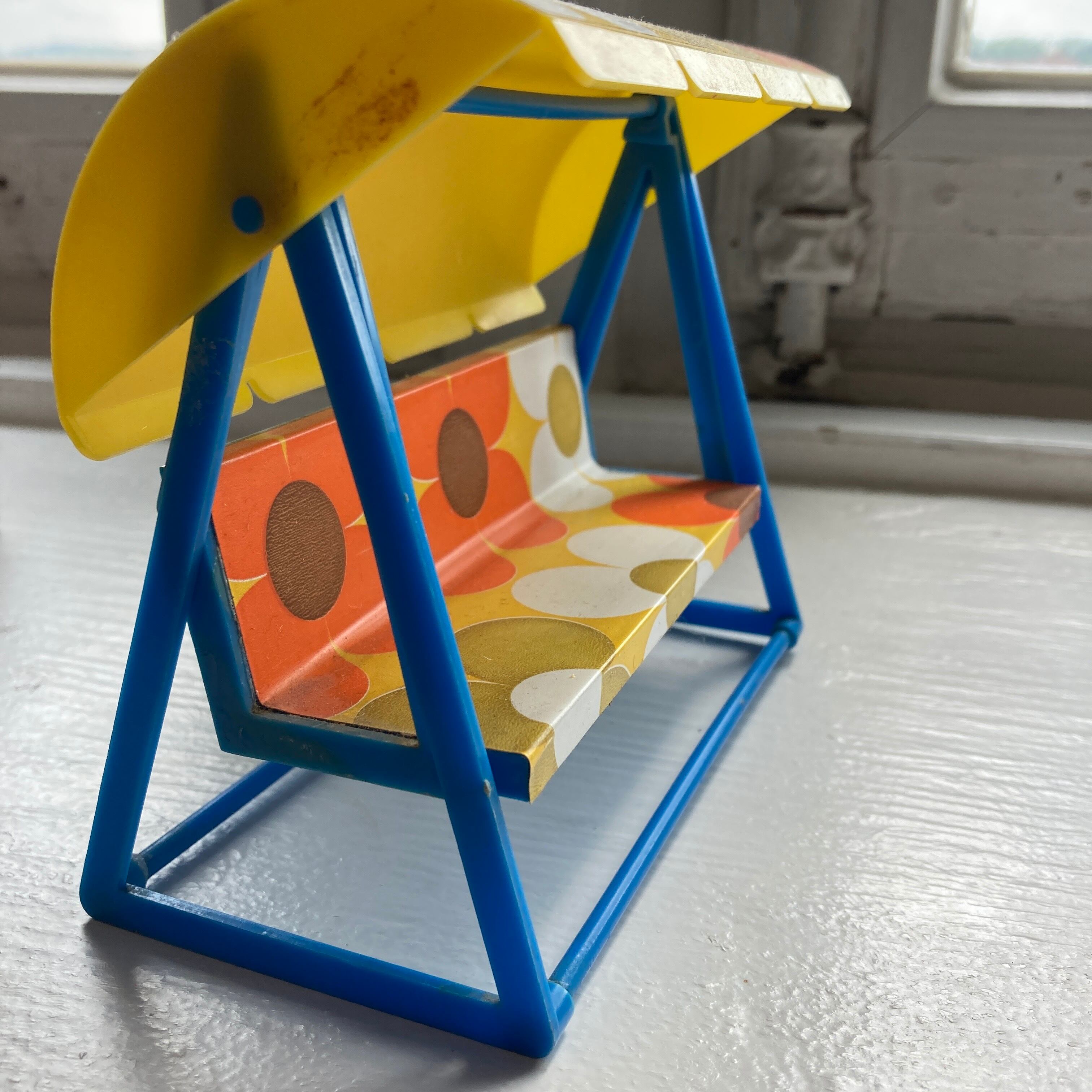 大きなブランコチェアは実際にもガーデンでよく使われているアイテムです。薄いプラスチックのつくりですが、ドールを座らせて、ゆらゆらと揺らすことができます。日よけは角度を変えることが出来ます。