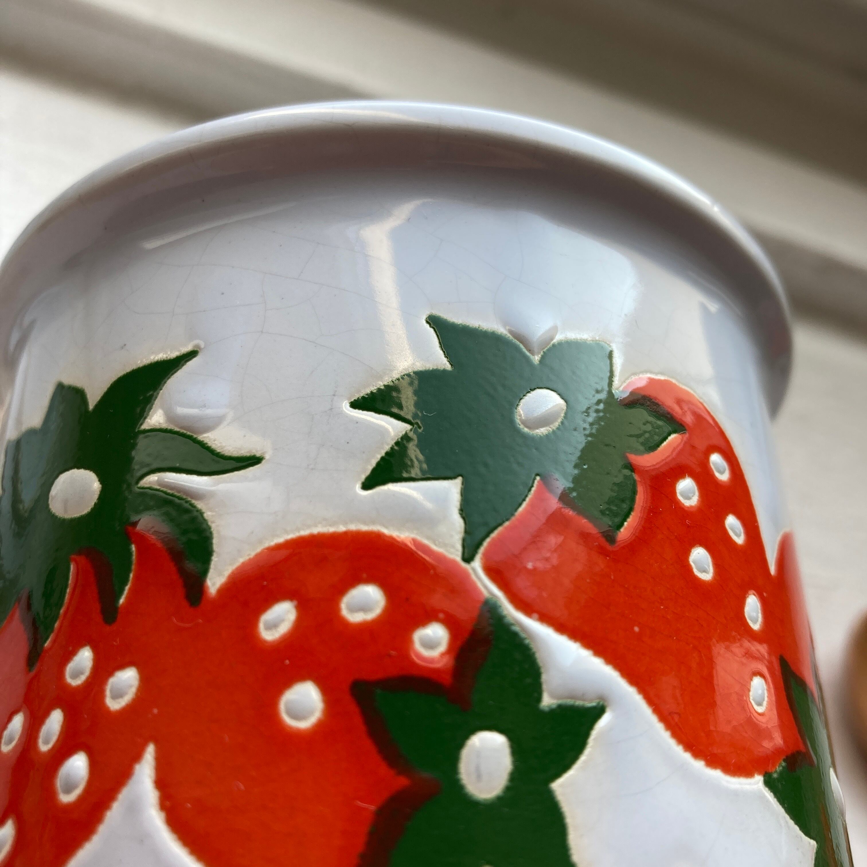 ドイツで1832年に創業された古い歴史を持つWaechtersbach社のいちご柄のシュガーポットです。
