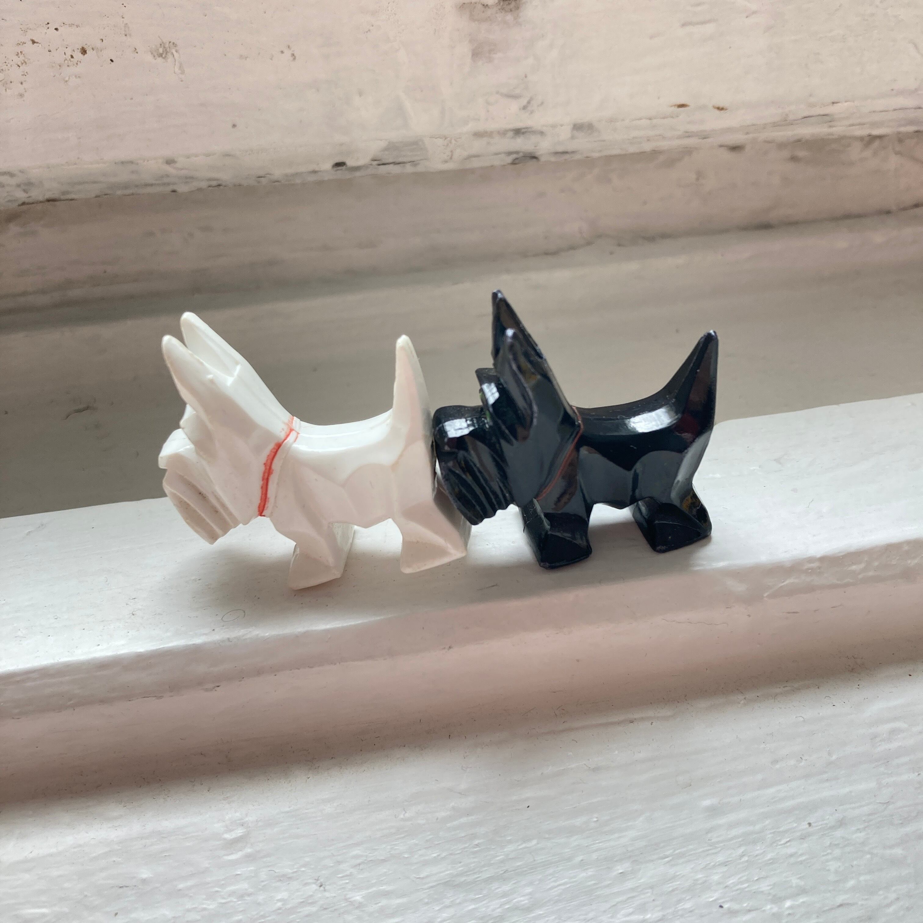 黒と白のスコティッシュテリアのペアは、70年代にスコッチウイスキーの販促のために作られたといいます。