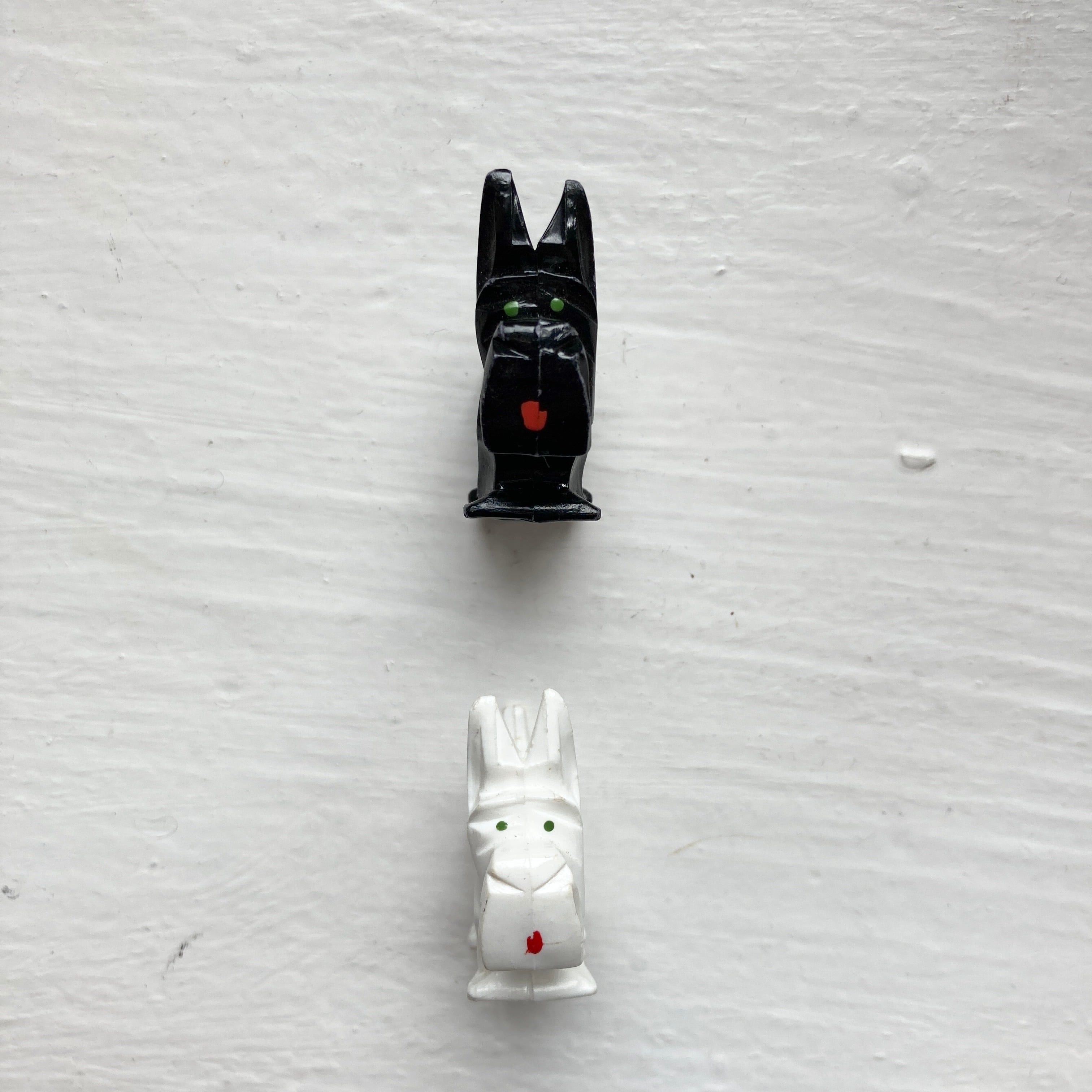 Buchanan'sのウィスキーブランドBlack&Whiteのマスコットである白と黒のテリアは、当時のウィスキーの限定ボトルのおまけとして配られたそうです。今では、レアもののコレクターアイテムとなり、ヨーロッパでも高値で取引されています。