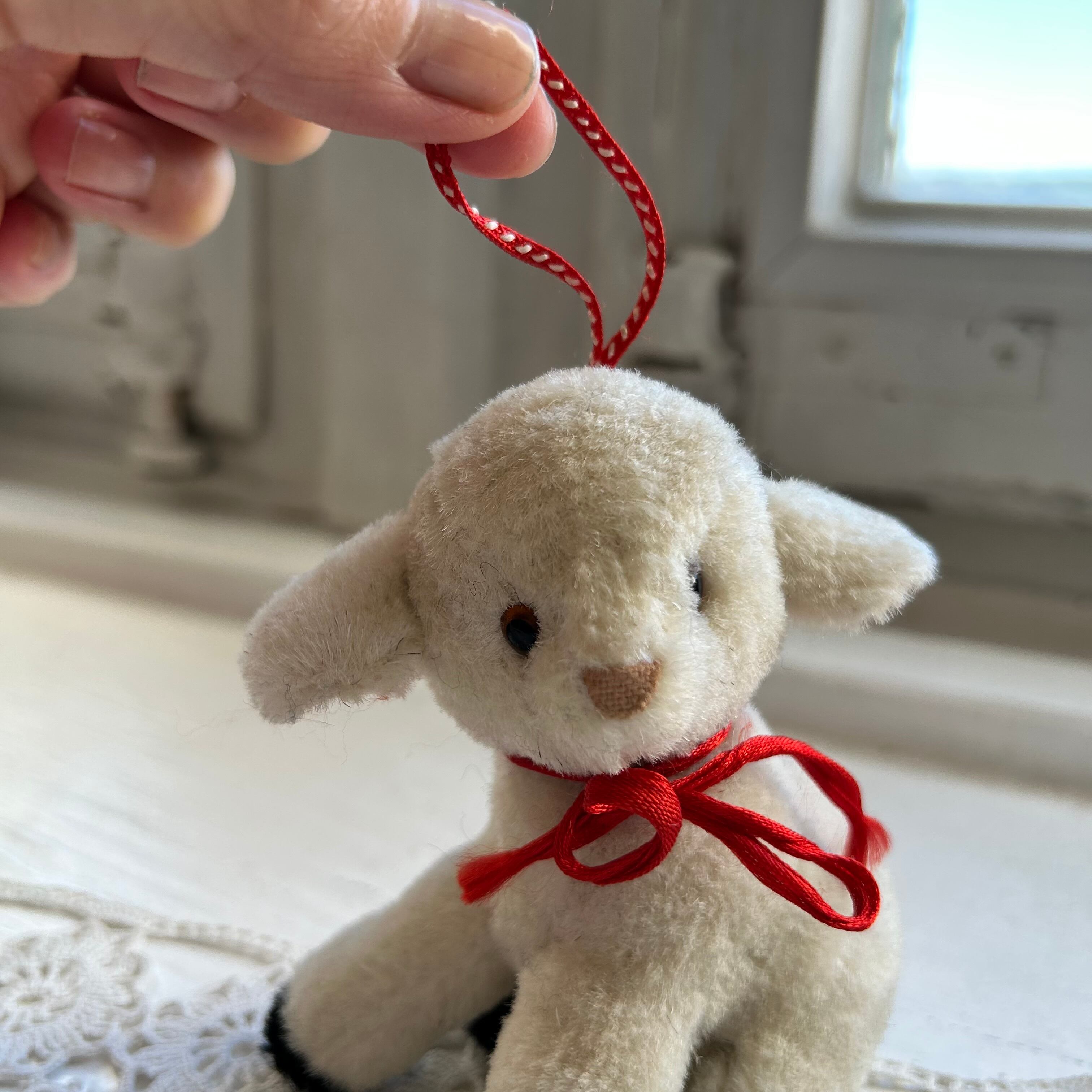 赤いリボンが頭についてぶら下げられるようになっています。