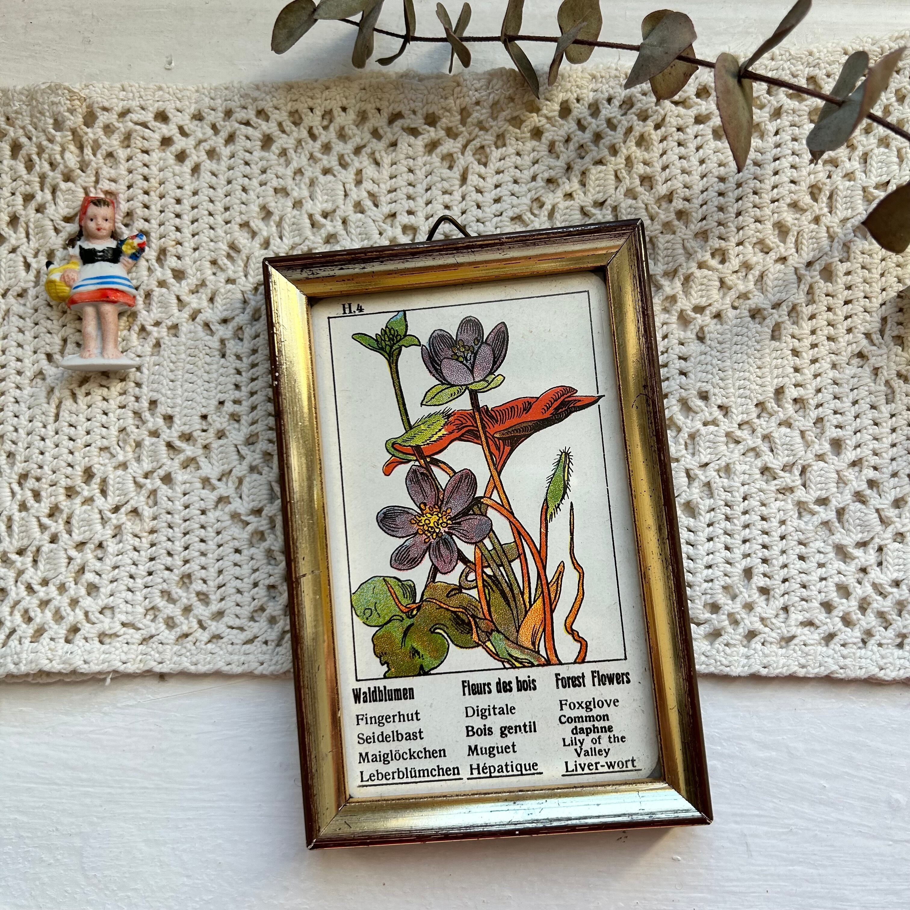 古いフォトフレームに植物画のカードを装丁しました。トランプのような大きさのカードが入る小さなフォトフレームです。