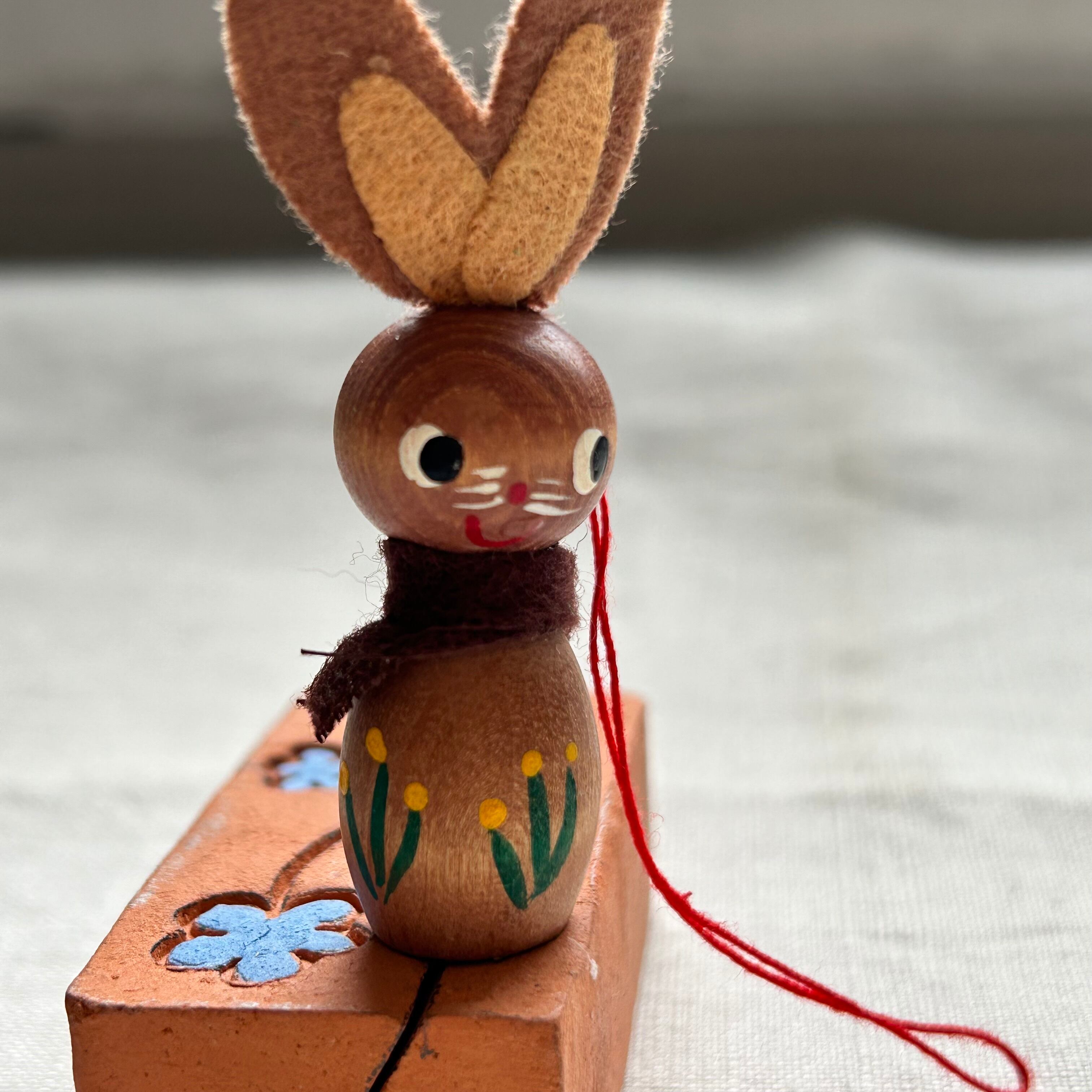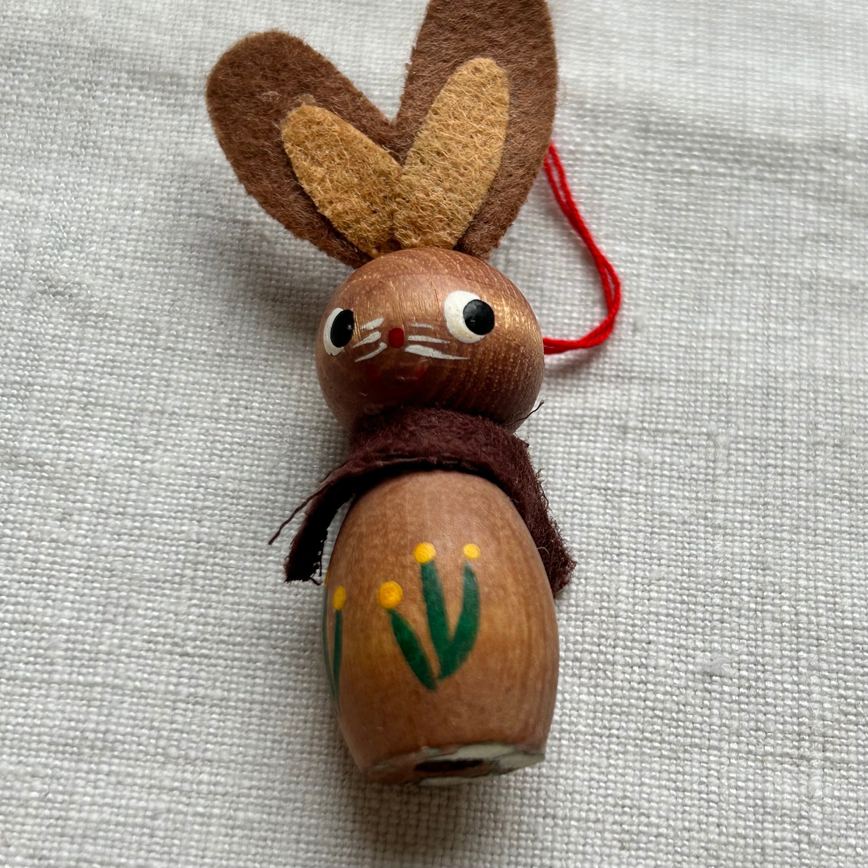 手作りとプロの絵付けの両方が合わさったような、うさぎのオーナメントです。イースターの飾りとして。また、それ以外の季節でも小さくてかわいいデコレーションとなりそうです。