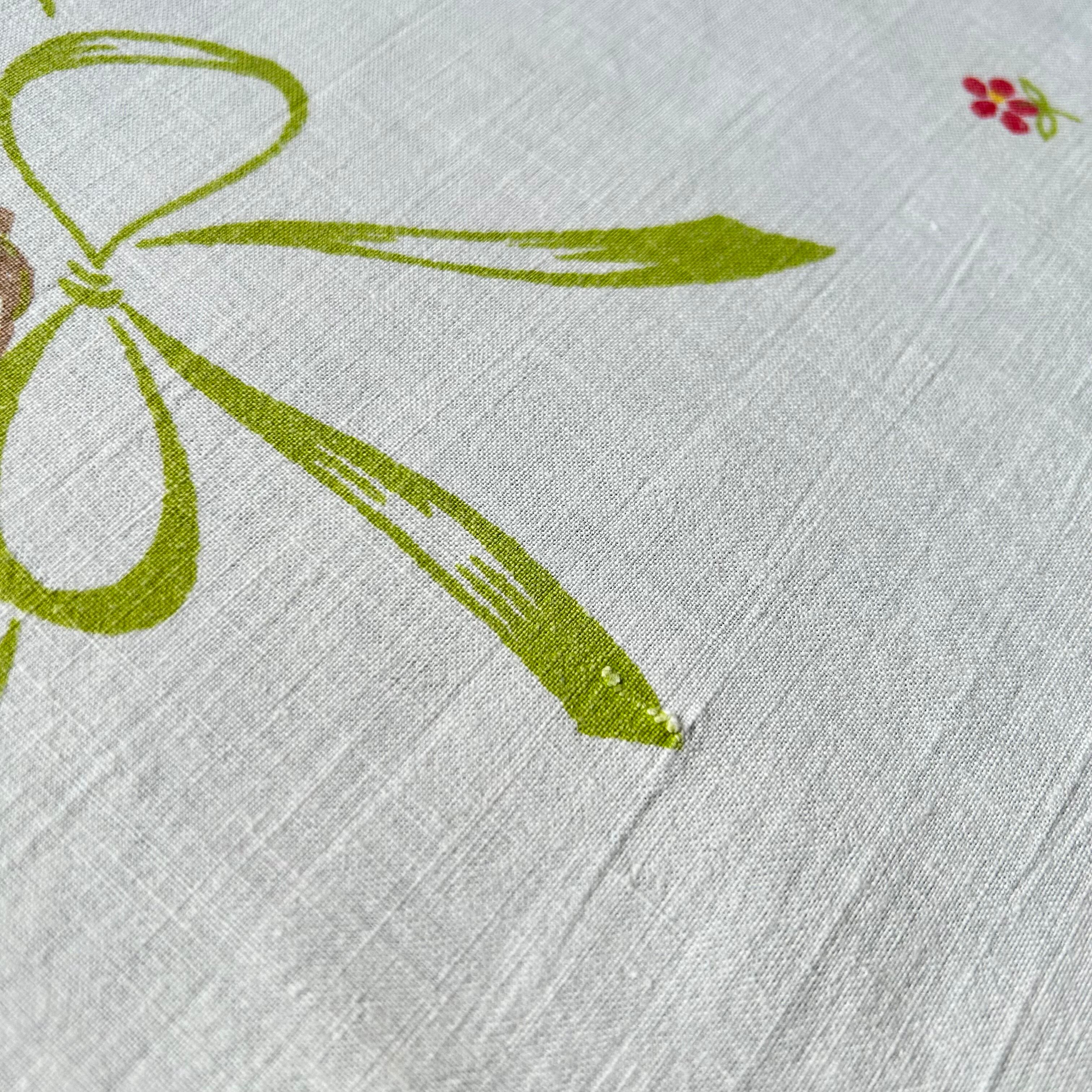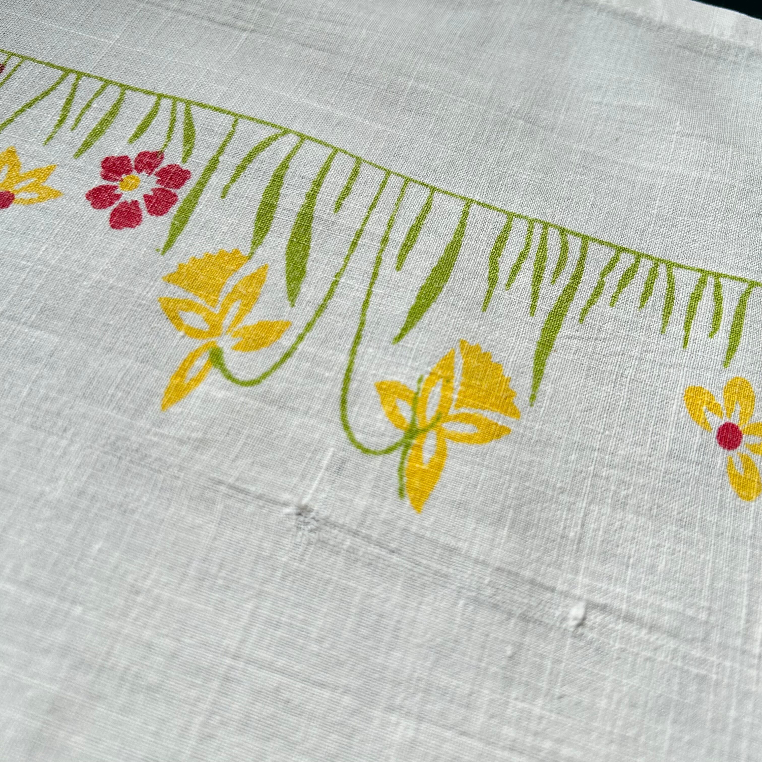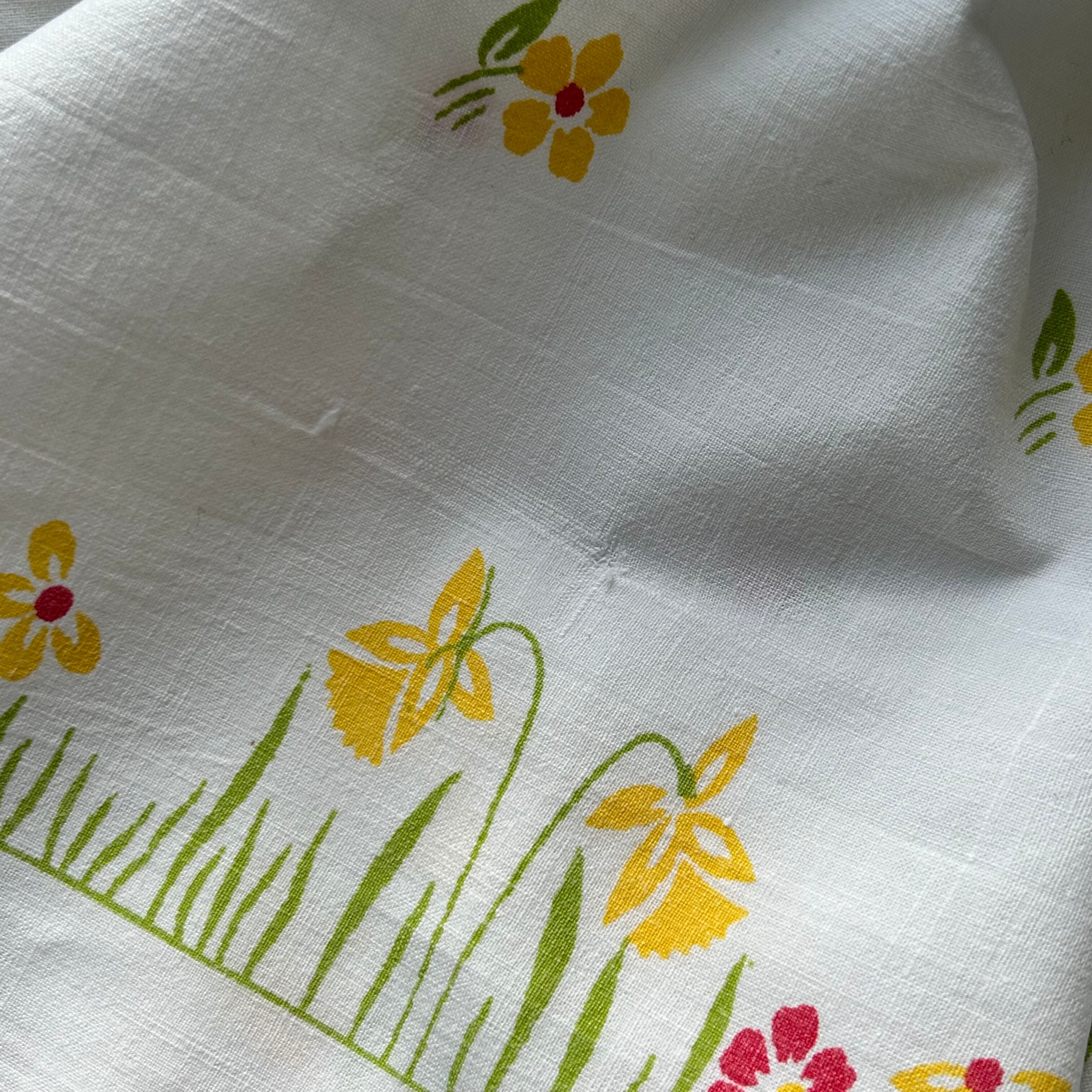 周りを一周囲む水仙などのお花のプリントも春らしい一枚です。